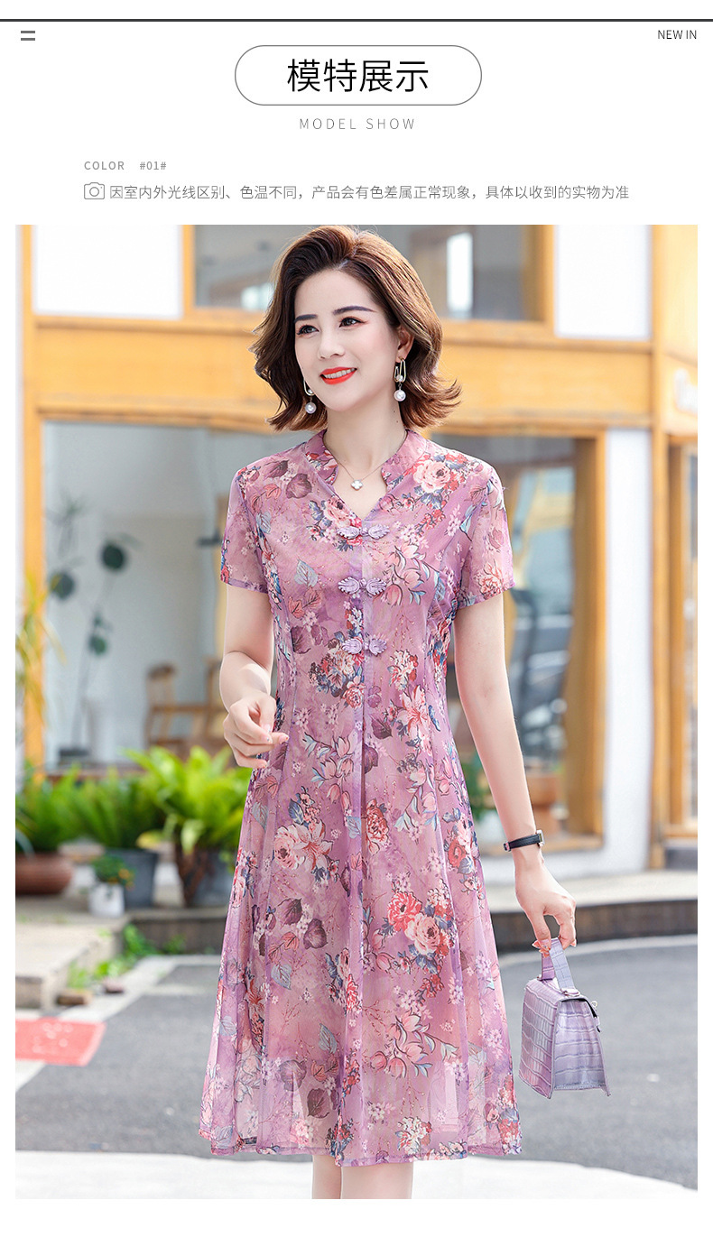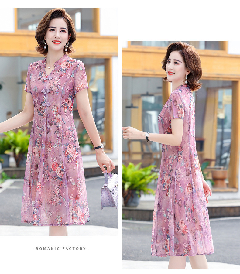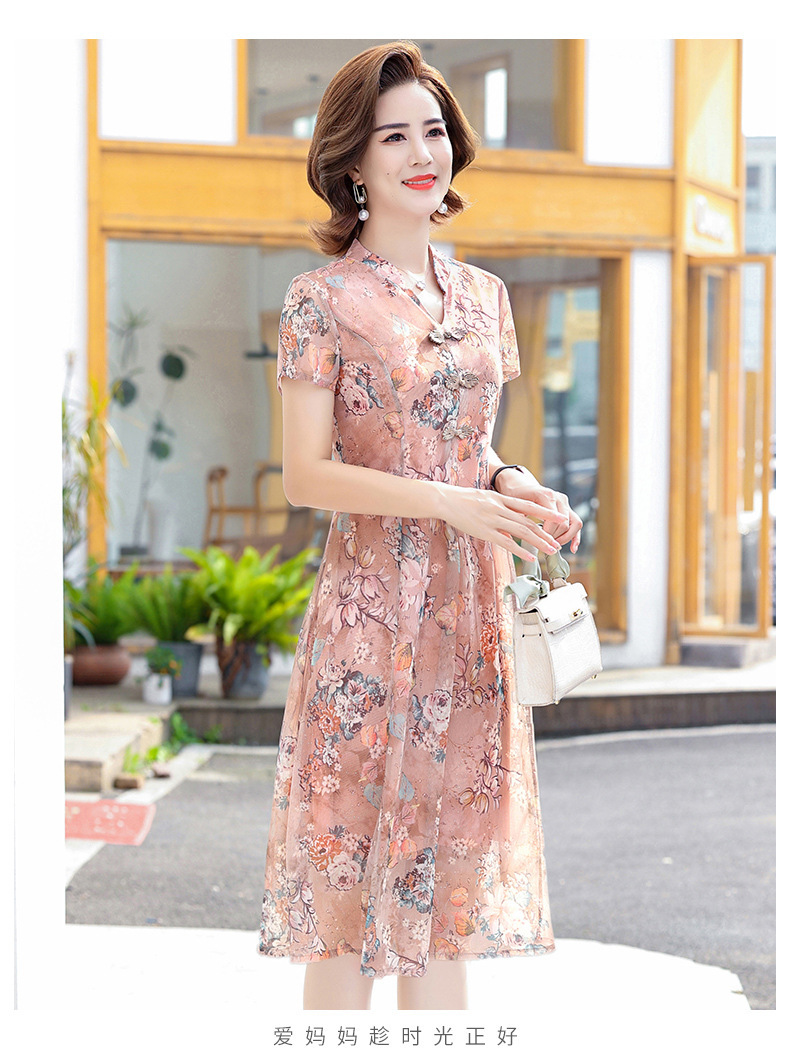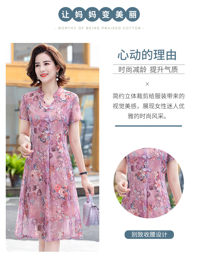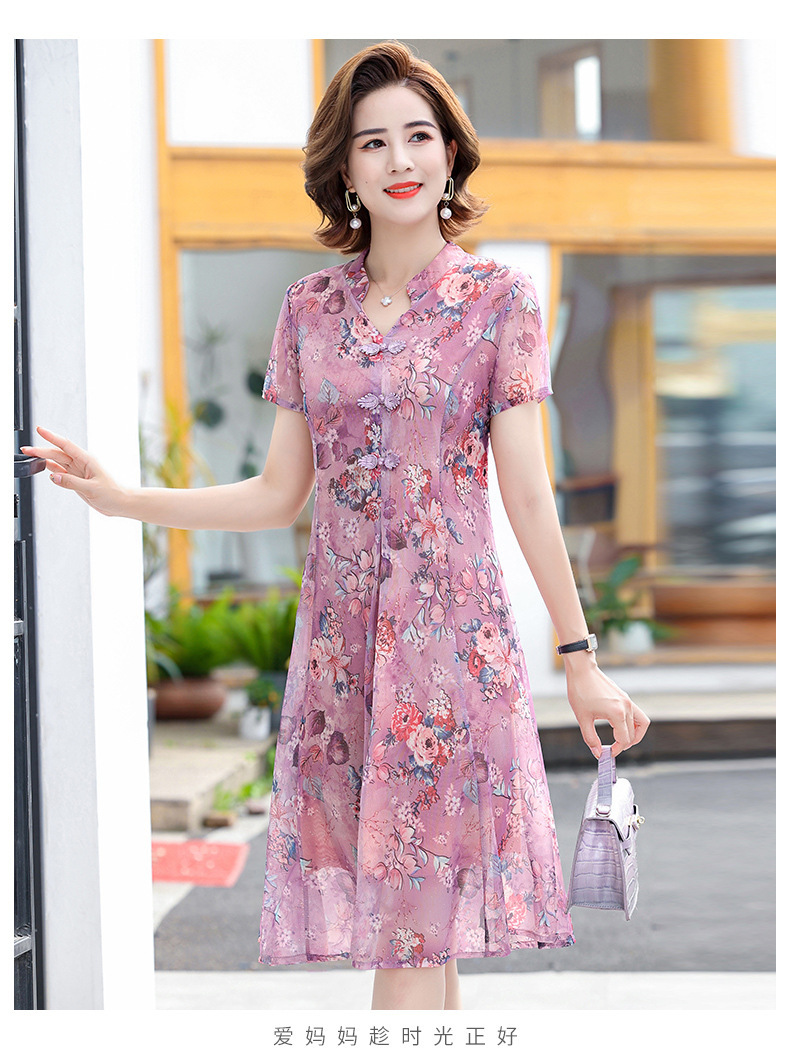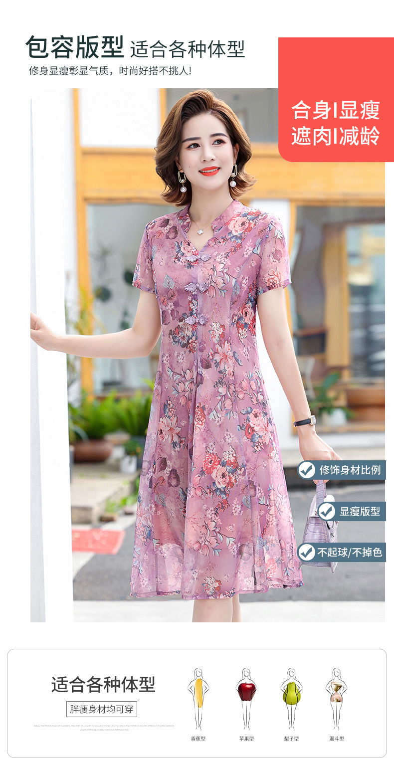连衣裙妈妈夏装洋气雪纺中年女装夏季短袖中老年气质旗袍碎花裙子