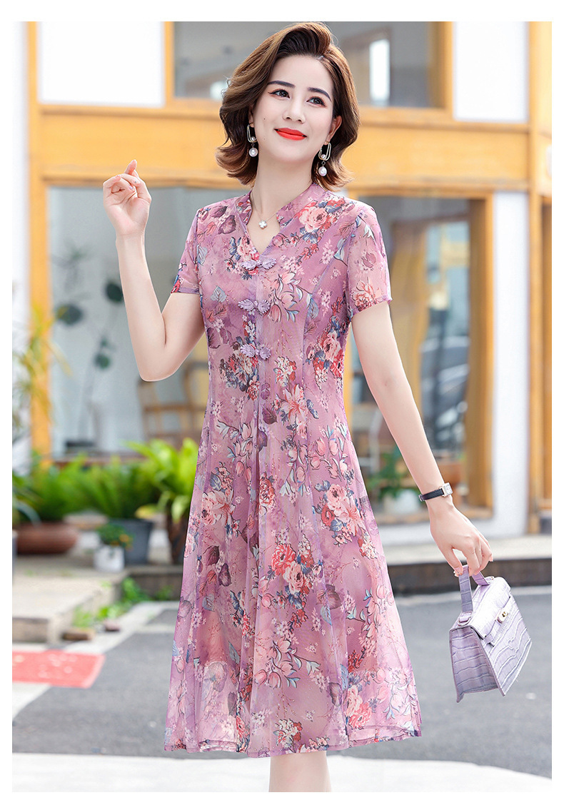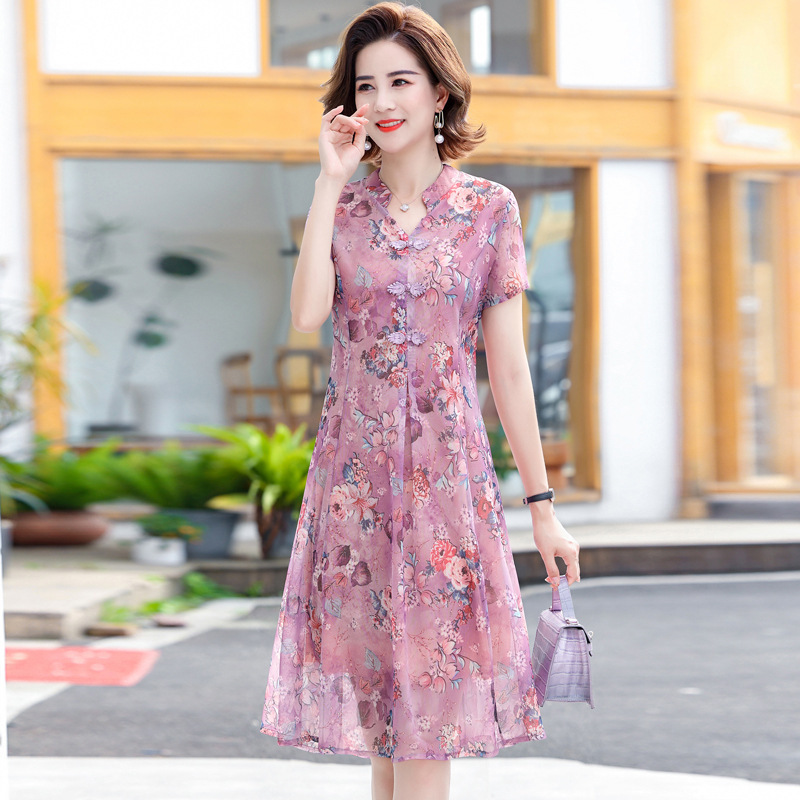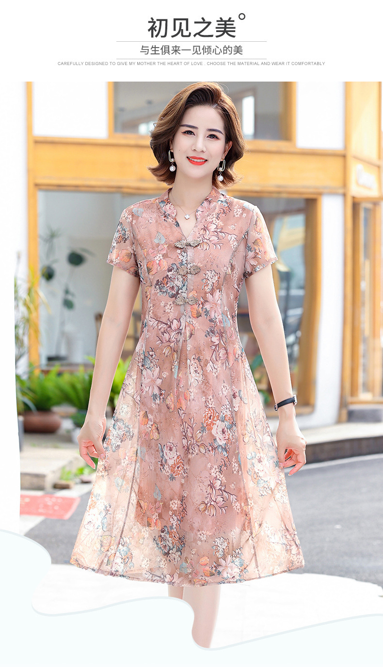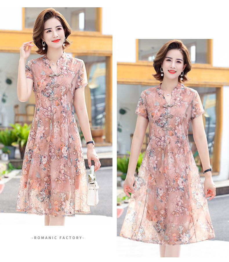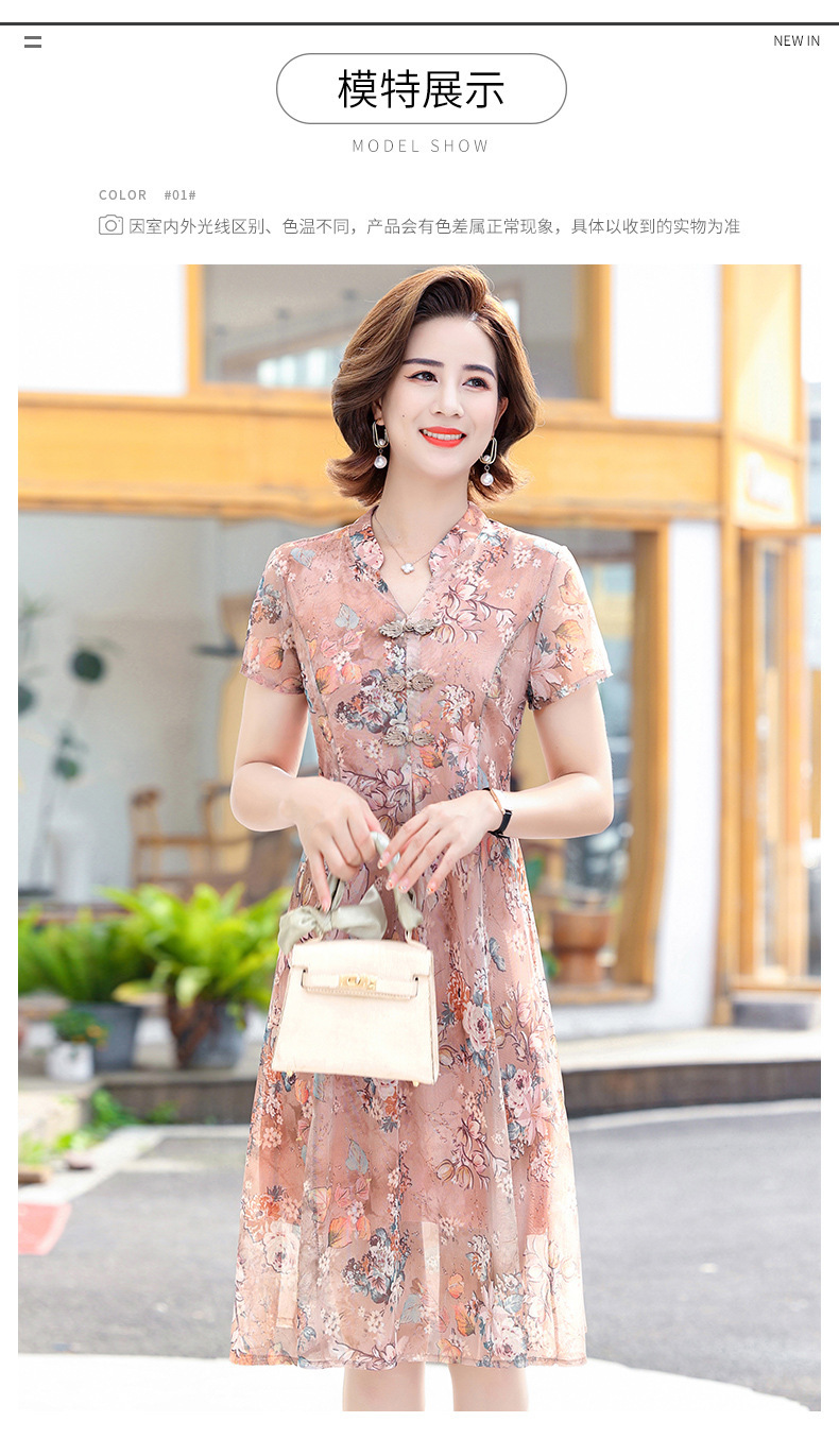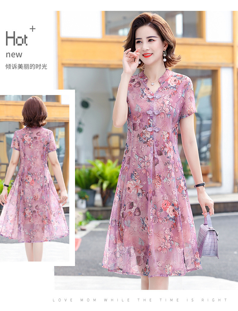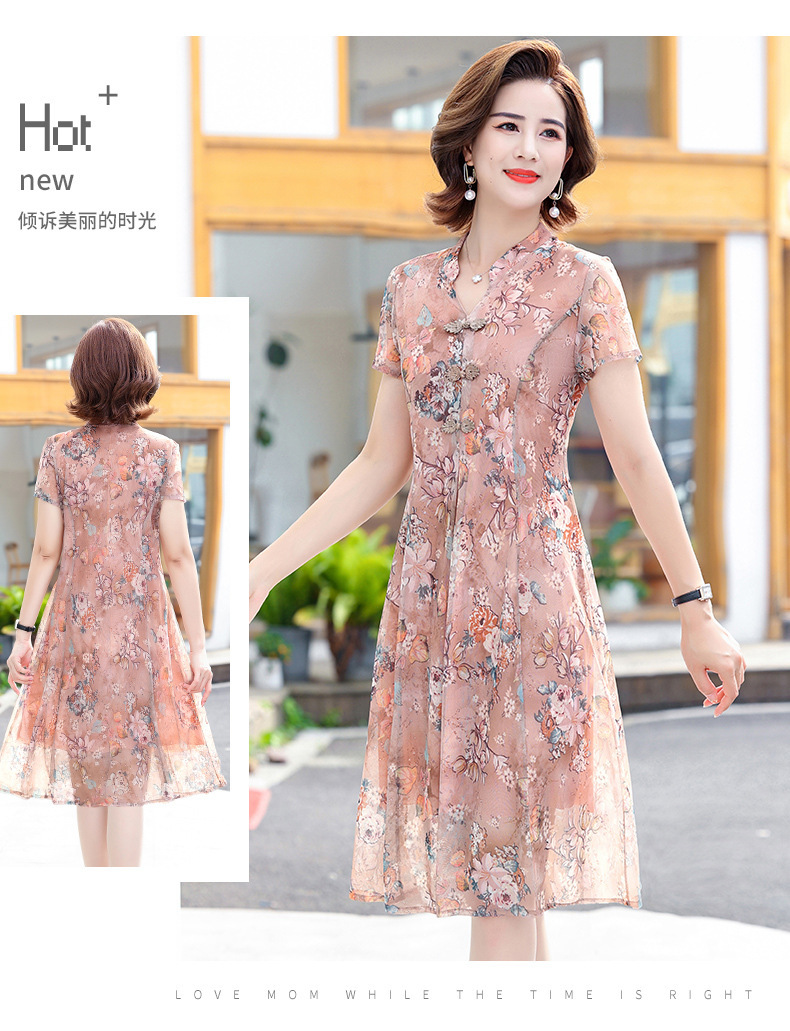 连衣裙妈妈夏装洋气雪纺中年女装夏季短袖中老年气质旗袍碎花裙子