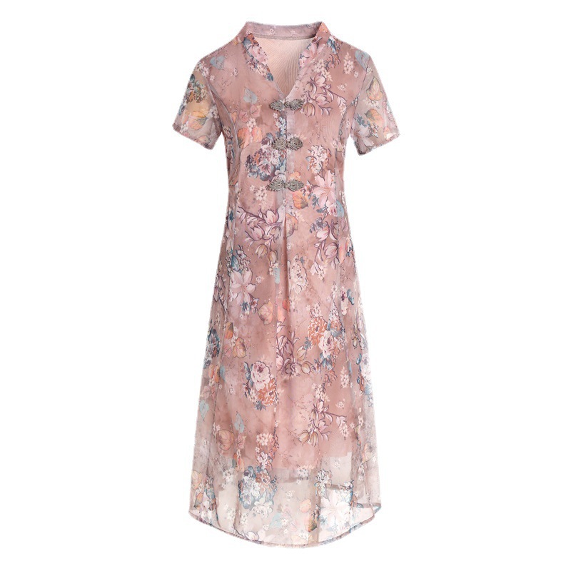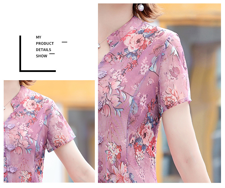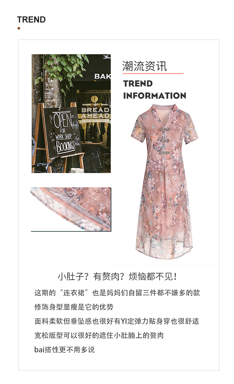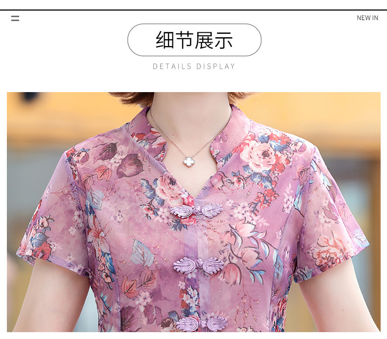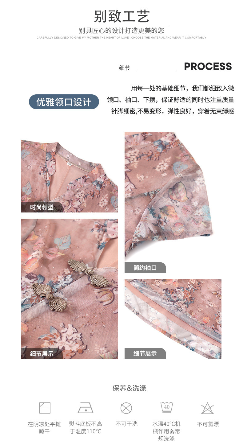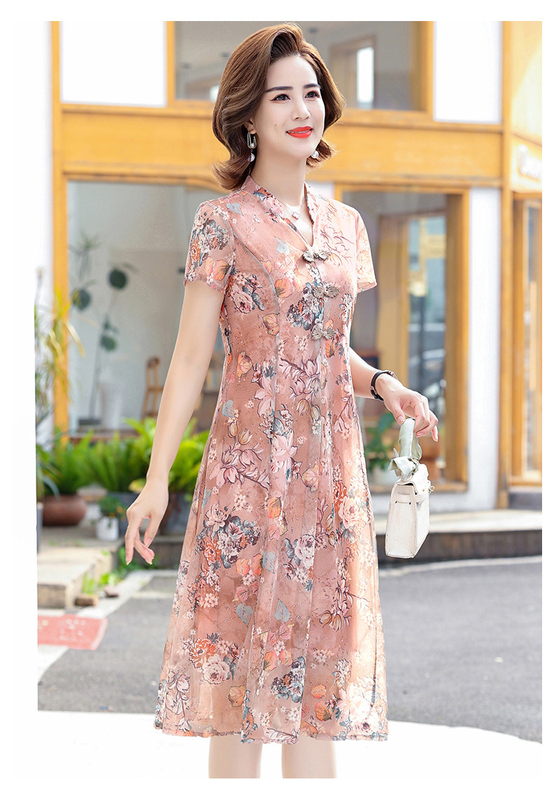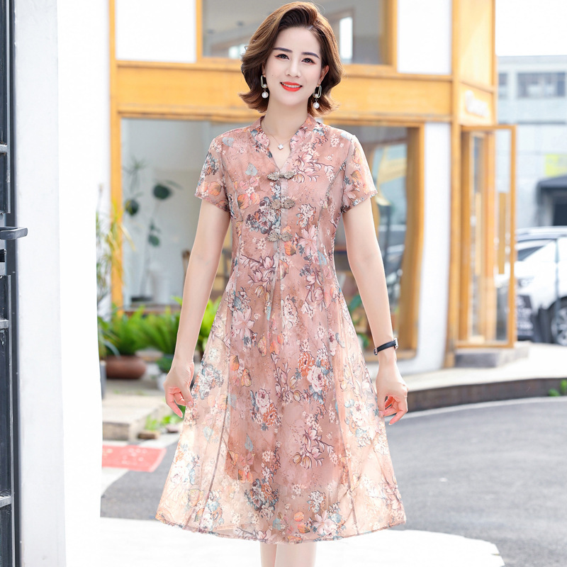 连衣裙妈妈夏装洋气雪纺中年女装夏季短袖中老年气质旗袍碎花裙子