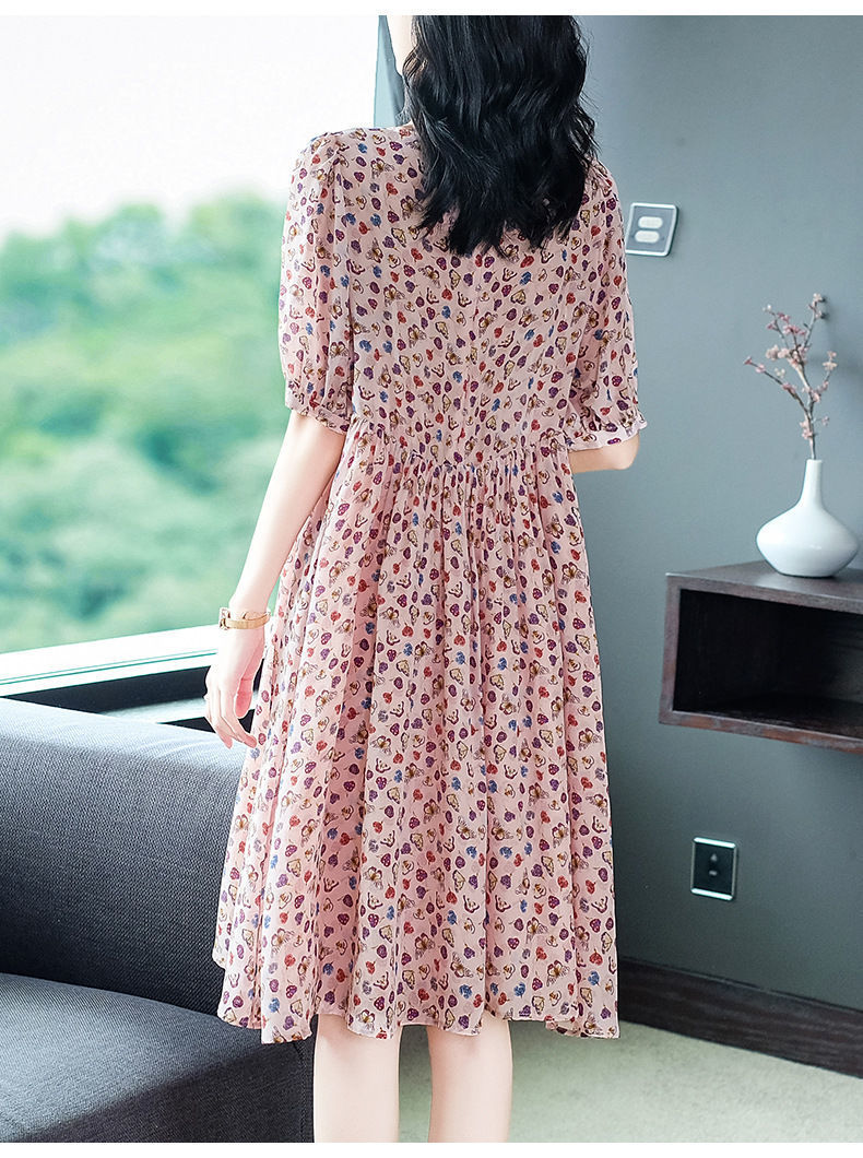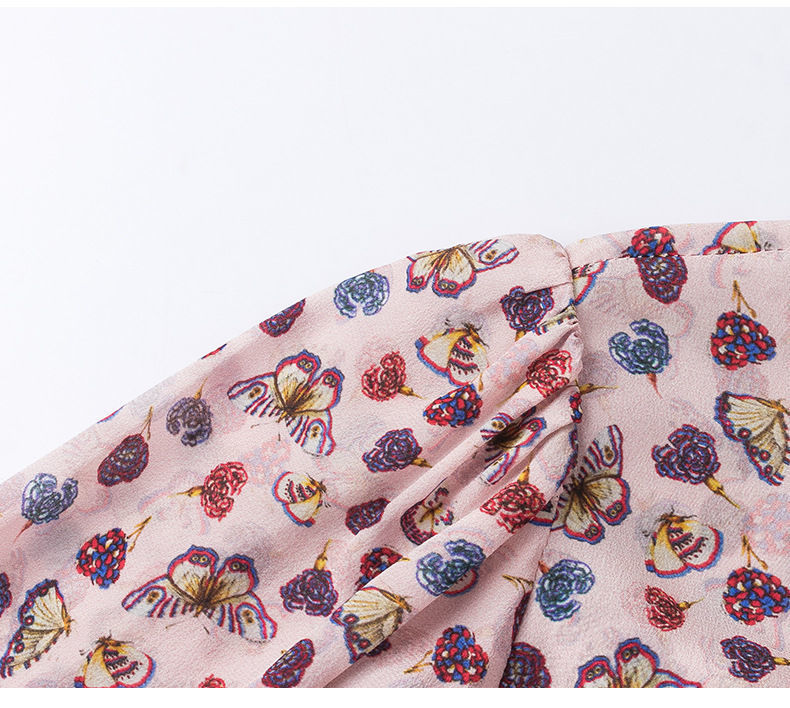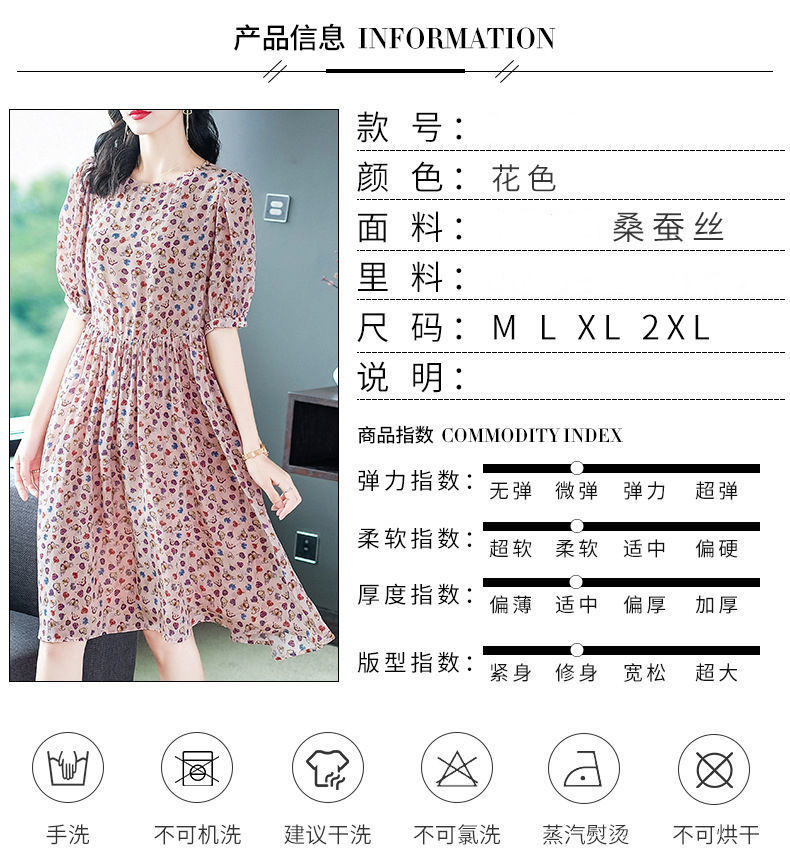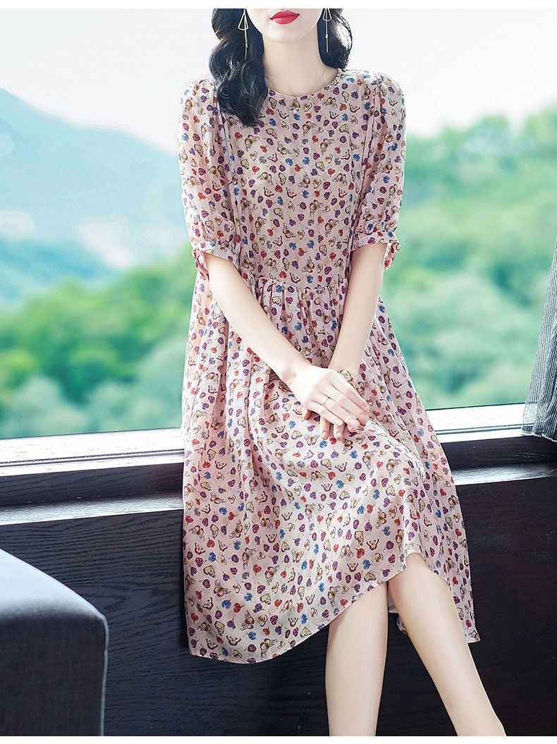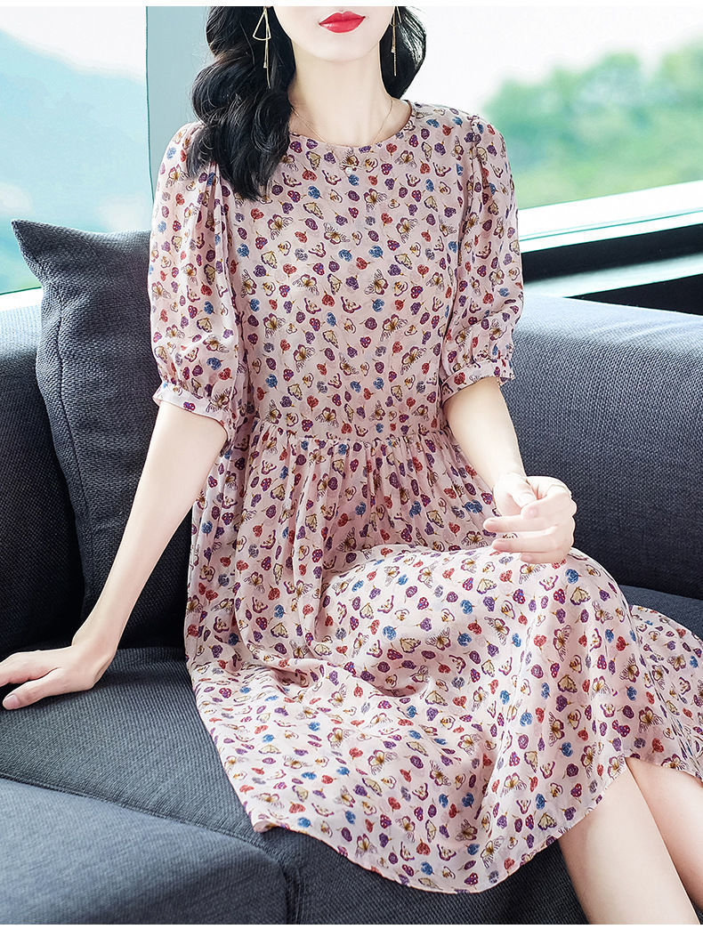 2023潮款时尚宽松显瘦女长款过膝高端大牌桑蚕丝碎花裙真丝连衣裙