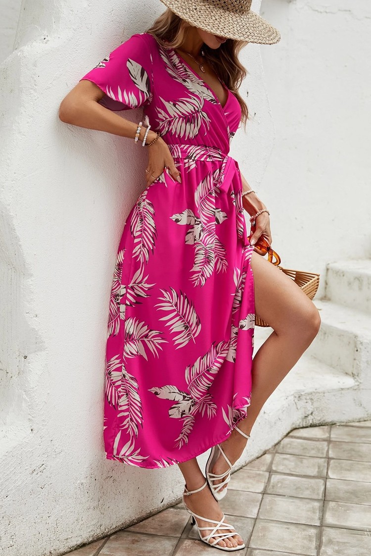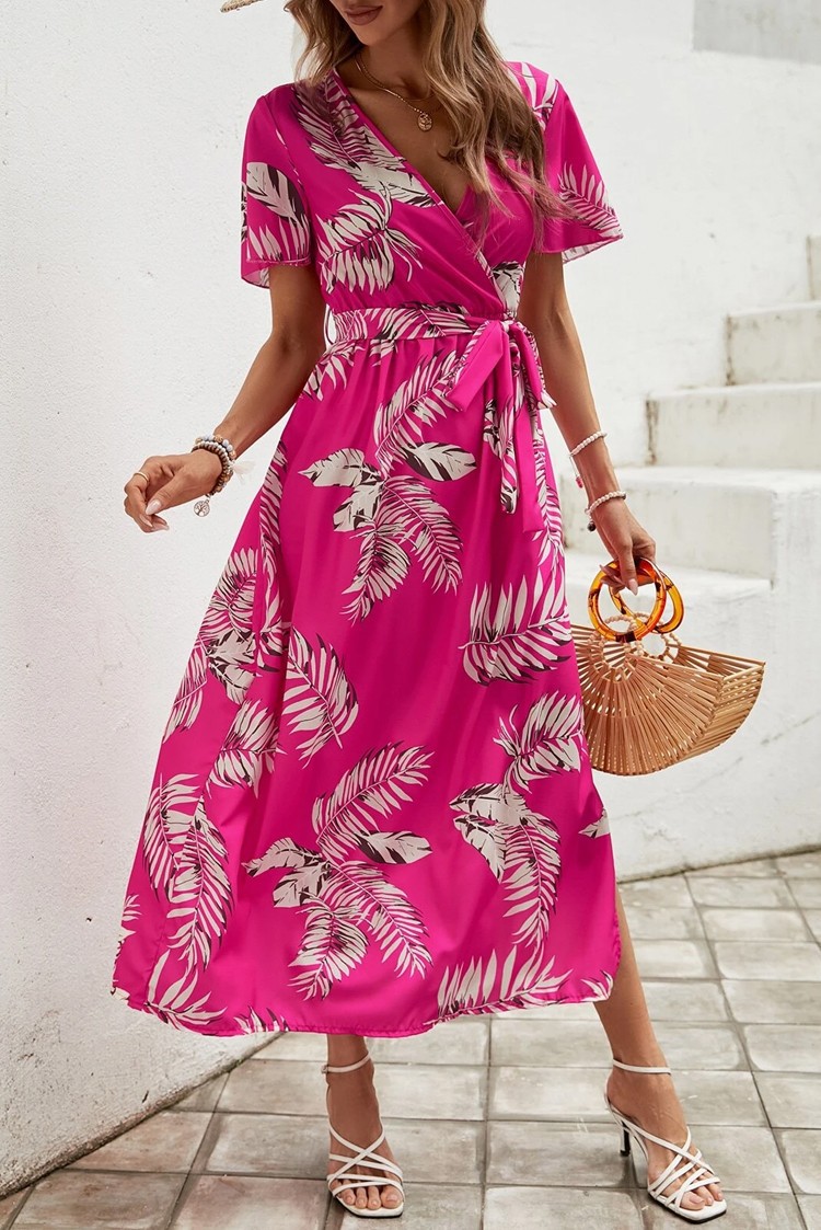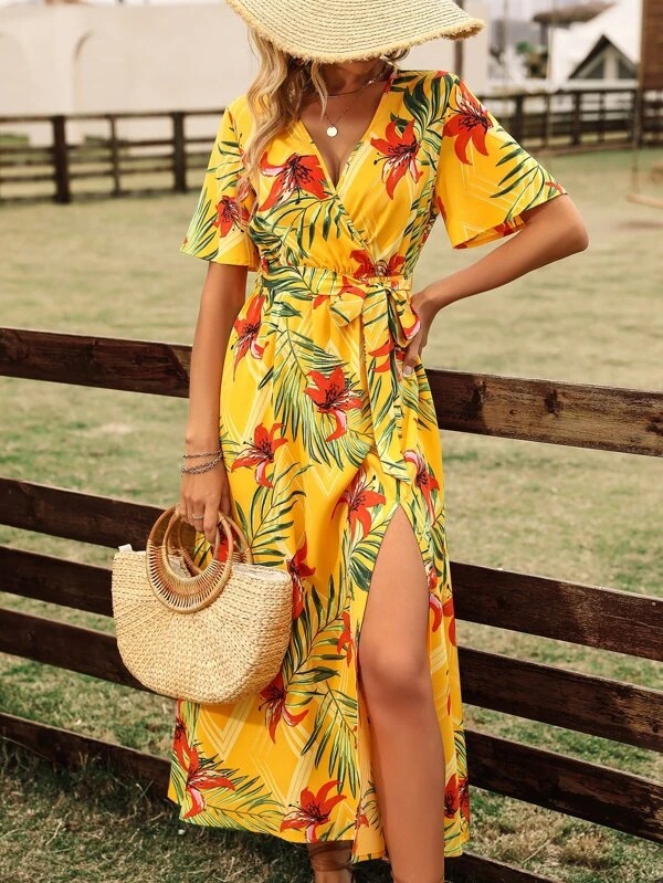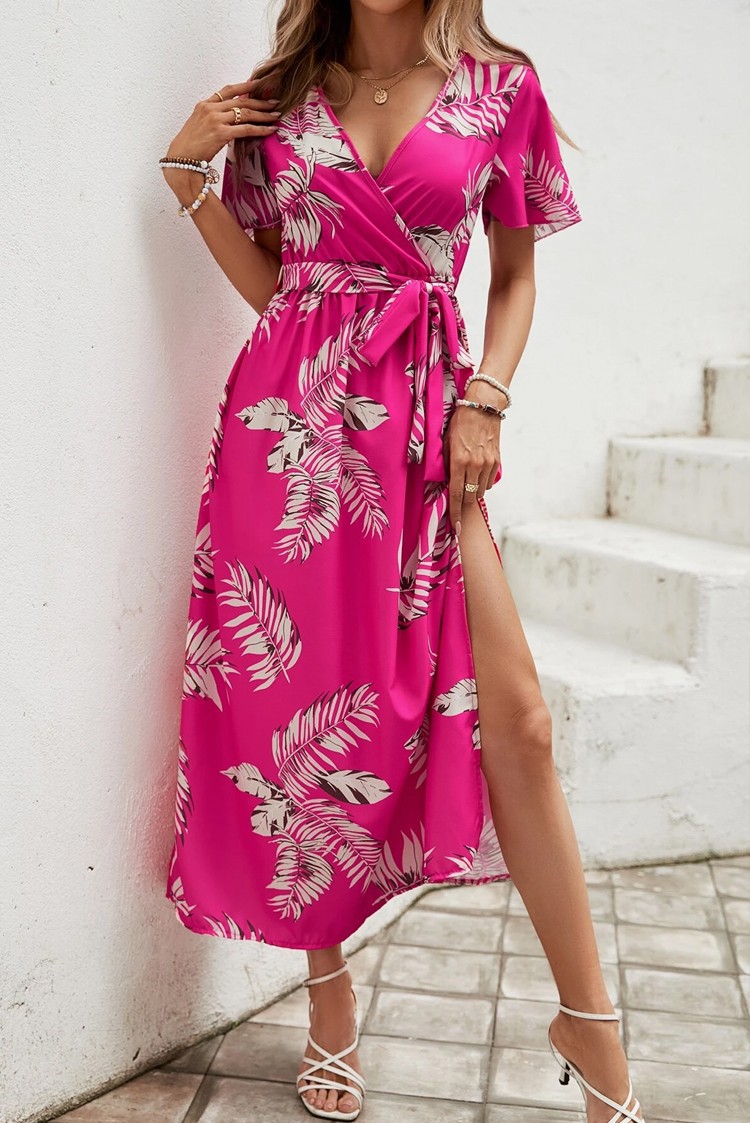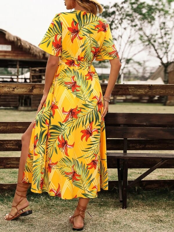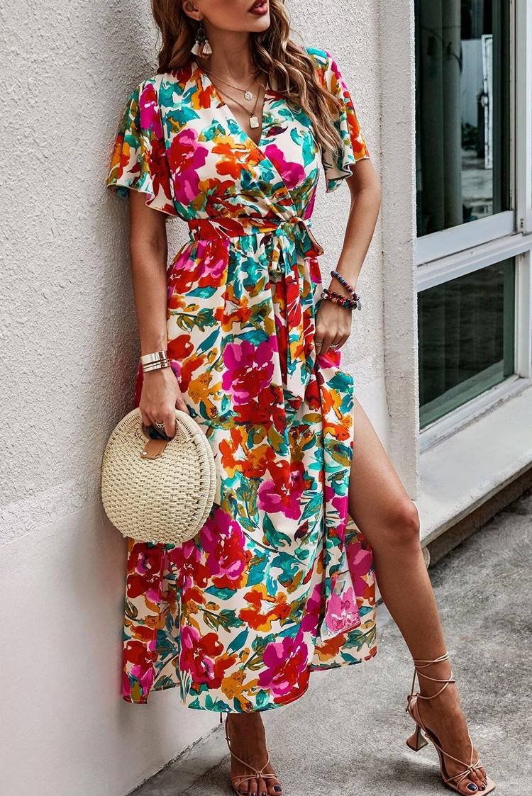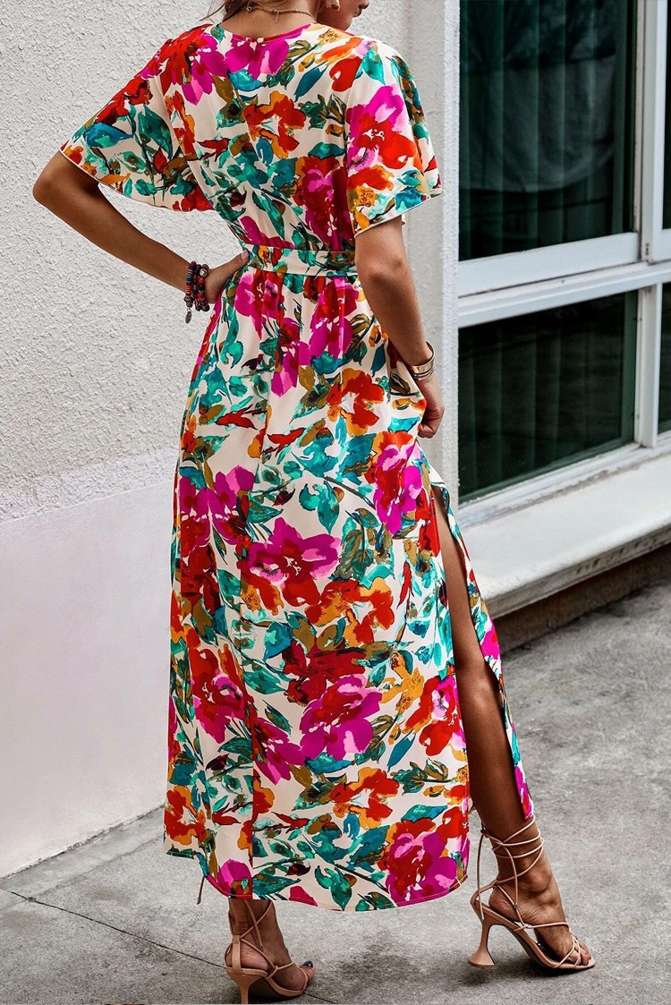 连衣裙夏季跨境女装欧美外贸2023新款eBay亚马逊爆款开叉印花长裙