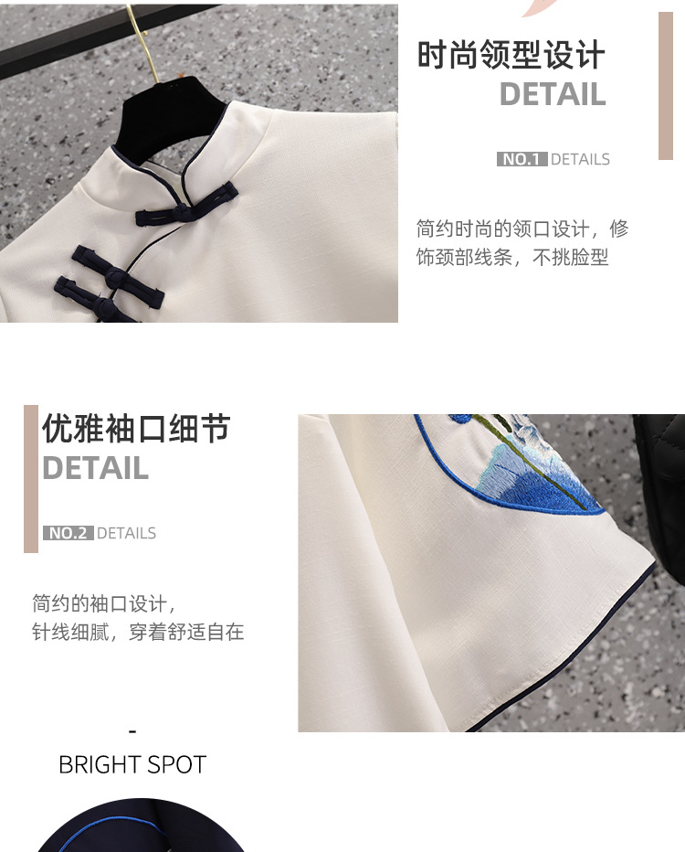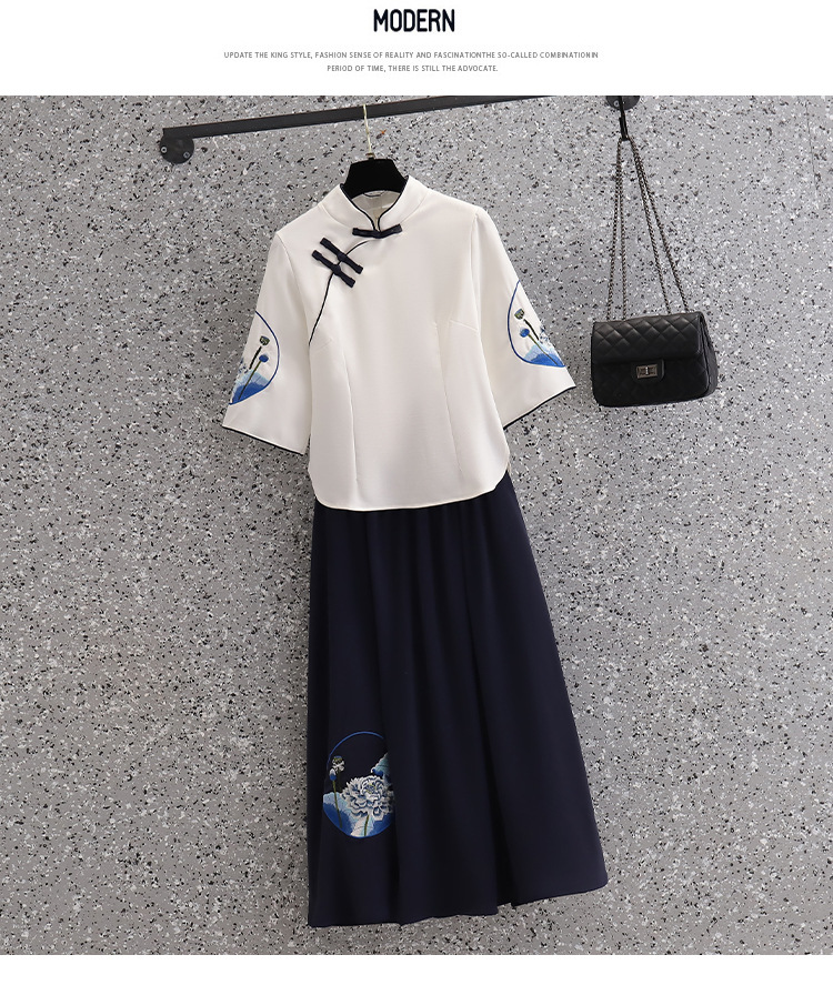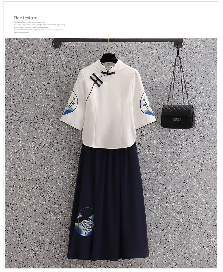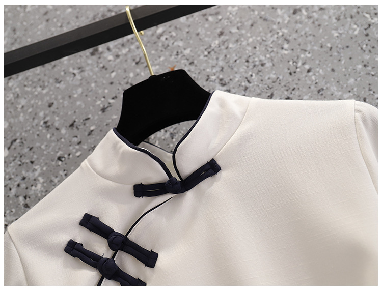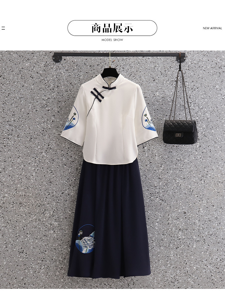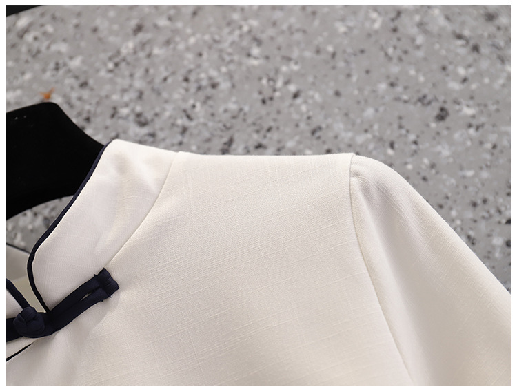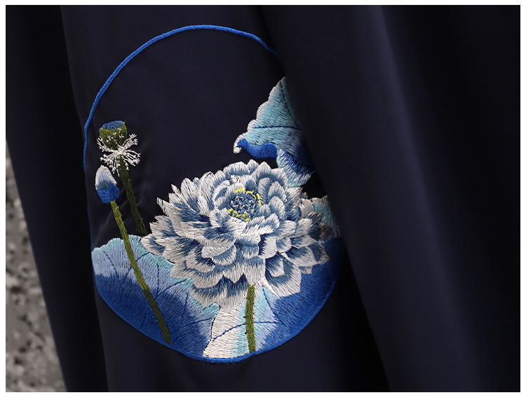 中式国风复古改良汉服清新禅茶服立领旗袍青花瓷刺绣荷花裙套装夏