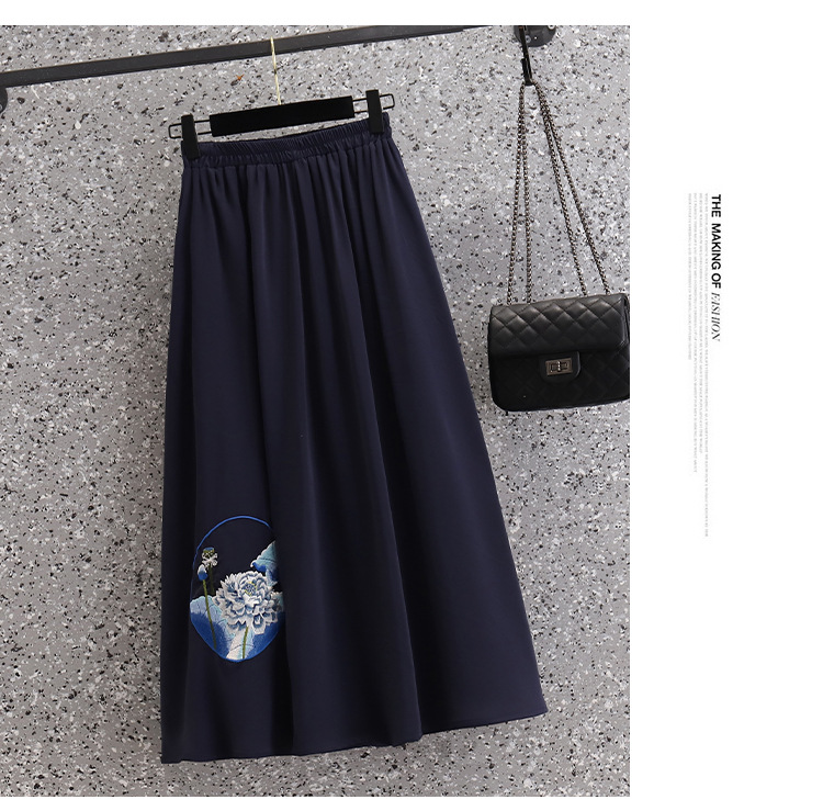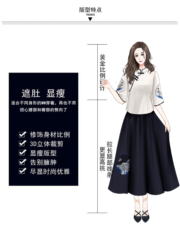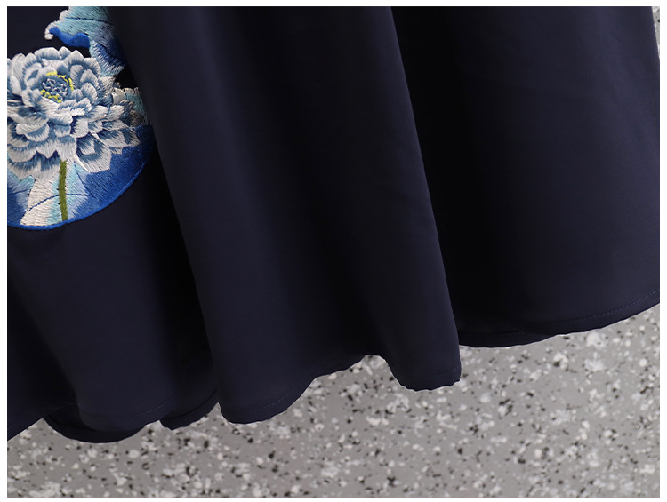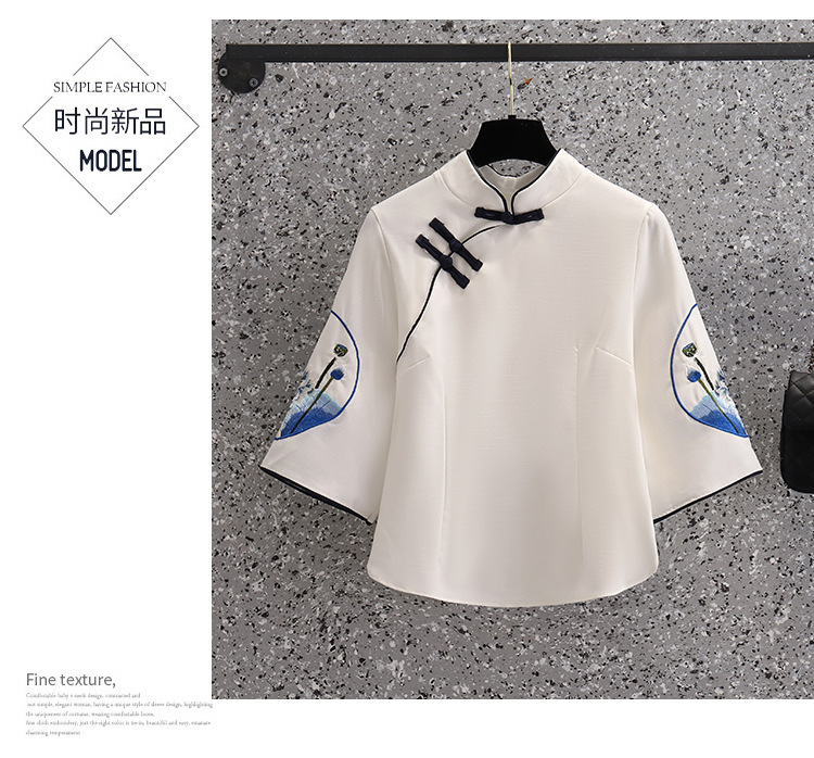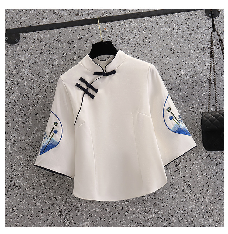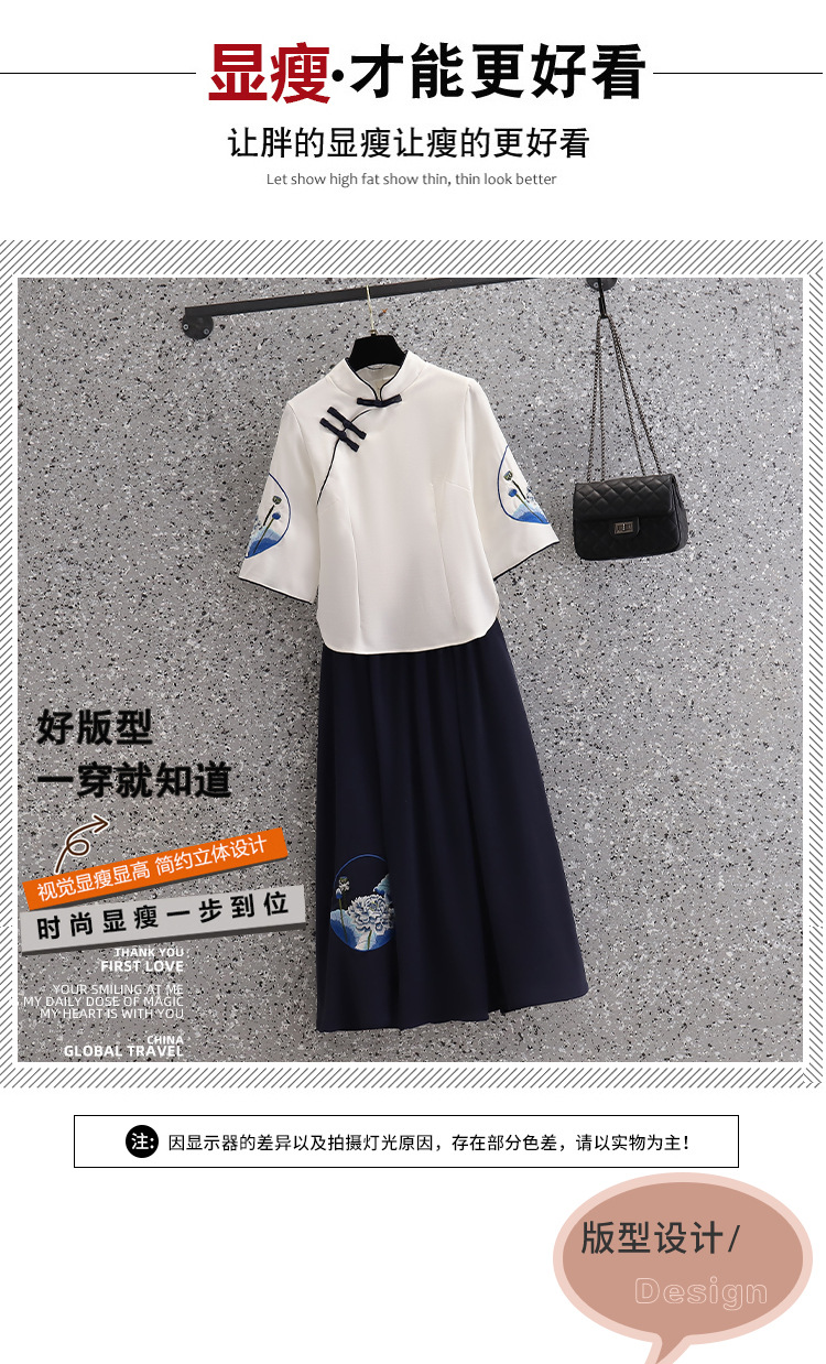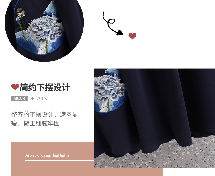 中式国风复古改良汉服清新禅茶服立领旗袍青花瓷刺绣荷花裙套装夏