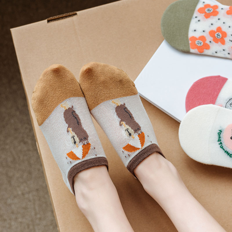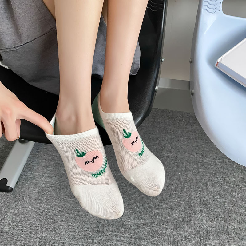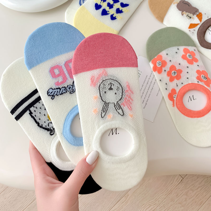 袜子女春夏批发网眼透气可爱卡通女士隐形袜棉硅胶防滑独立包装