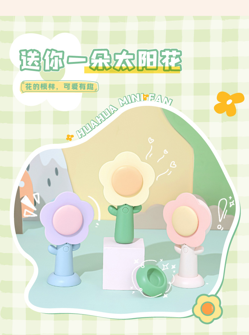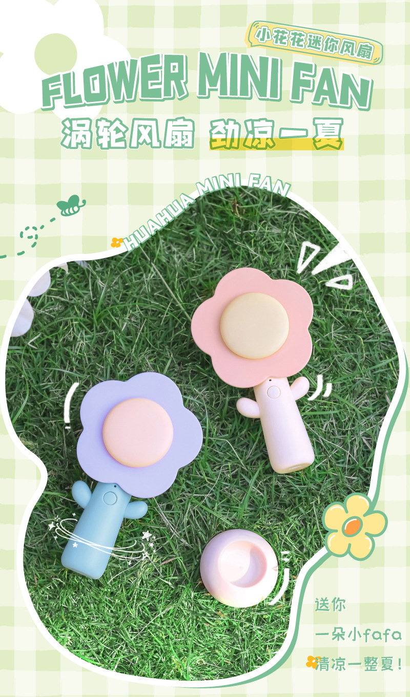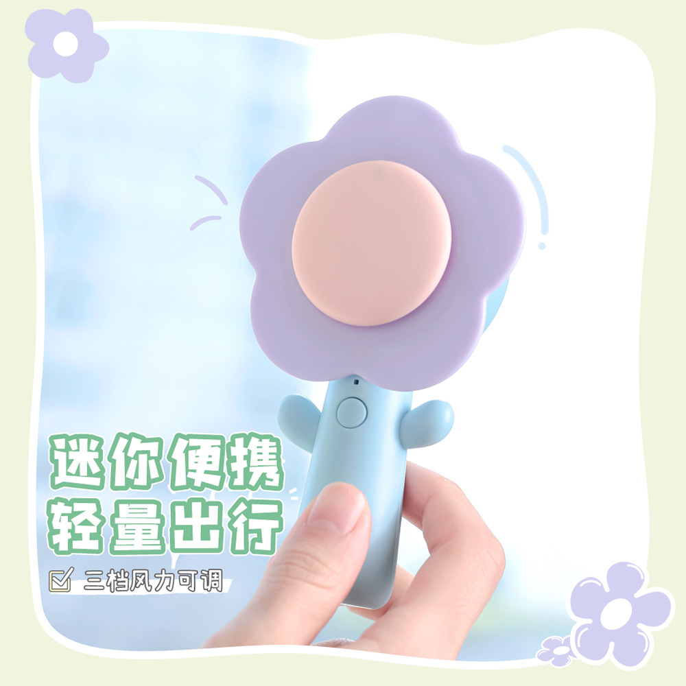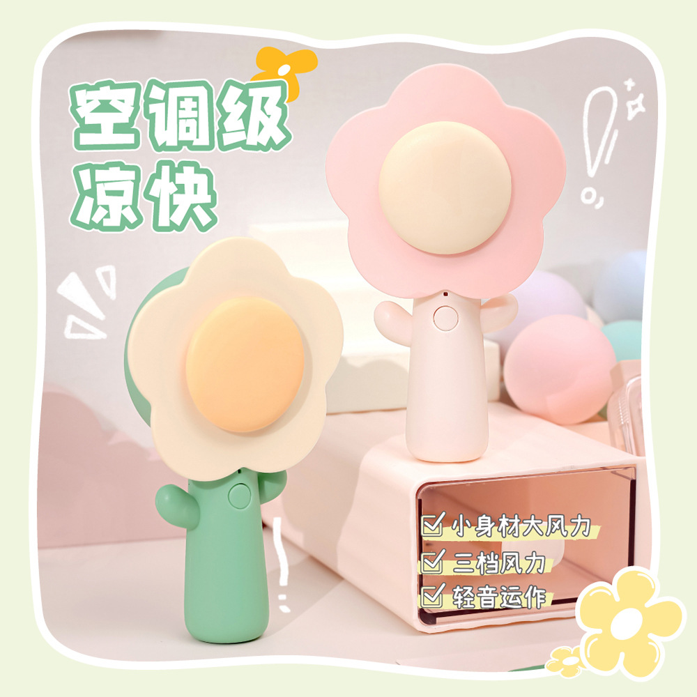 2023爆款小清新风扇夏日手持可爱花朵风扇usb充电马卡龙色系风扇