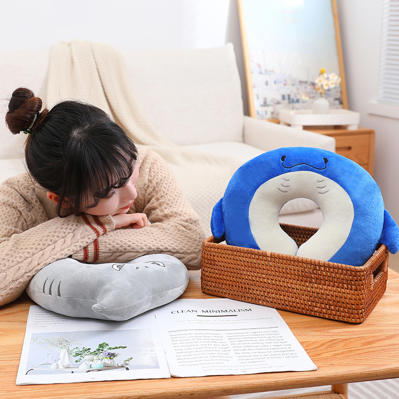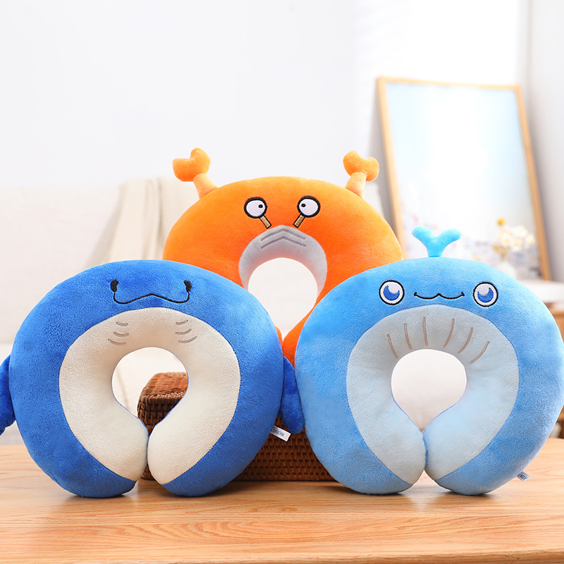 跨境海洋颈枕毛绒玩具批发 鲸鱼鲨鱼U枕办公室午睡枕玩偶企业礼品