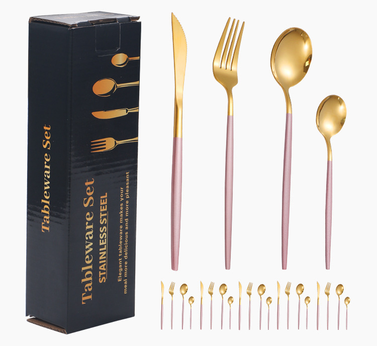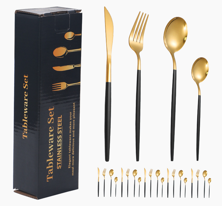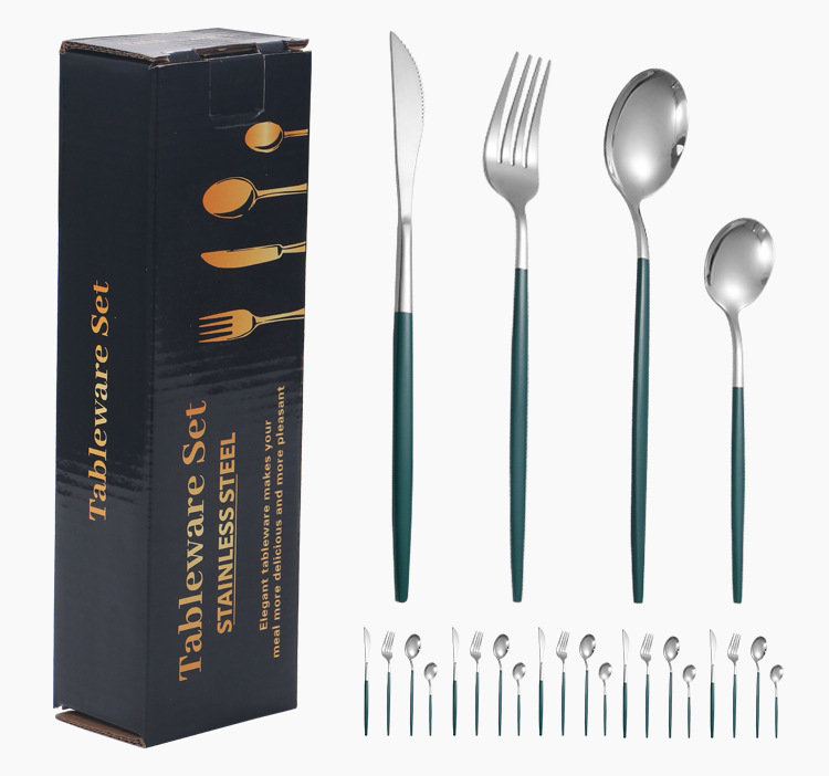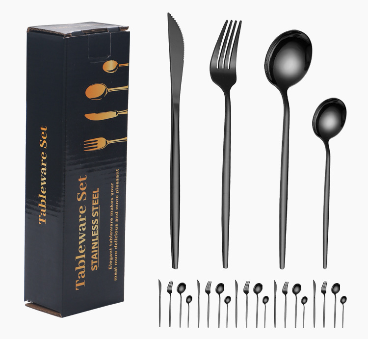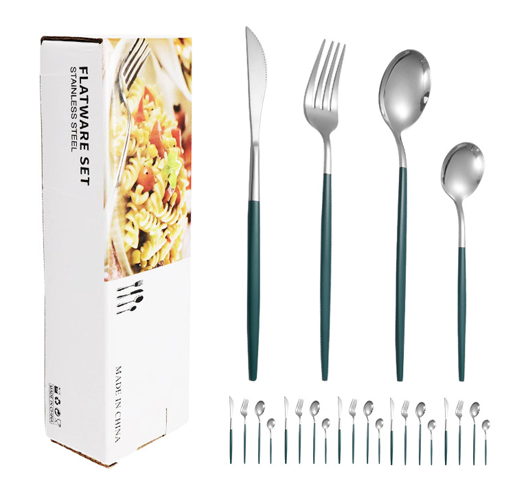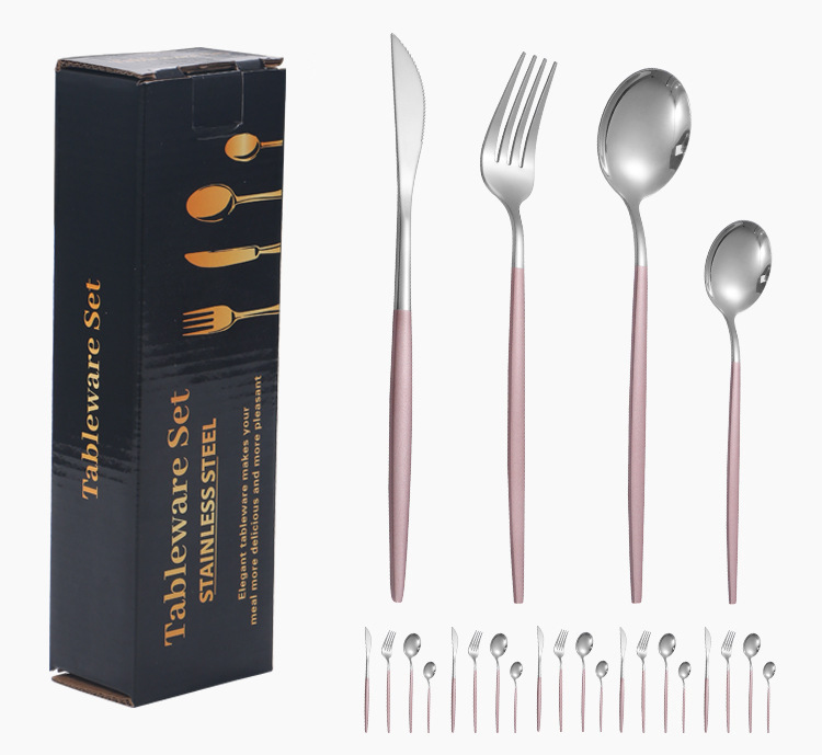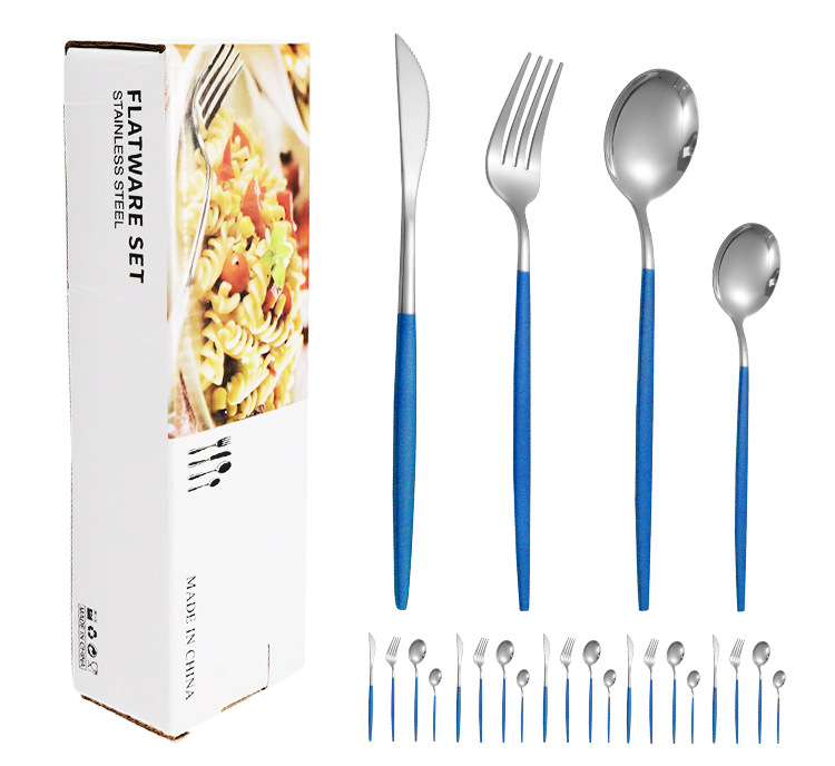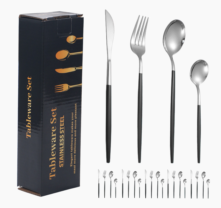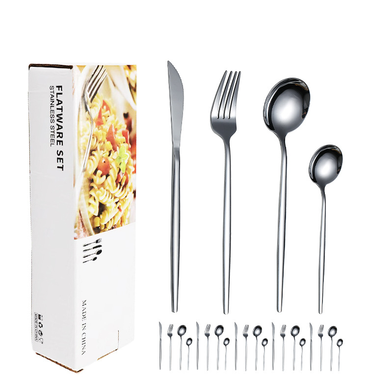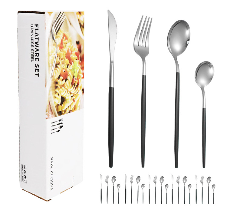 跨境亚马逊不锈钢葡萄牙西餐24件套餐具 牛排刀叉勺4主件餐具套装