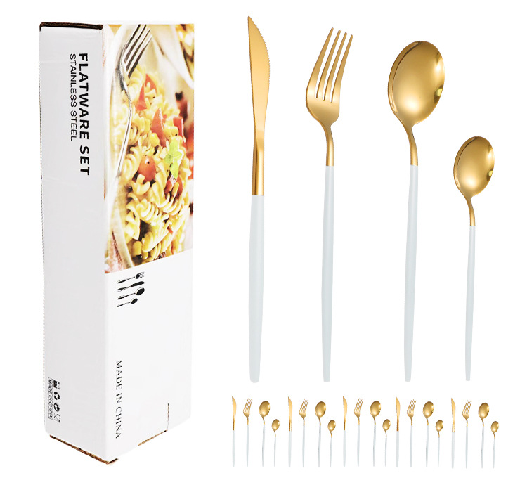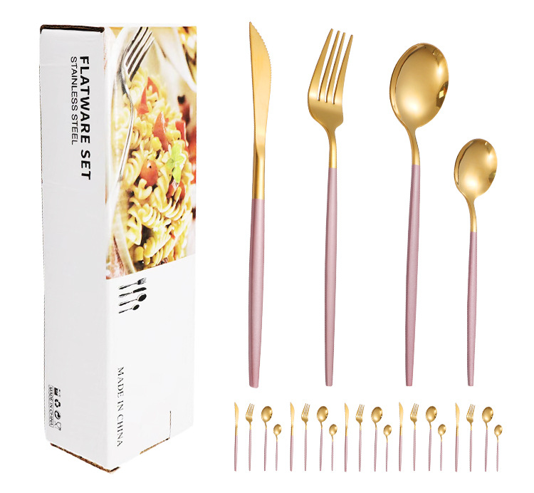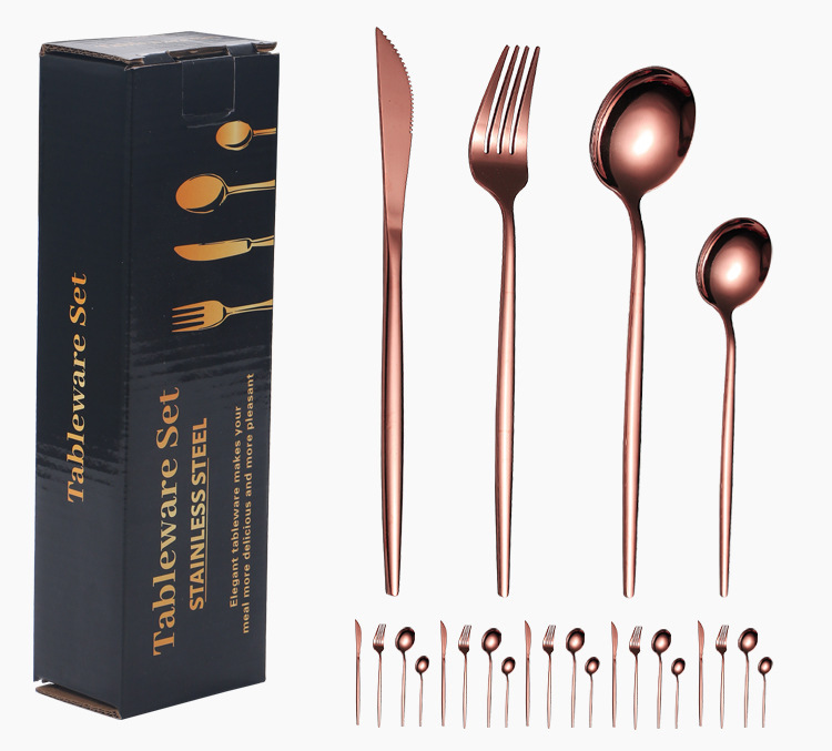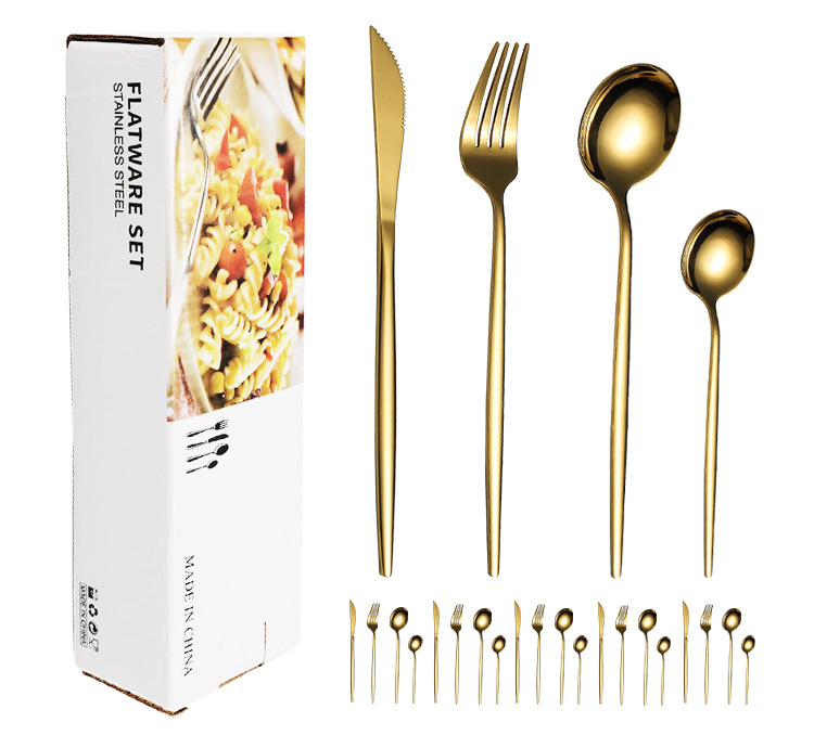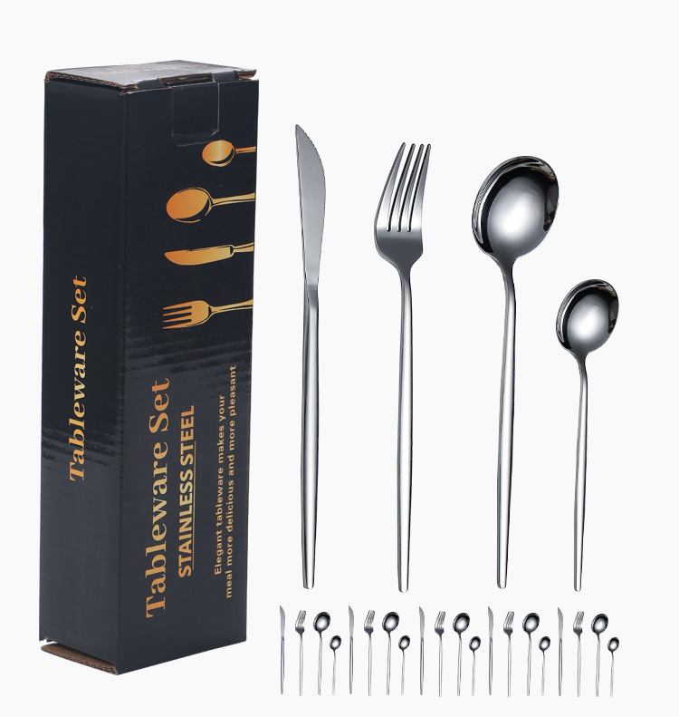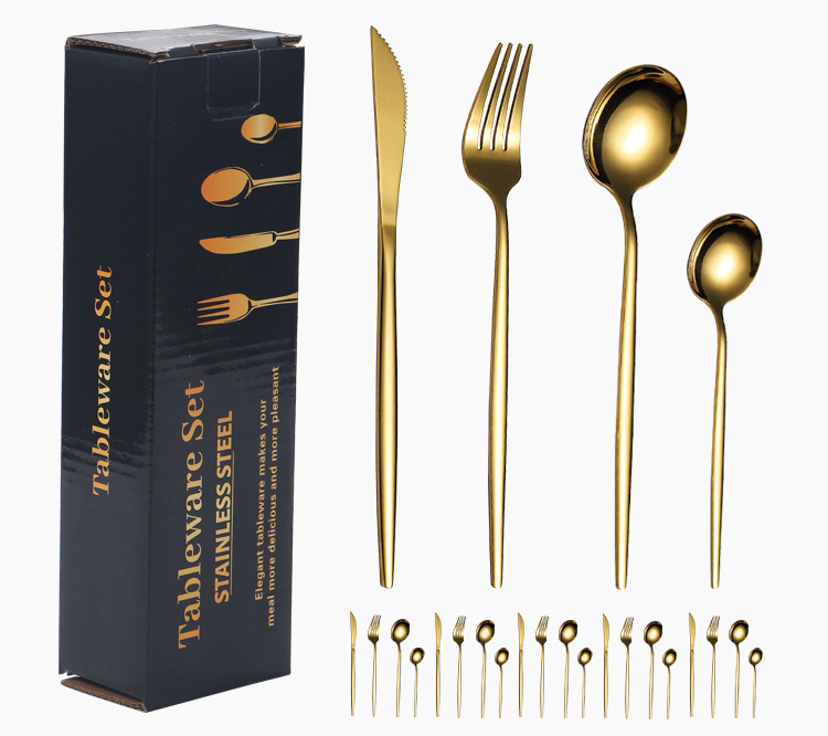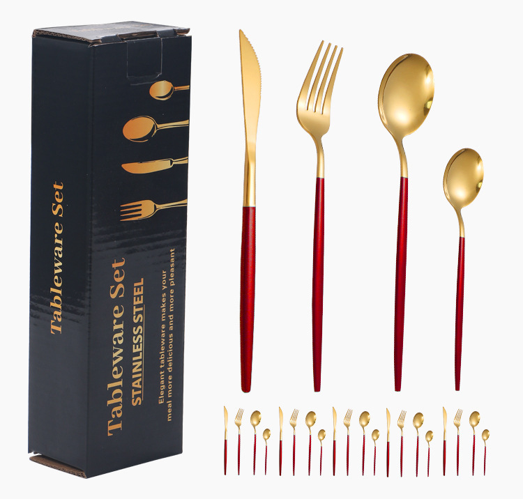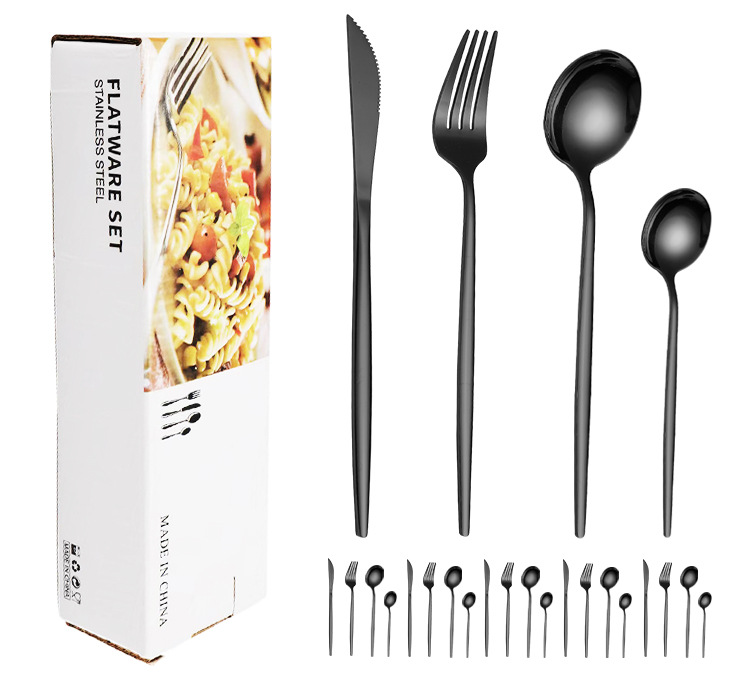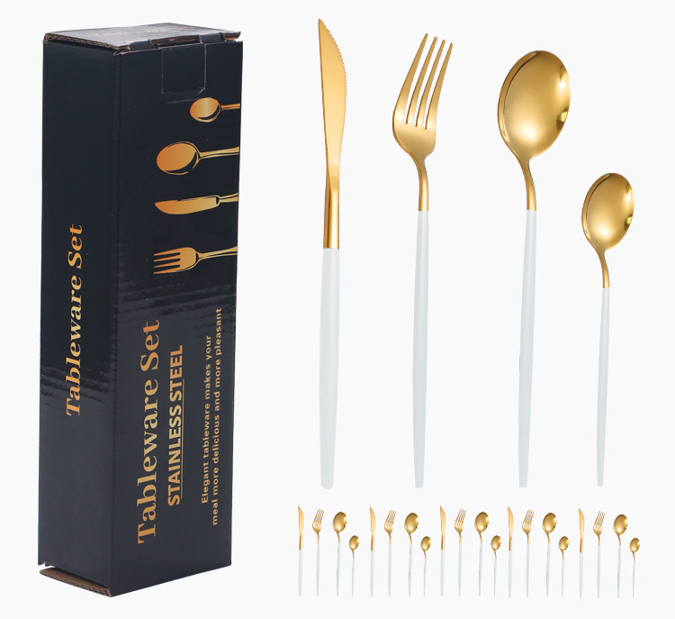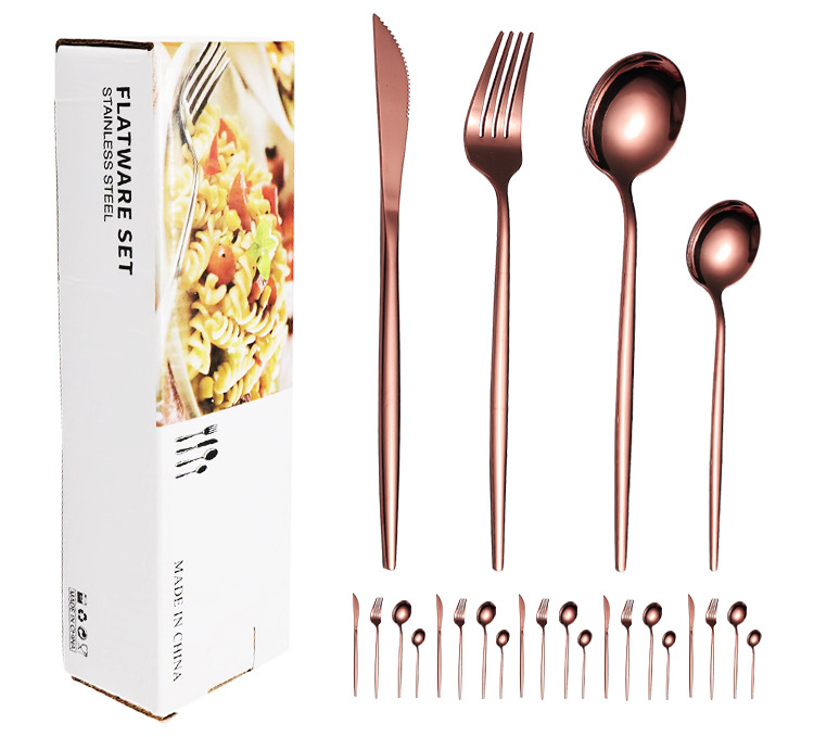 跨境亚马逊不锈钢葡萄牙西餐24件套餐具 牛排刀叉勺4主件餐具套装