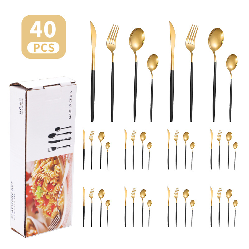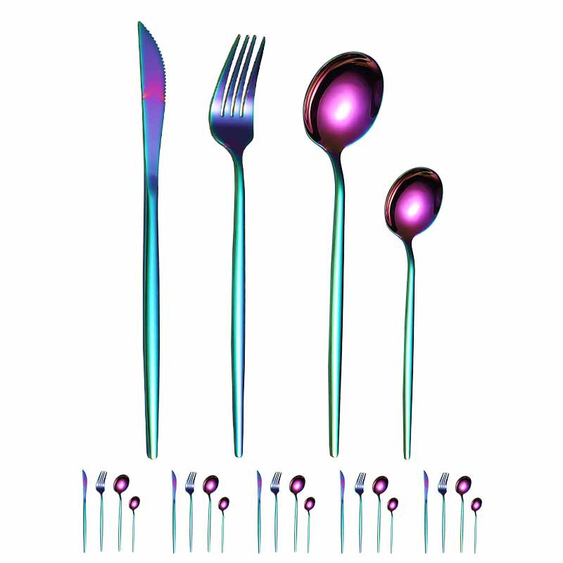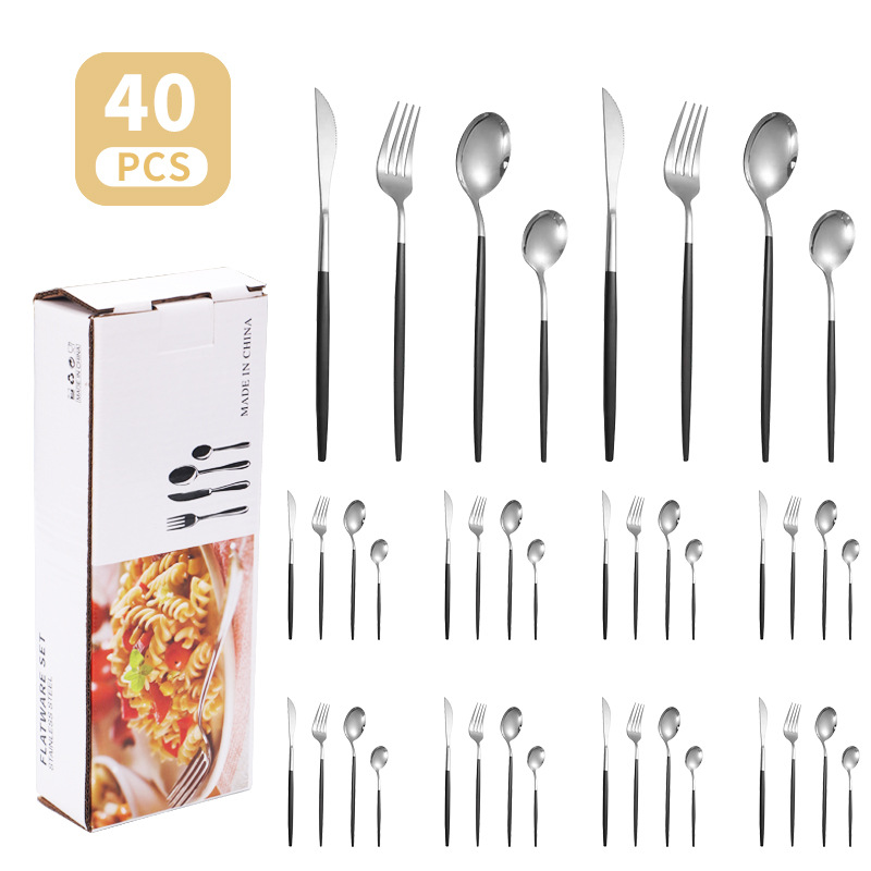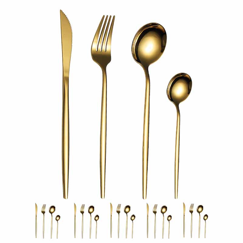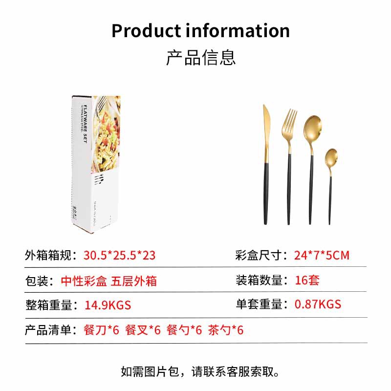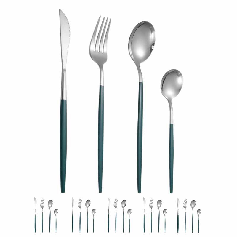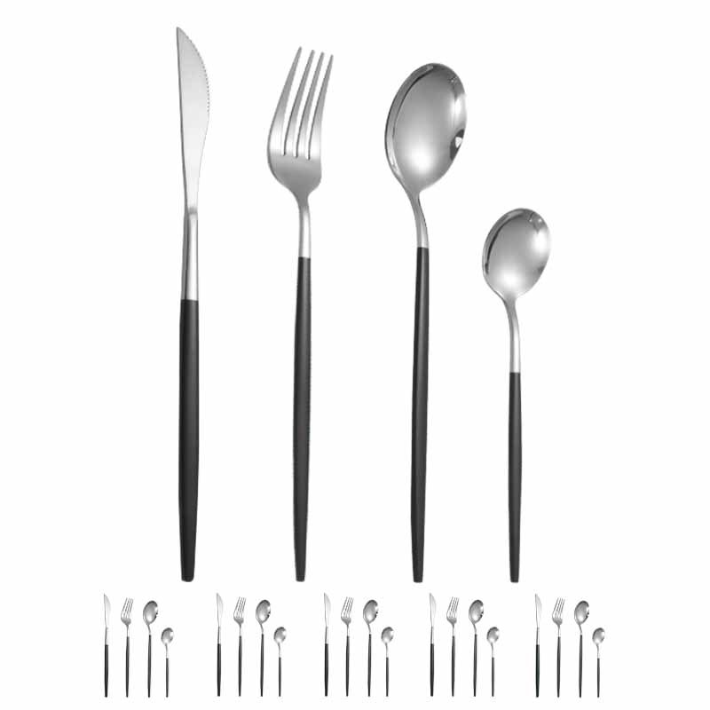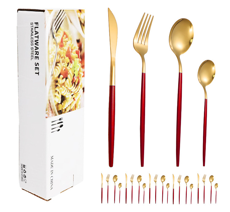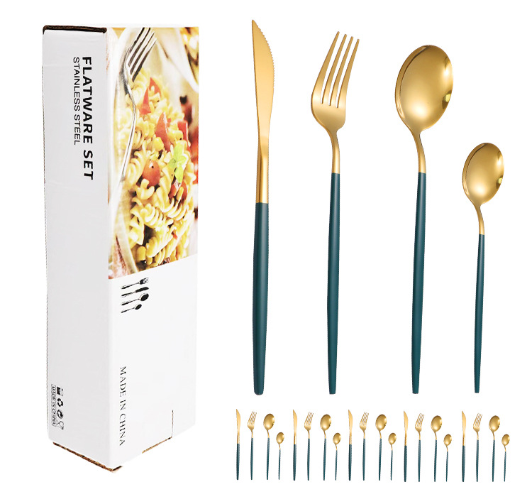 跨境亚马逊不锈钢葡萄牙西餐24件套餐具 牛排刀叉勺4主件餐具套装