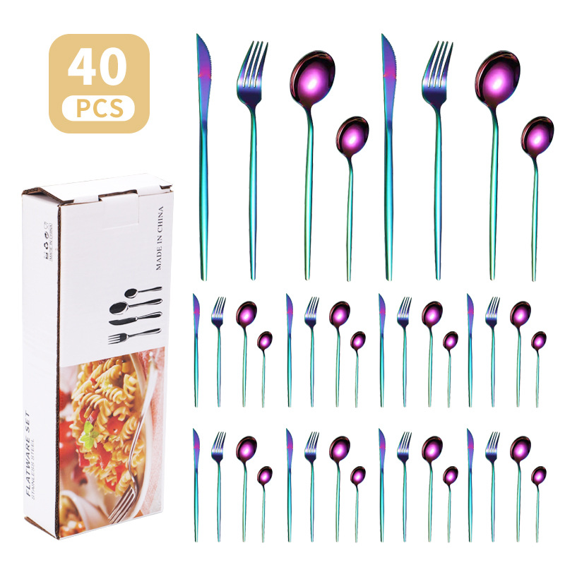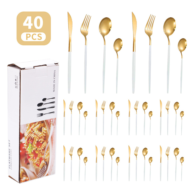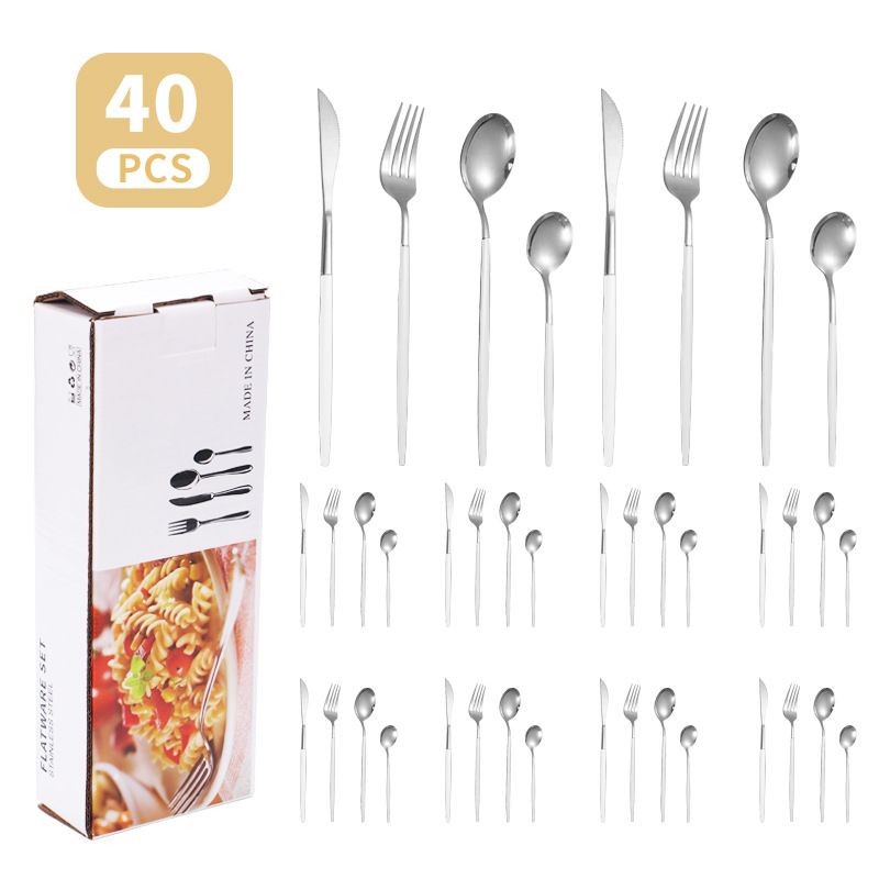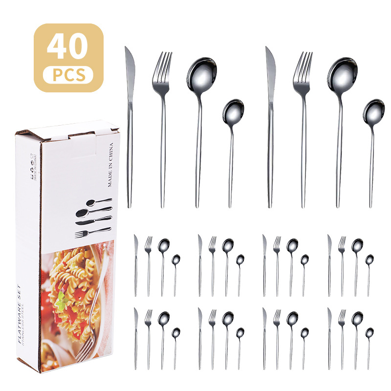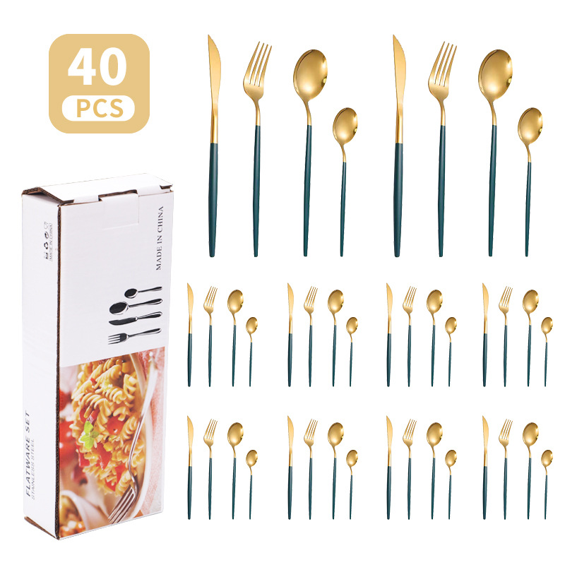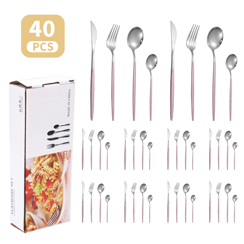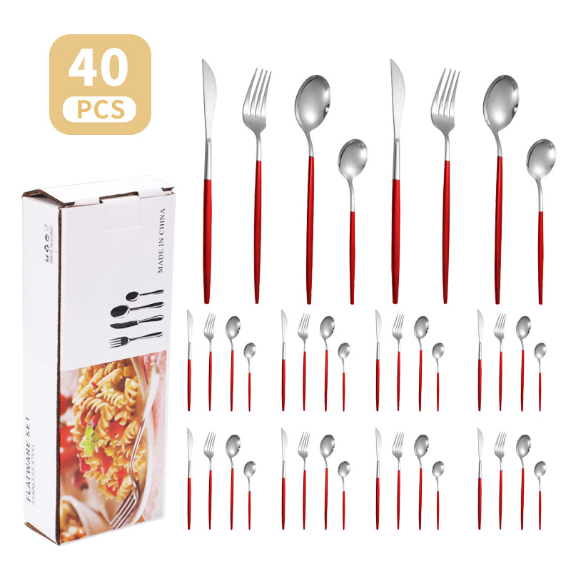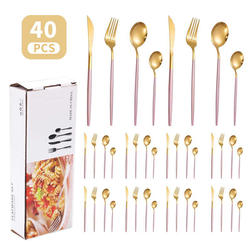 跨境亚马逊不锈钢葡萄牙西餐24件套餐具 牛排刀叉勺4主件餐具套装