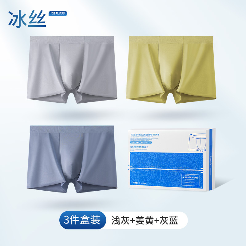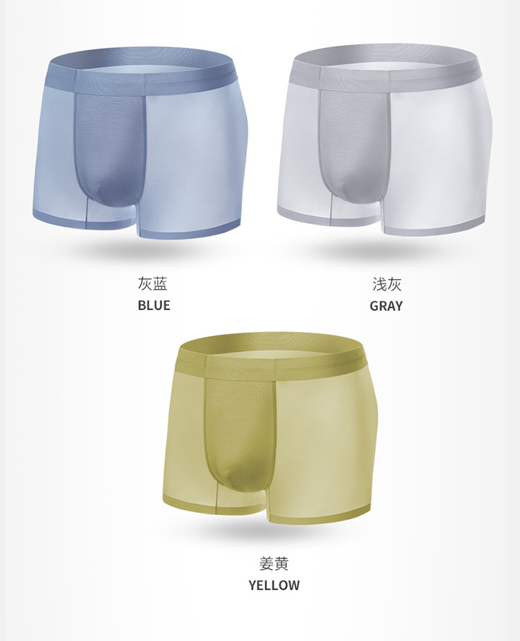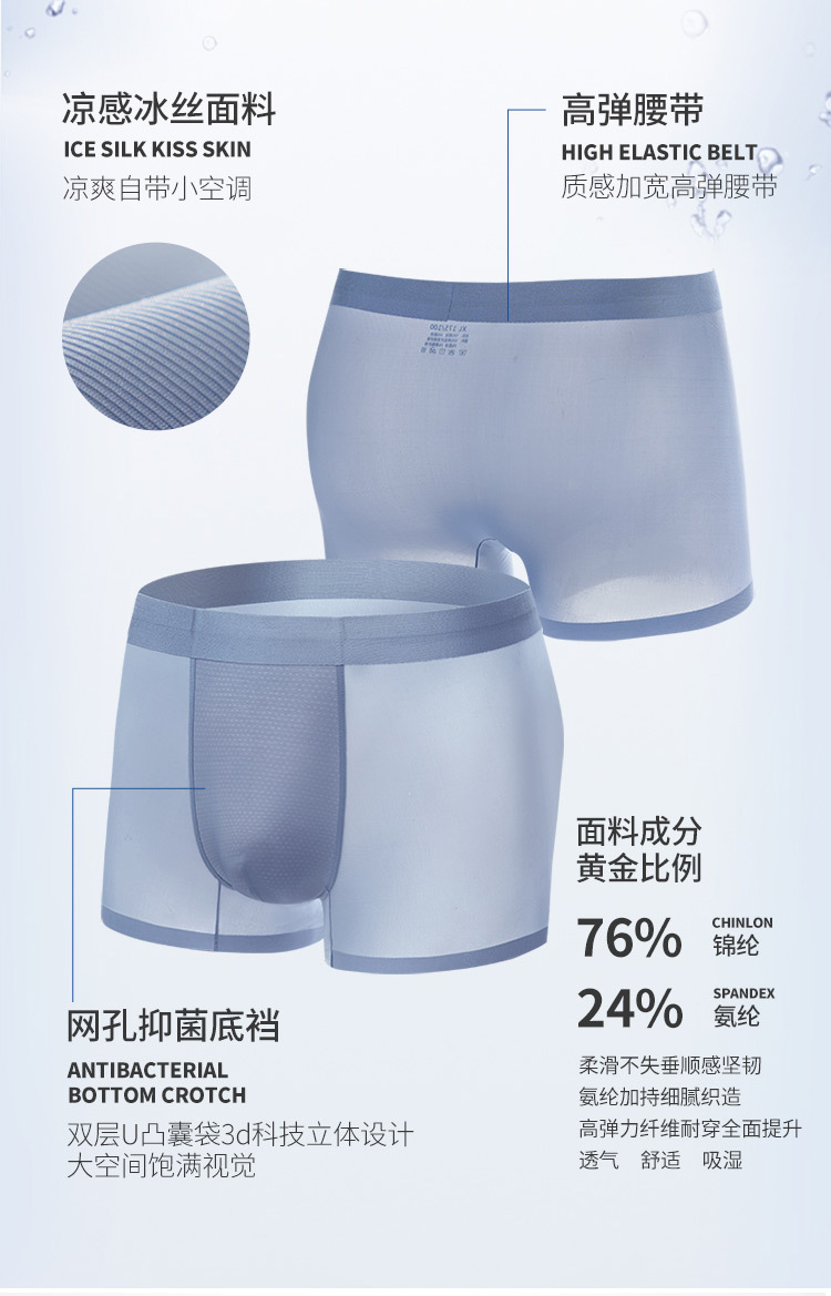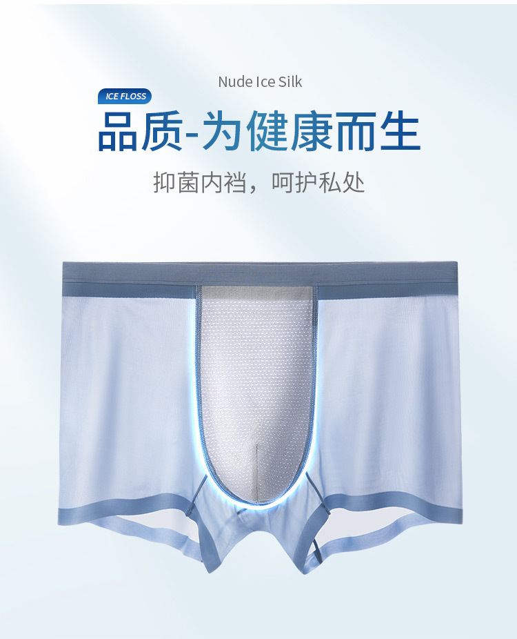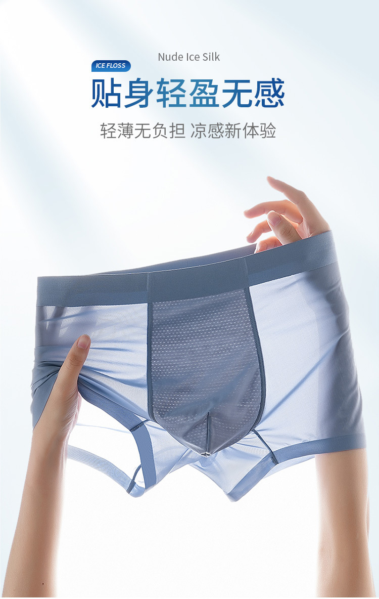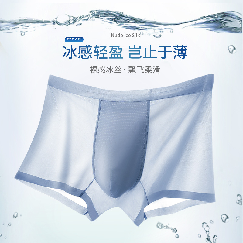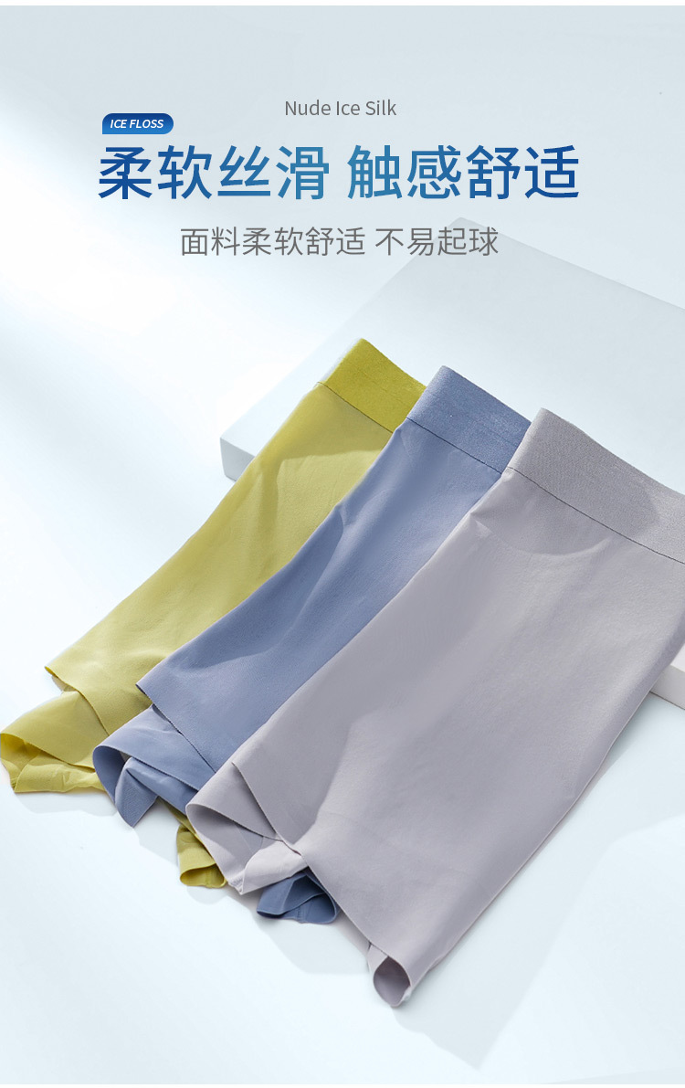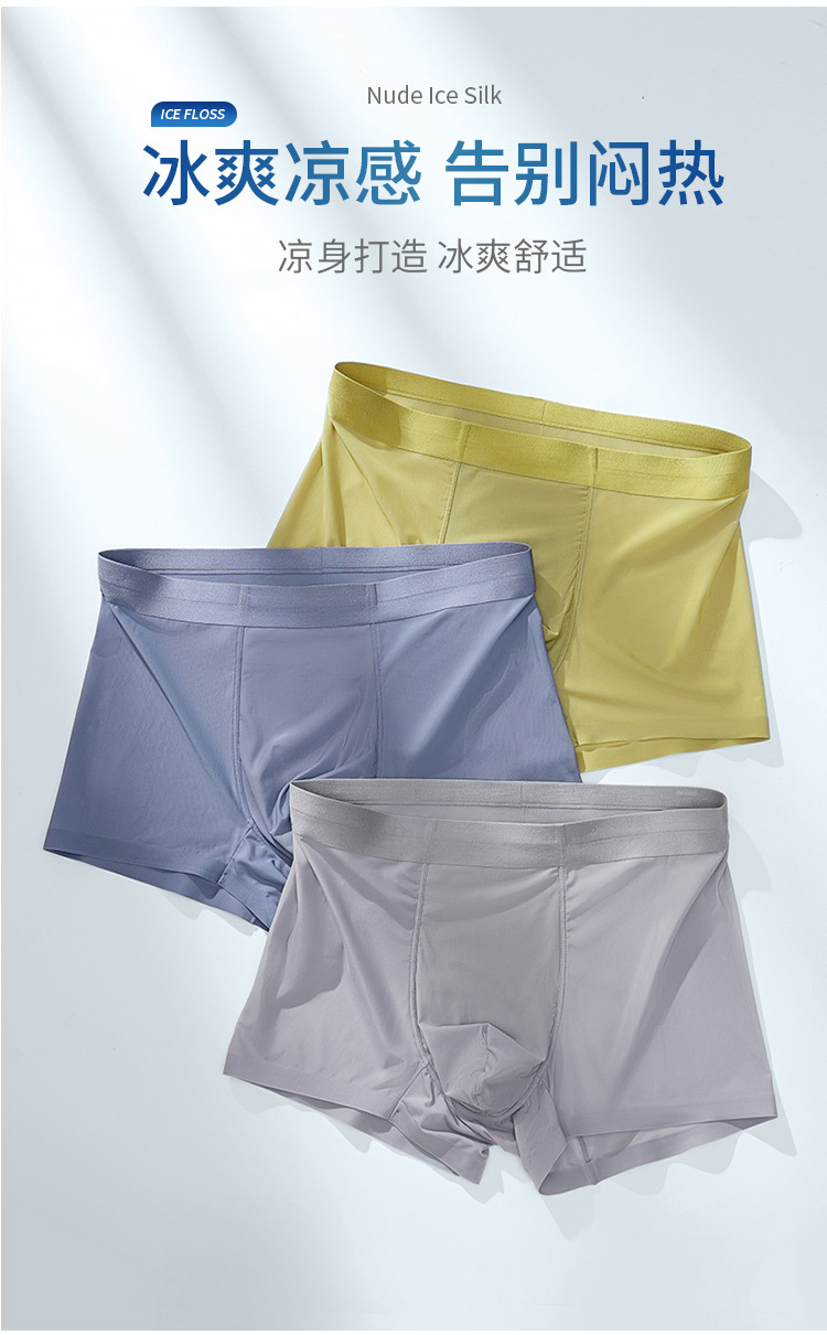 男士内裤无痕冰丝平角裤夏薄款冰感裤运动内裤男纯色四角裤男