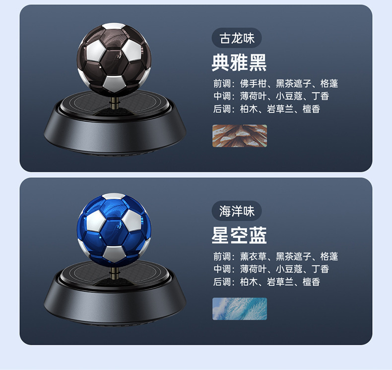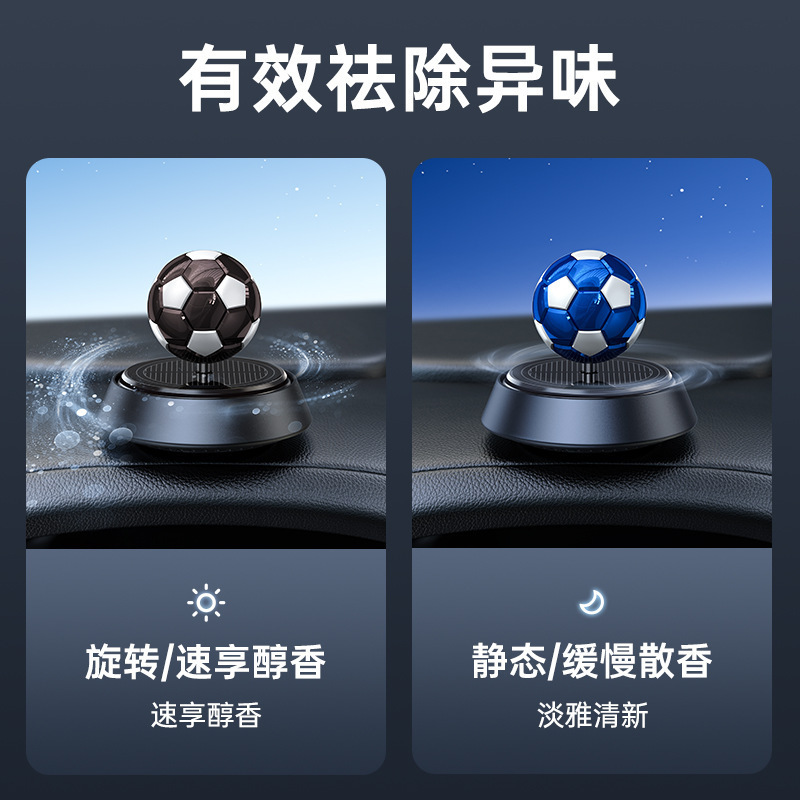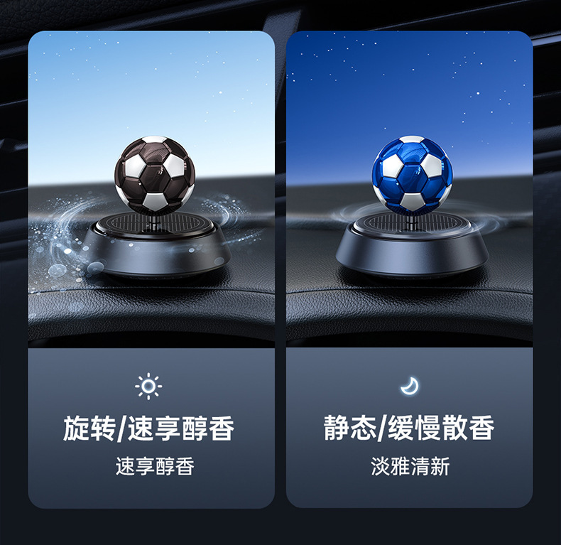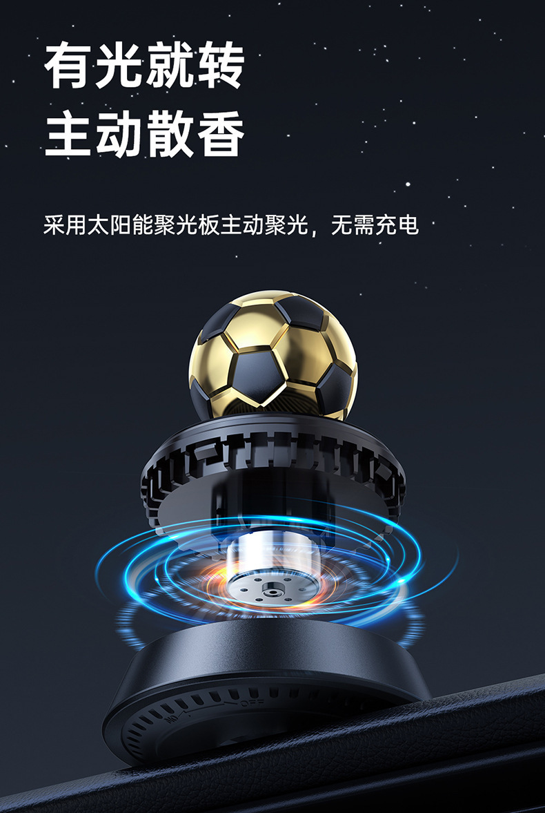 车载香薰太阳能旋转足球悬浮摆件汽车中控台黑科技持久淡香氛摆件
