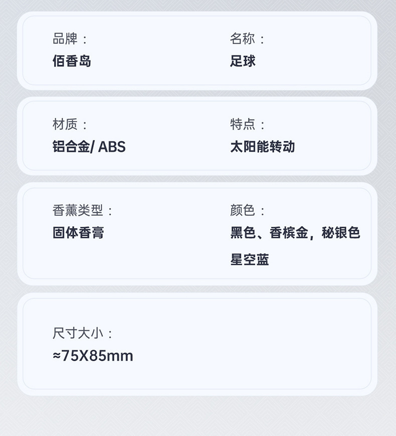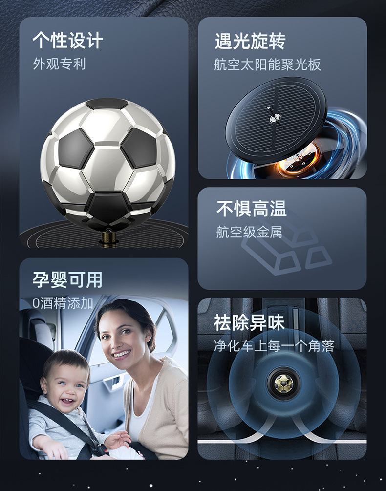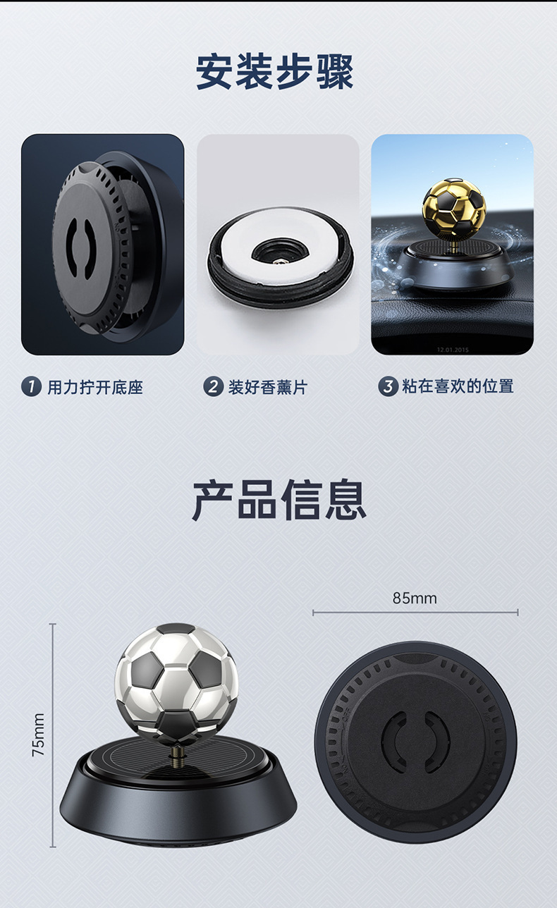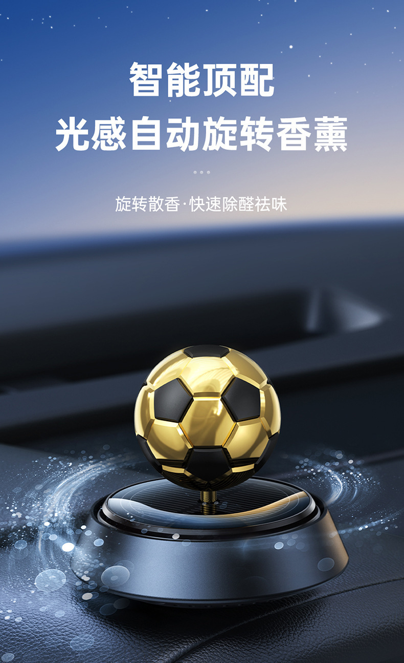 车载香薰太阳能旋转足球悬浮摆件汽车中控台黑科技持久淡香氛摆件