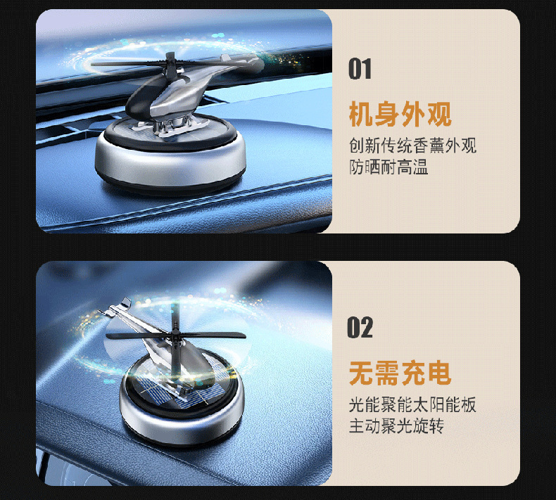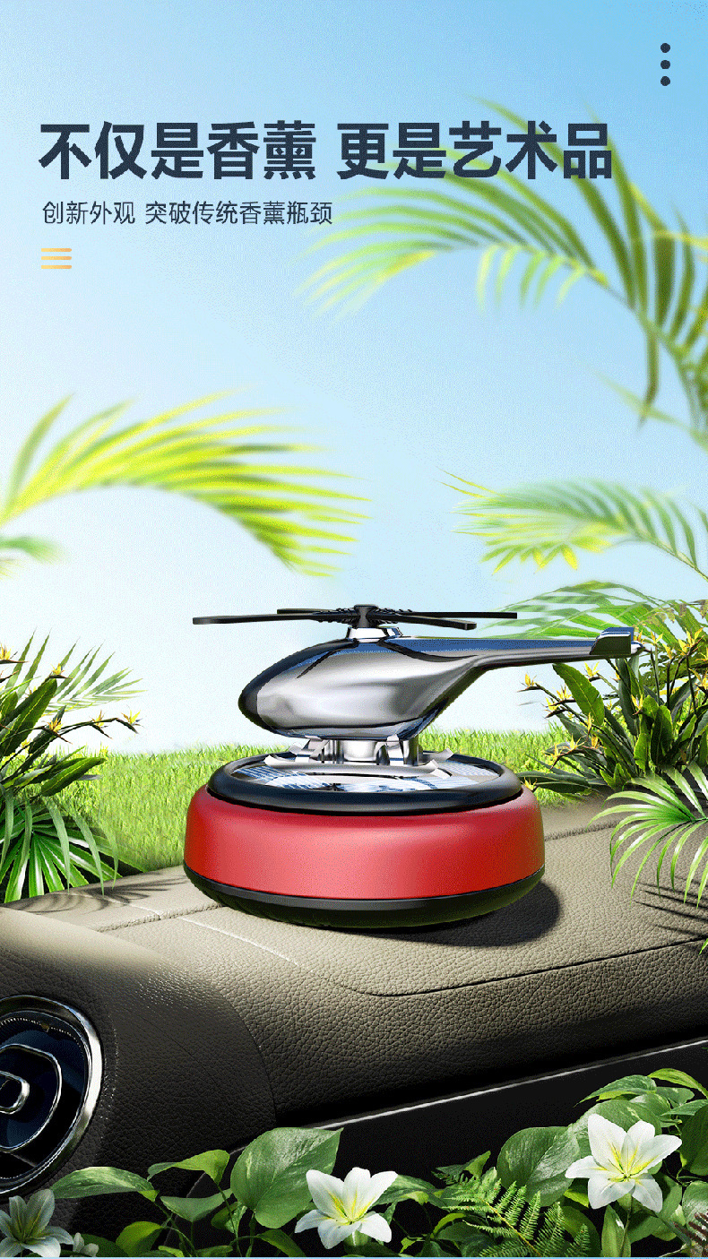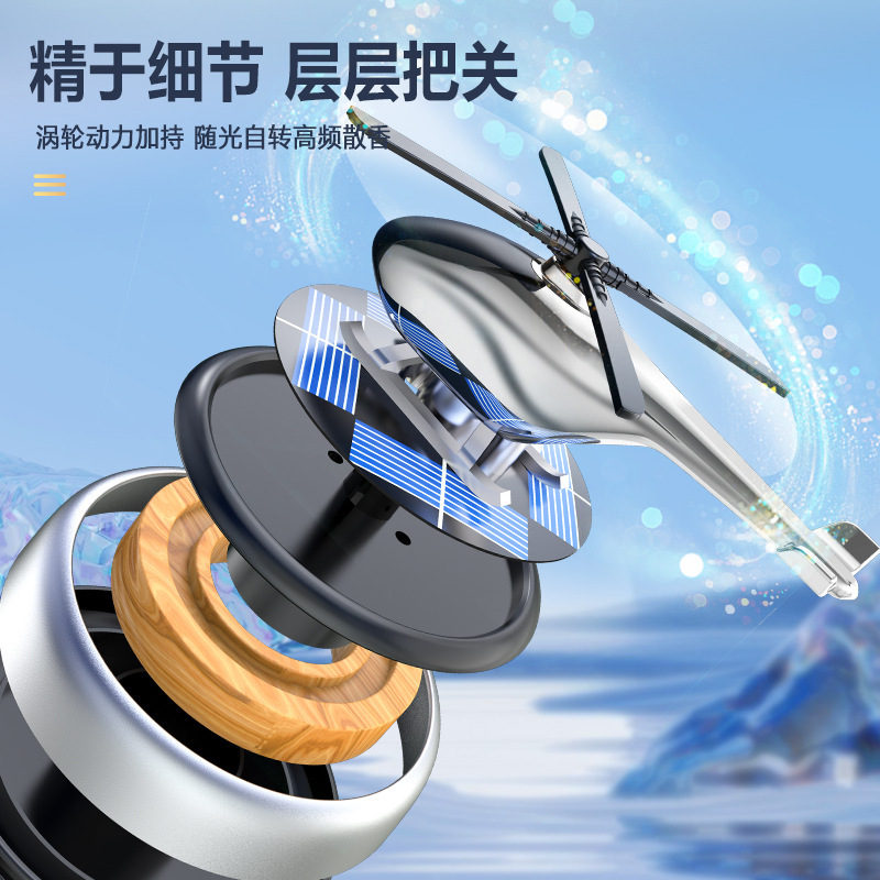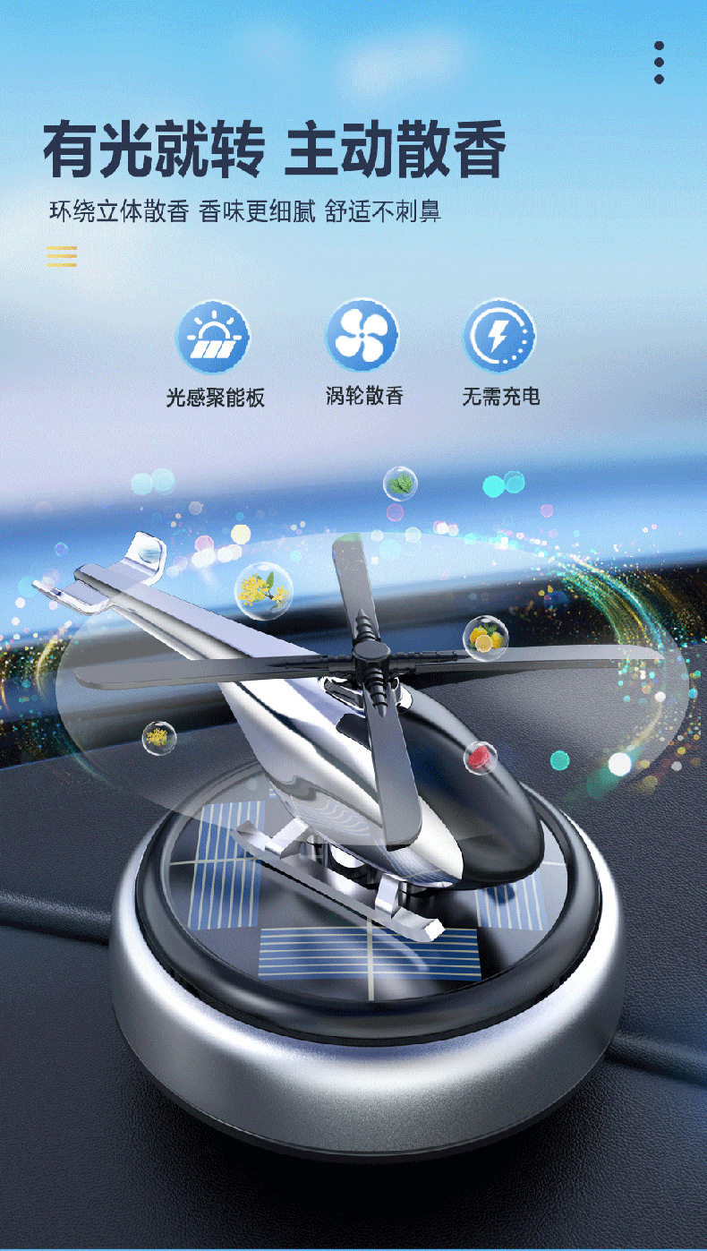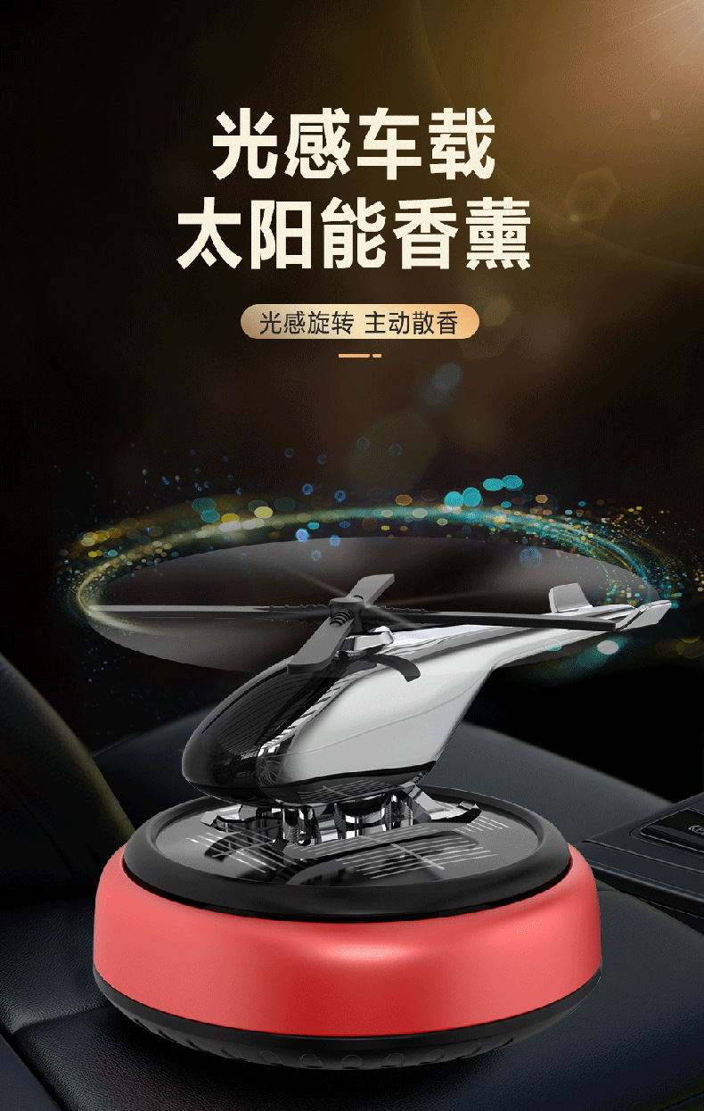 车载香薰摆件太阳能直升飞机香水光能旋转自动散香汽车用品