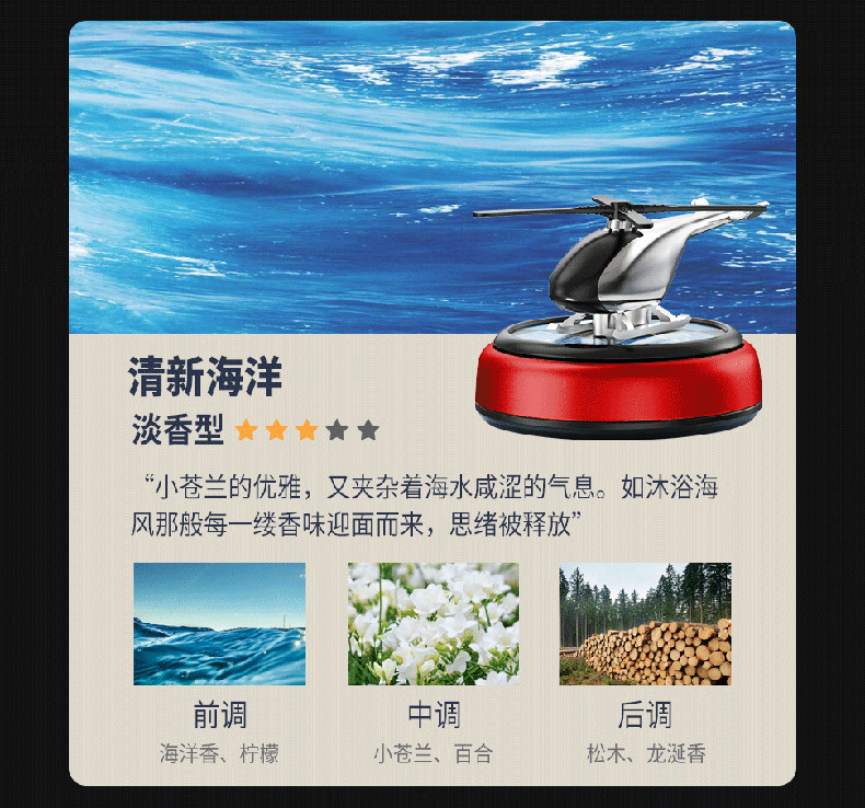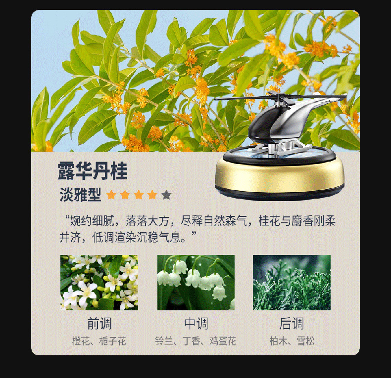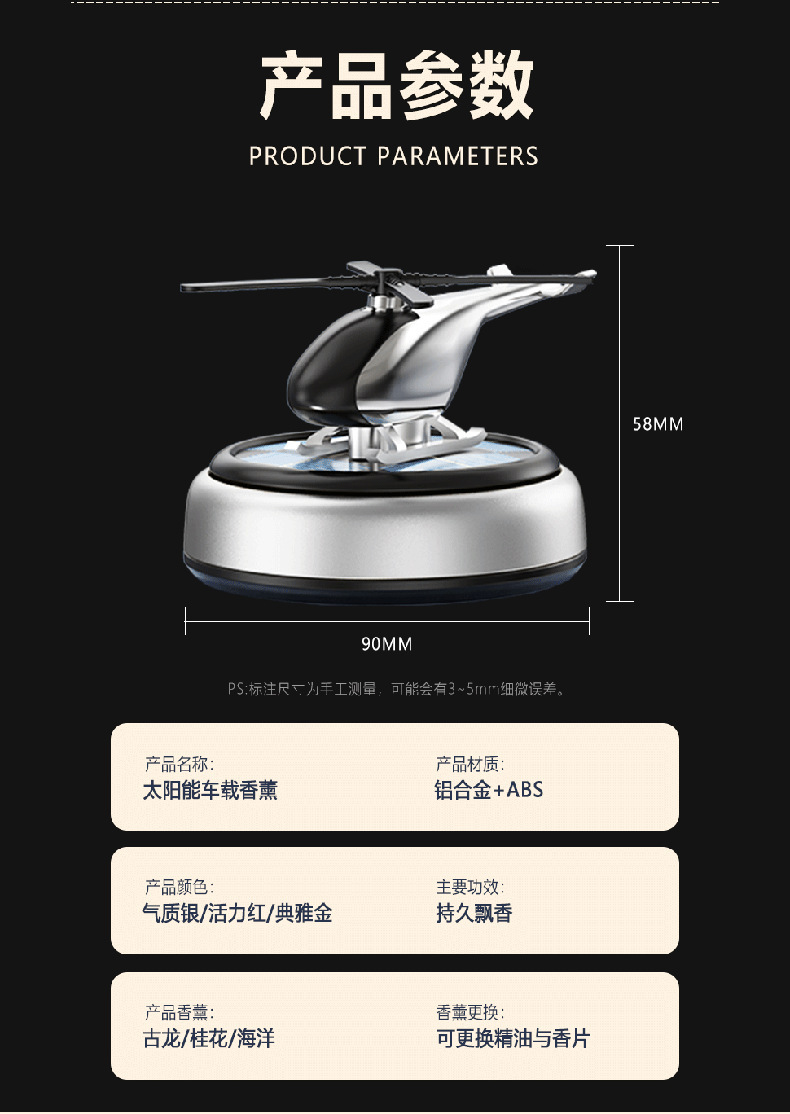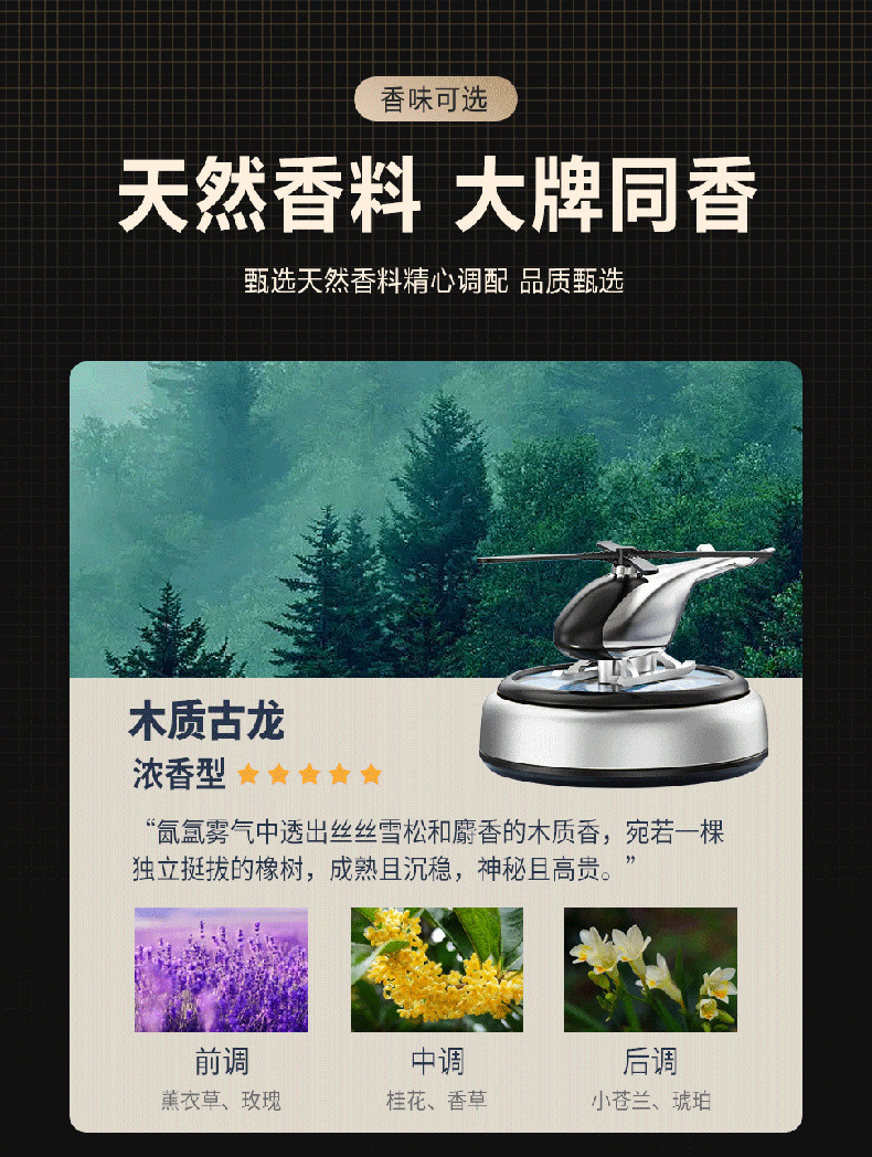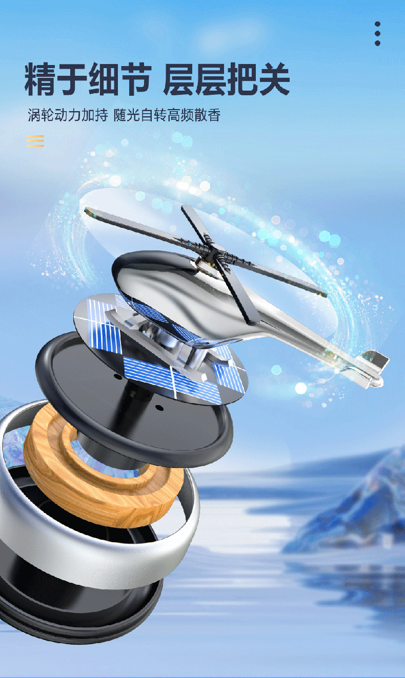 车载香薰摆件太阳能直升飞机香水光能旋转自动散香汽车用品