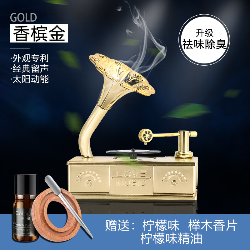 车载香水太阳能唱片机车内饰品摆件车上留声机太阳能旋转香水摆件
