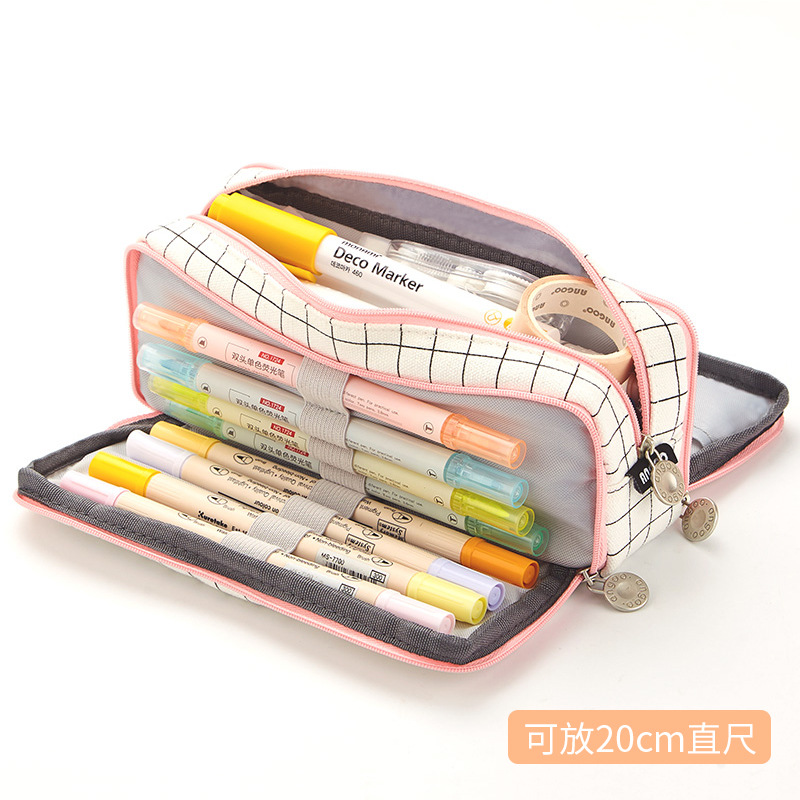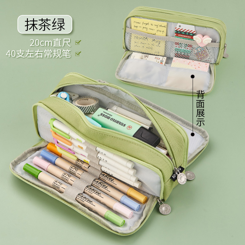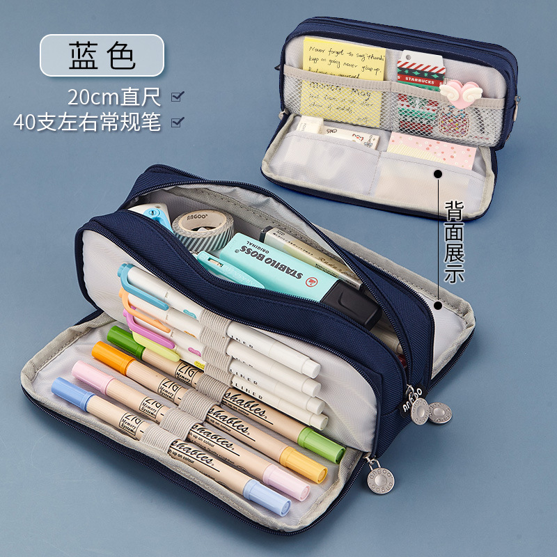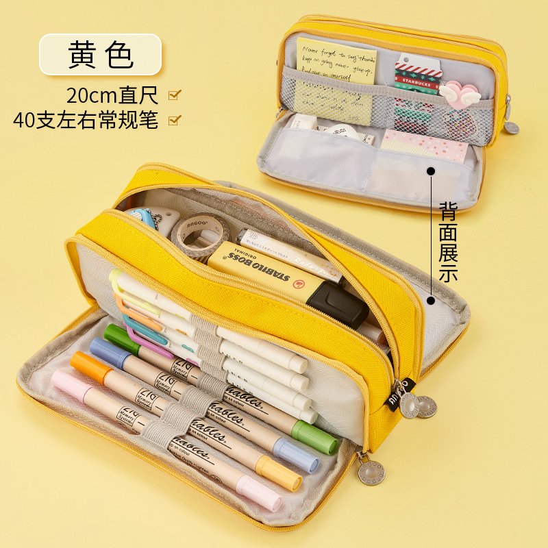 安蔻日系韩大容量笔袋纯色马卡龙双开窗多功能初高中生铅笔文具盒