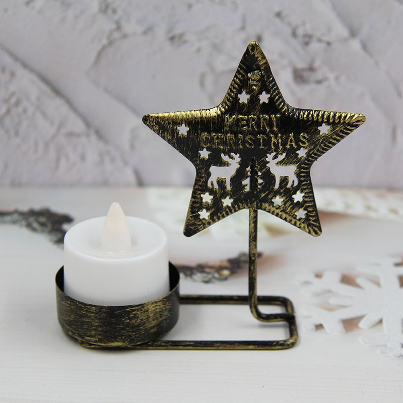 北欧金属复古铁艺烛台摆件圣诞桌面装饰浪漫婚礼蜡烛杯直播道具