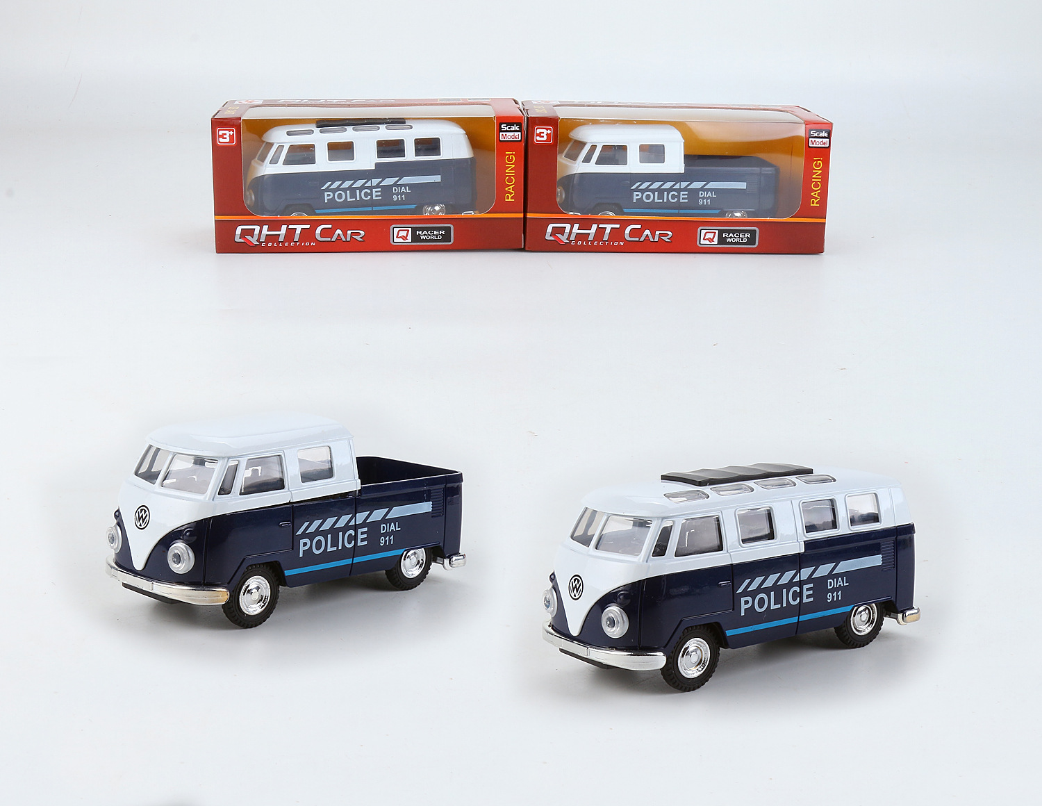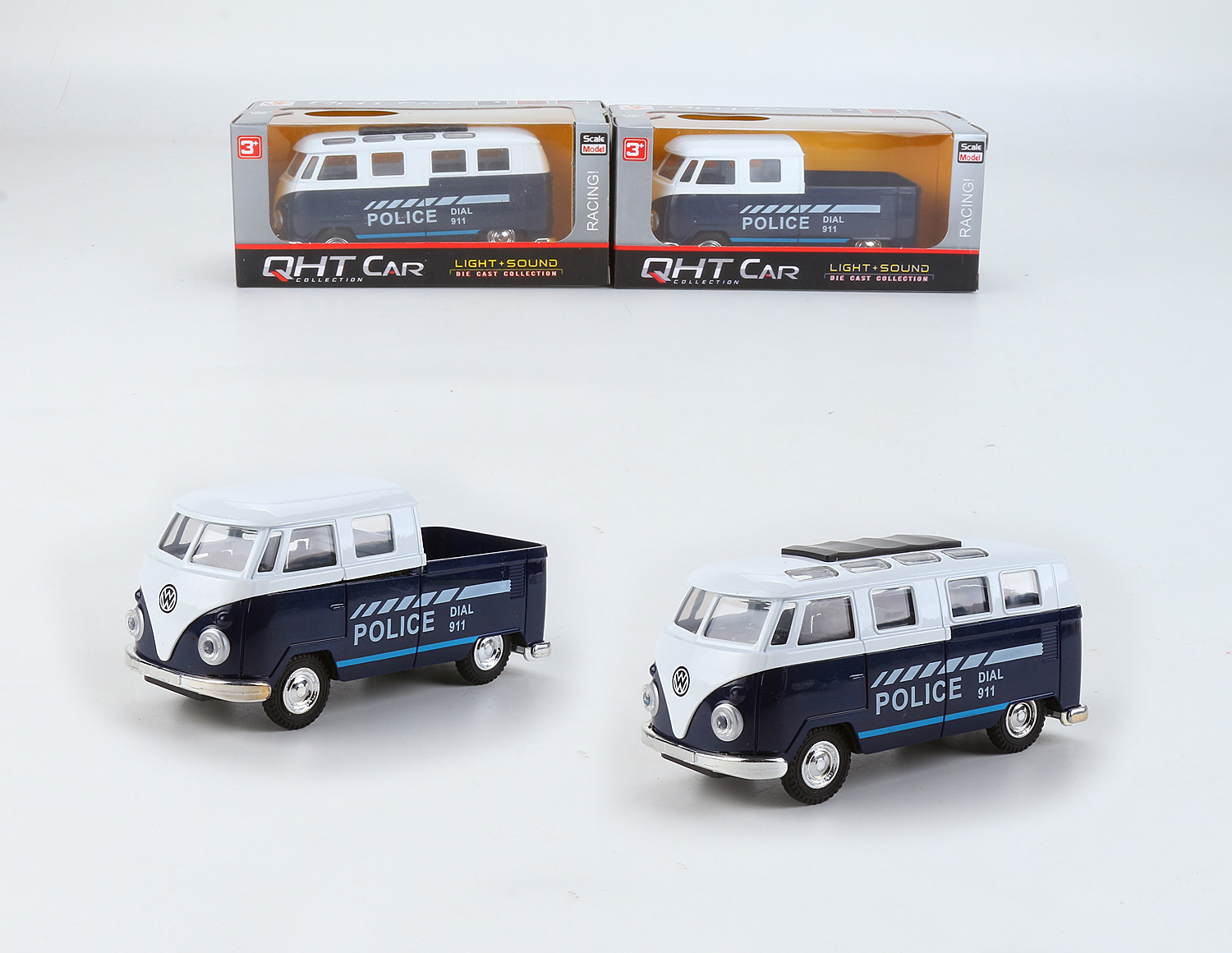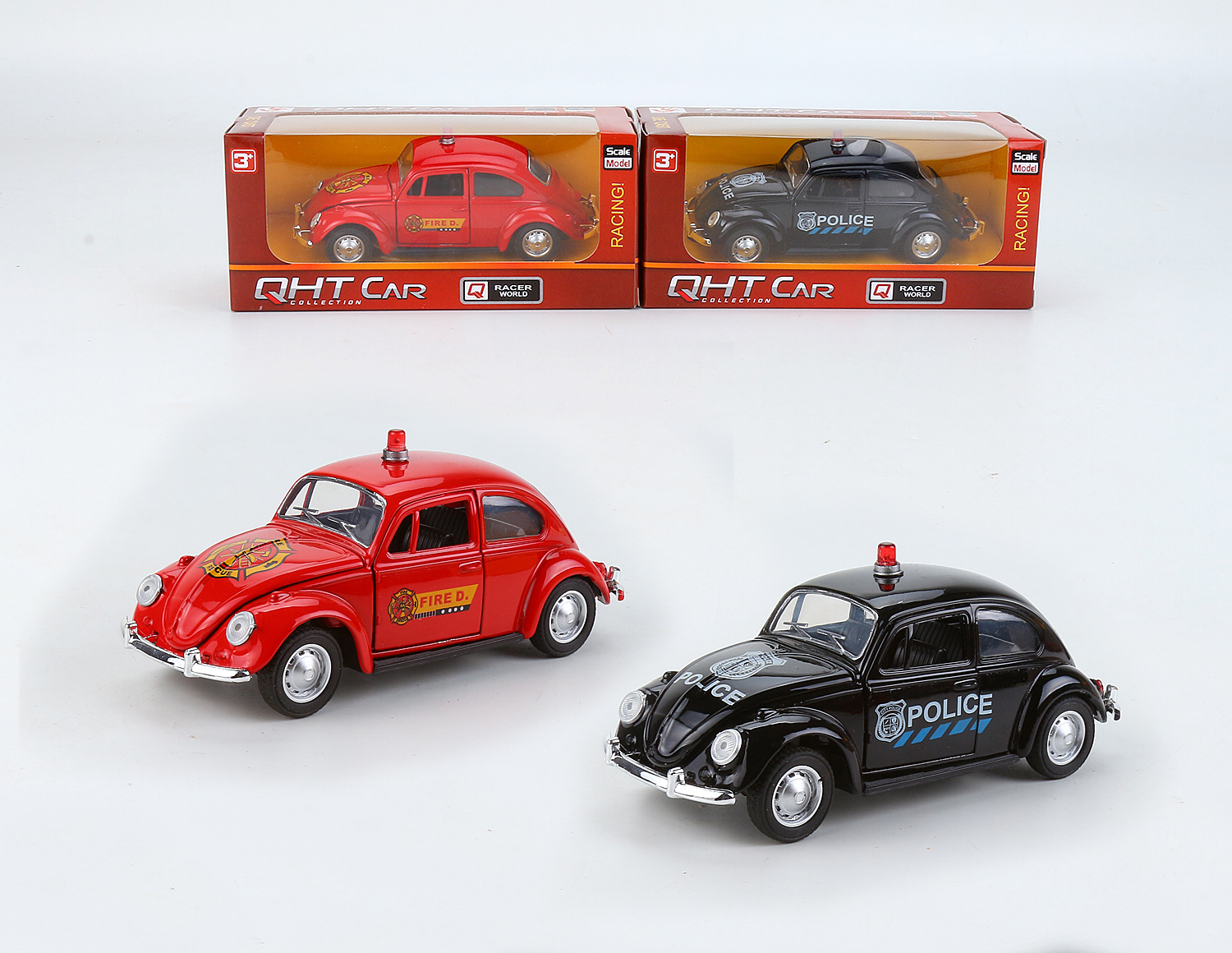 1:32大众车款合金玩具回力警车门可开前内灯带声光合金模型男孩