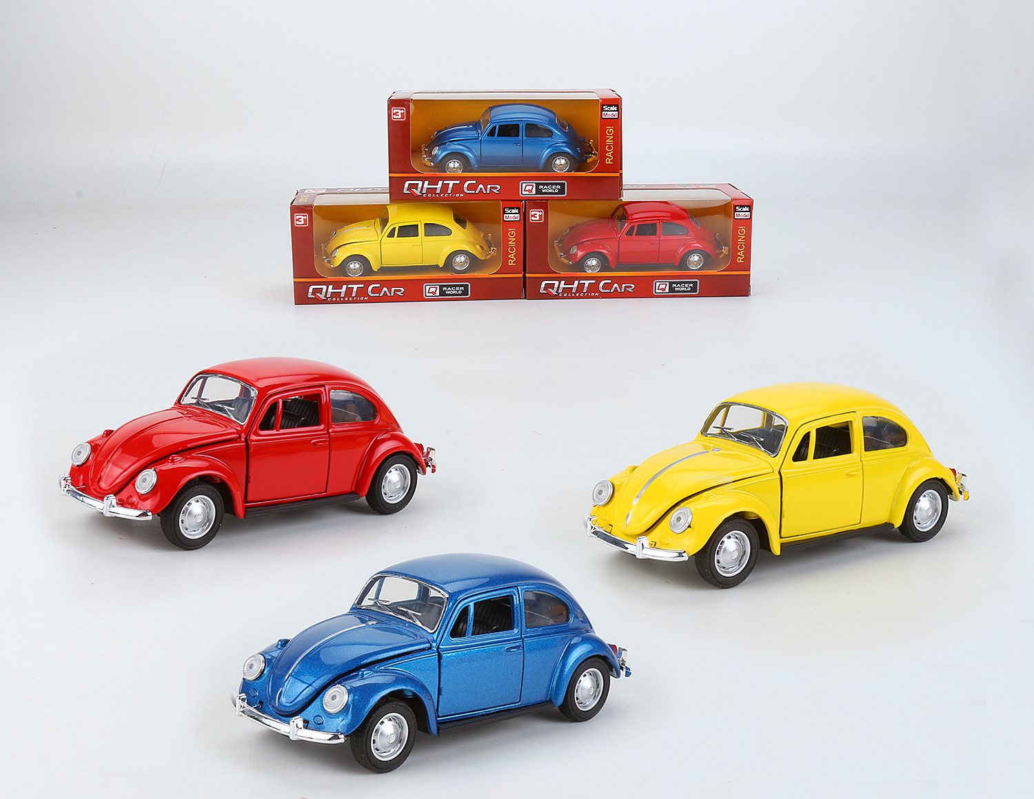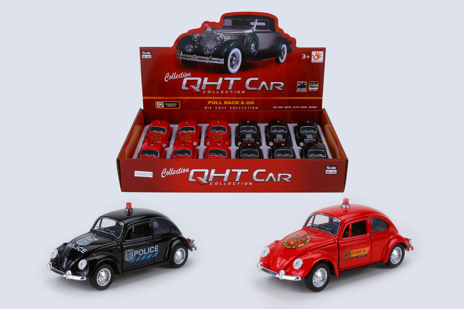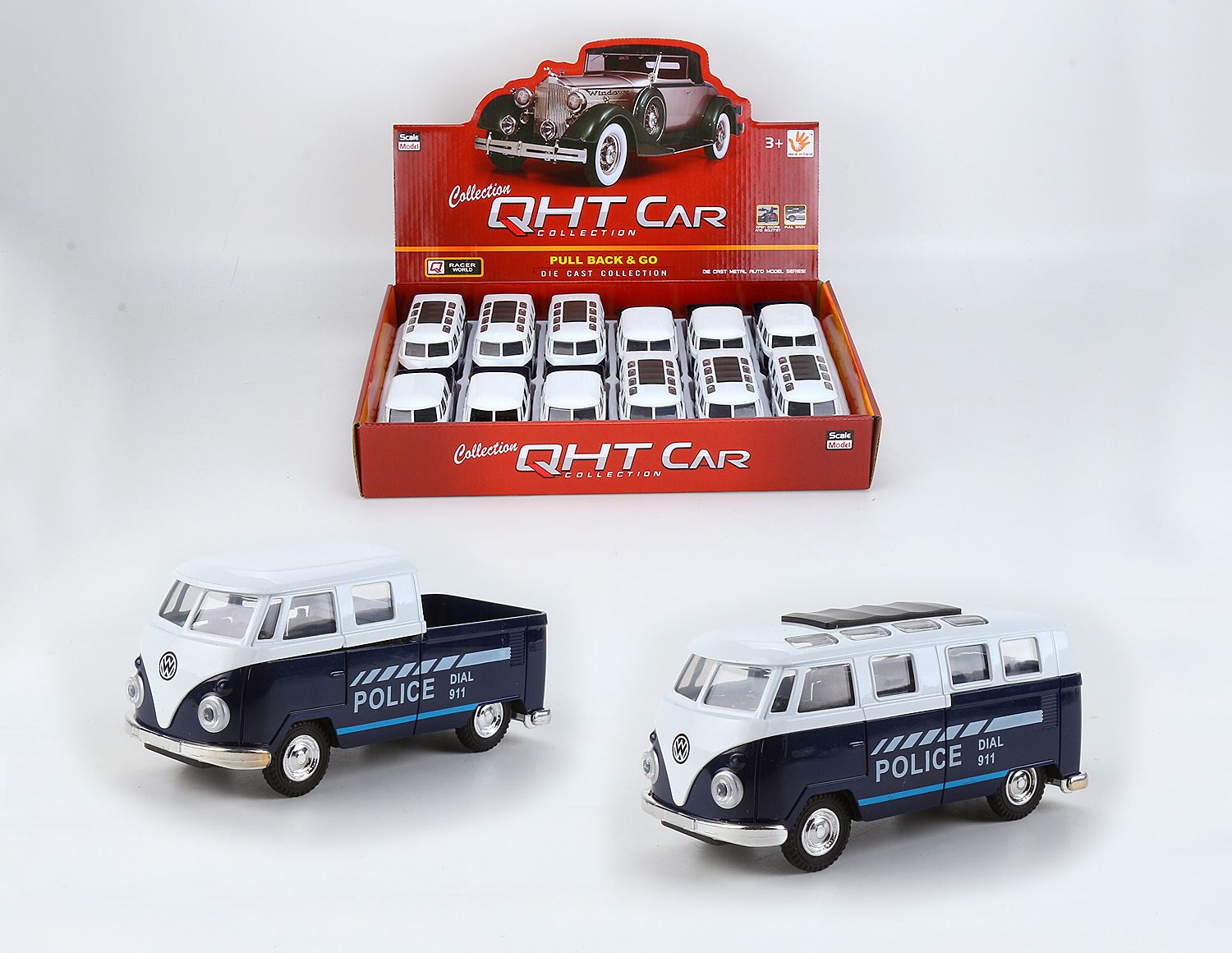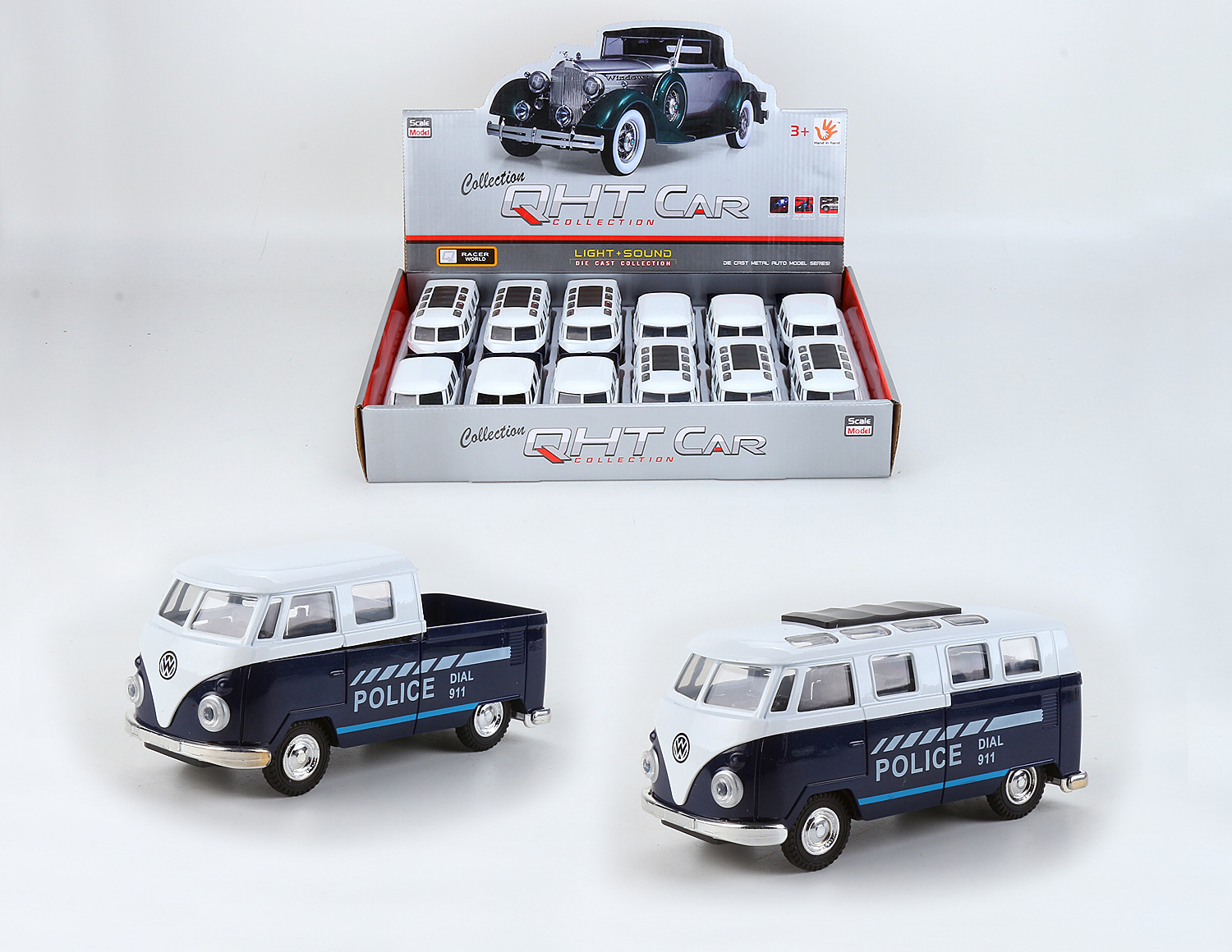 1:32大众车款合金玩具回力警车门可开前内灯带声光合金模型男孩