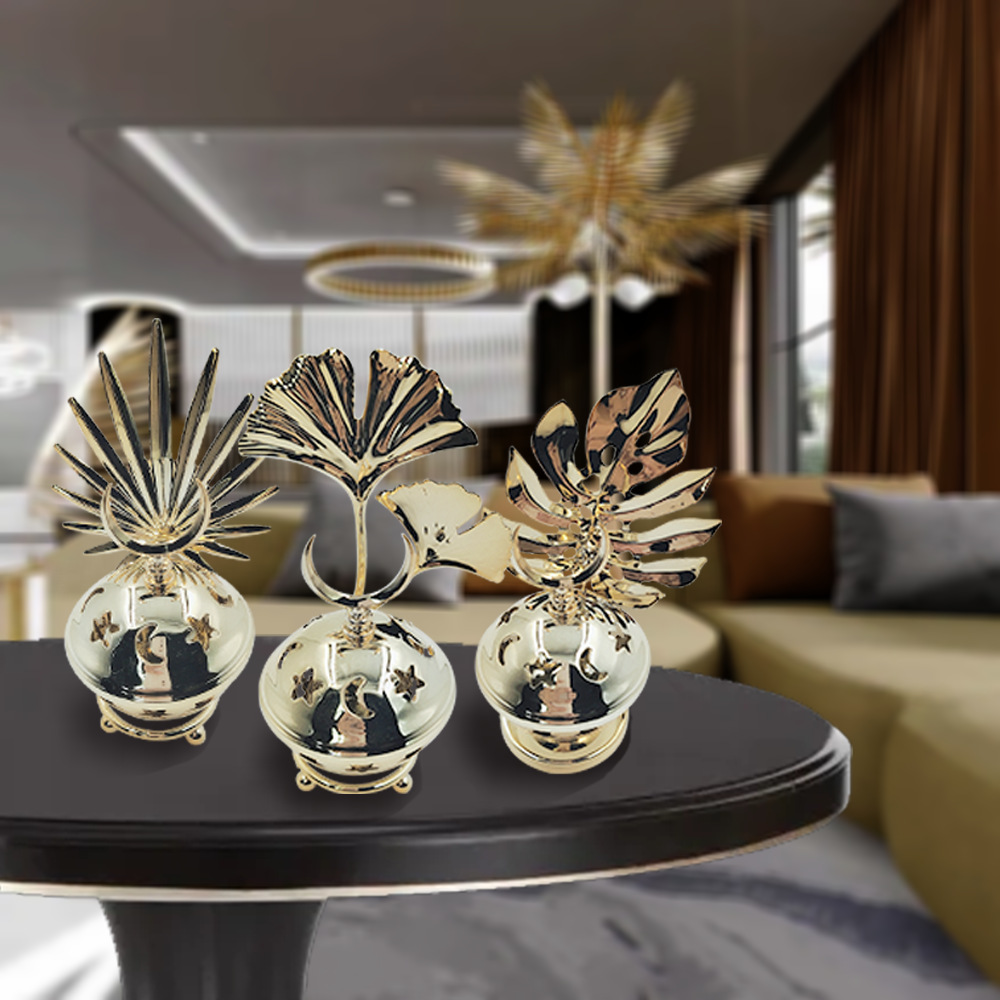 跨境圣诞树叶Arab中东阿拉伯星月形状家居摆件两用金属烛台香薰炉