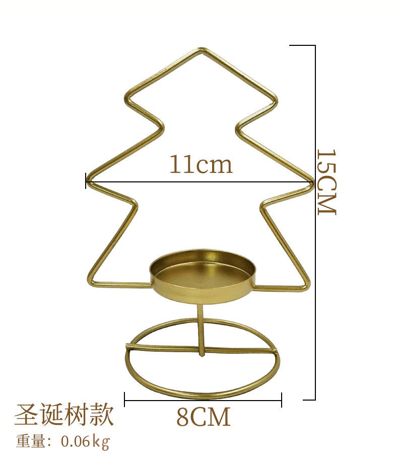 跨境新品Christmas家居装饰摆件工艺品金色圣诞树星星铁艺烛台