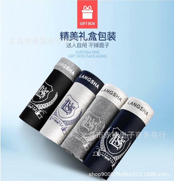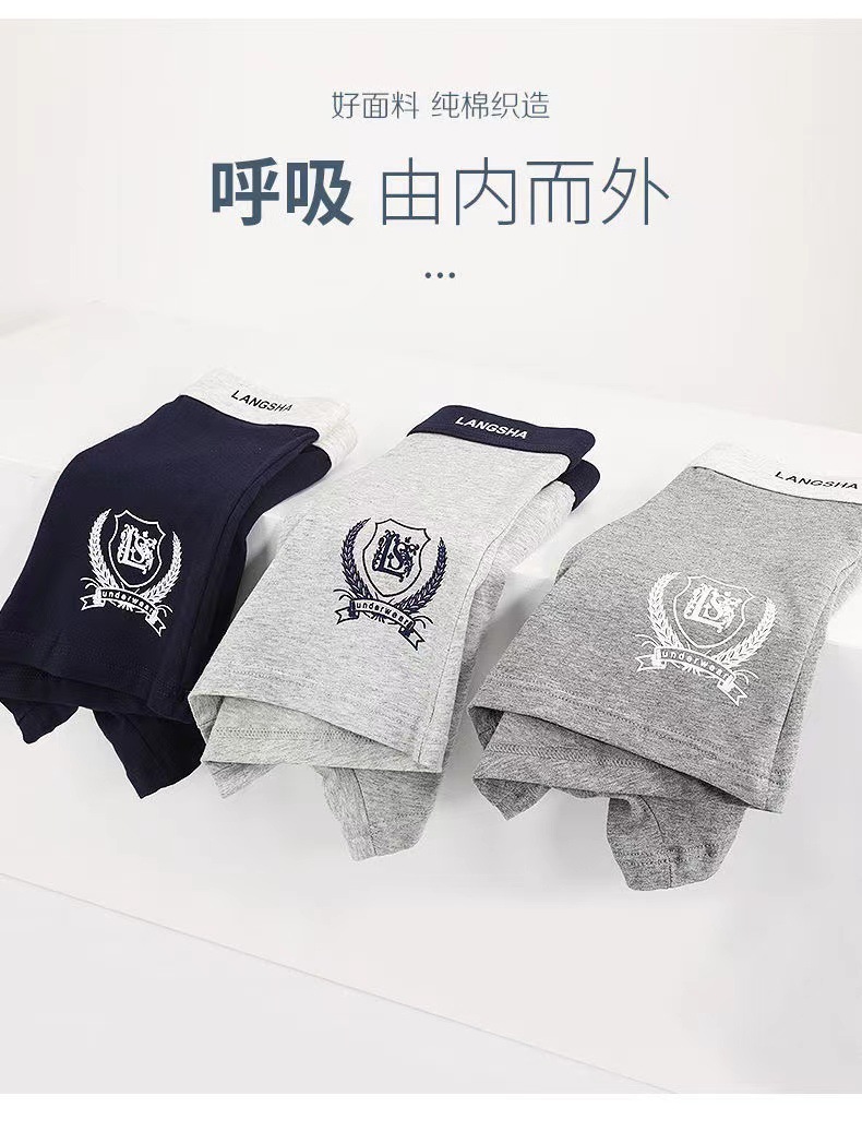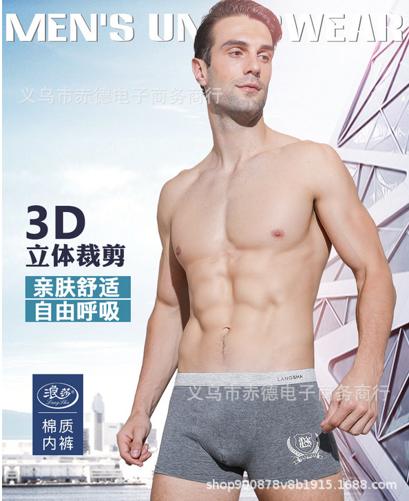 正品浪莎中腰男士透气平角裤弹力棉亲肤两条装短裤工厂 货源