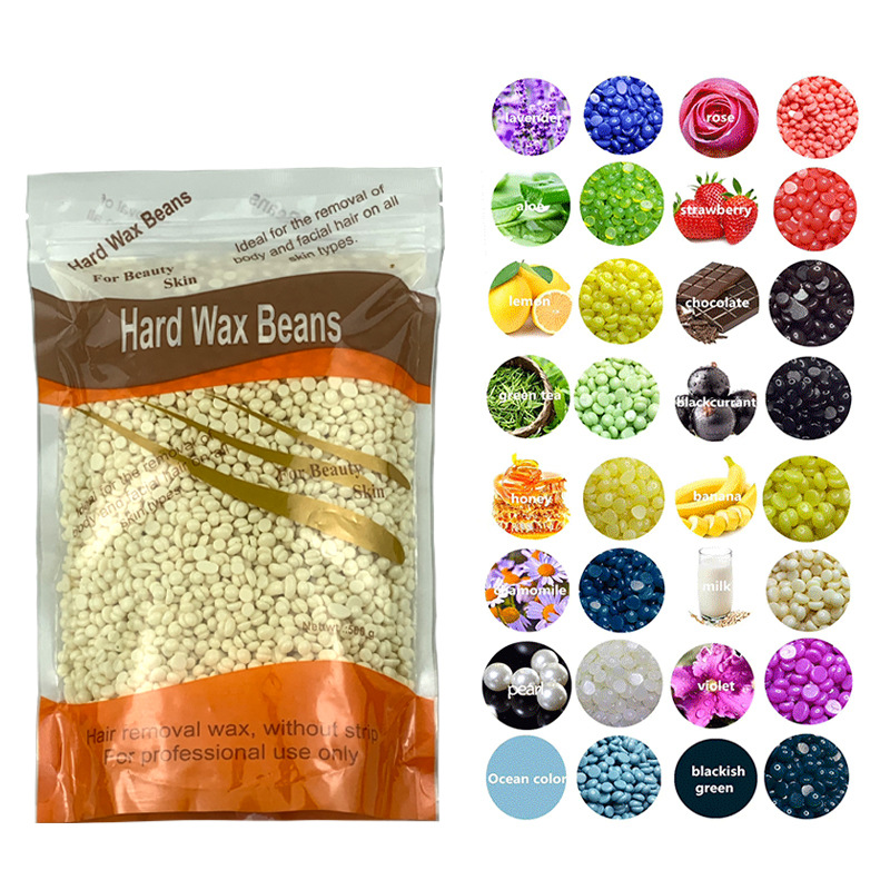 跨境供应500g脱毛蜡豆免纸固体蜡疗粒17味袋装热蜡hard wax beans