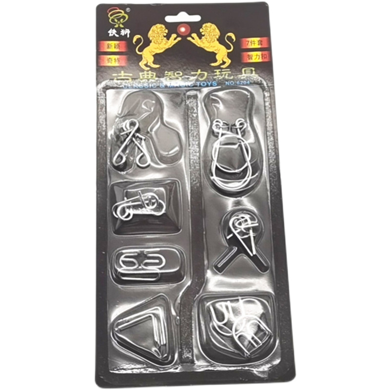 智力七件套,古典智力玩具,有M扣, 鸳鸯扣,反手扣, 相思环,金蝉脱壳等七件组合而成。 一人多人均可使用,物美价廉,老少皆宜。 环环相扣,拒绝暴力!再现古典神奇,开拓大脑思维 空间! 七件,件件不同,款款有趣,不仅是个人、家庭,甚至是旅游、聚会顶好的解迷工具!