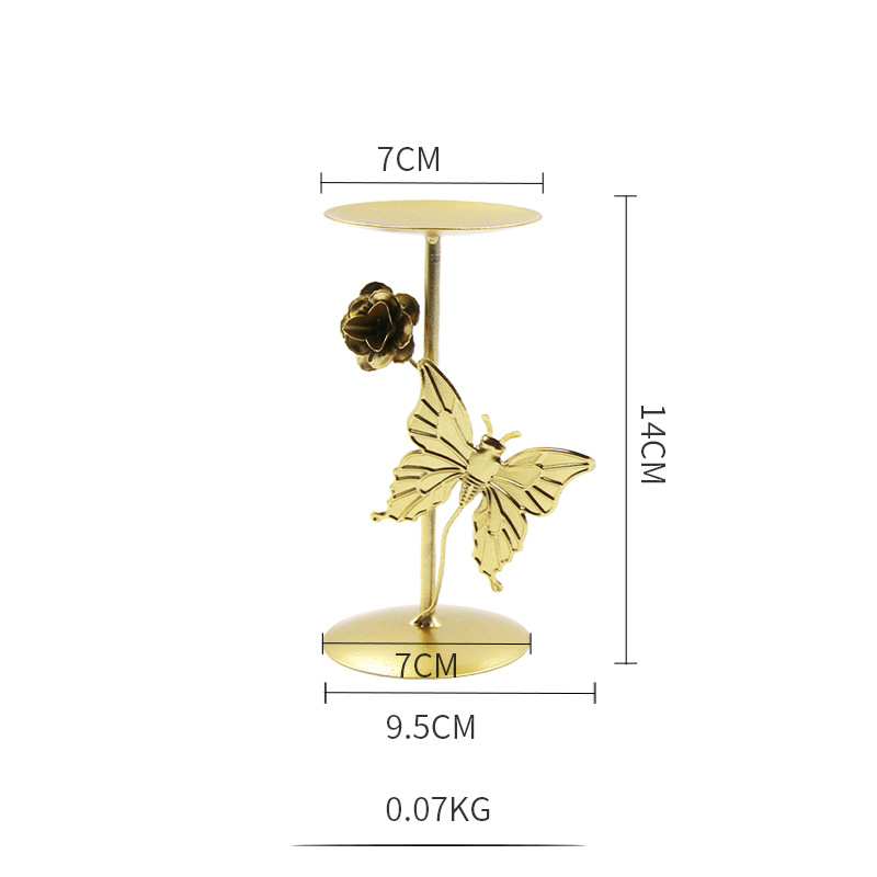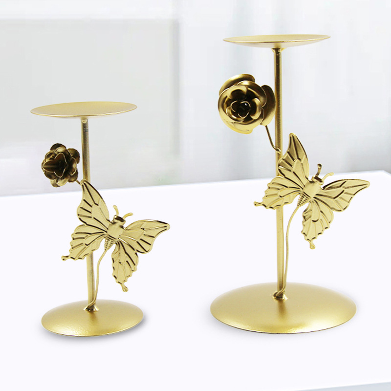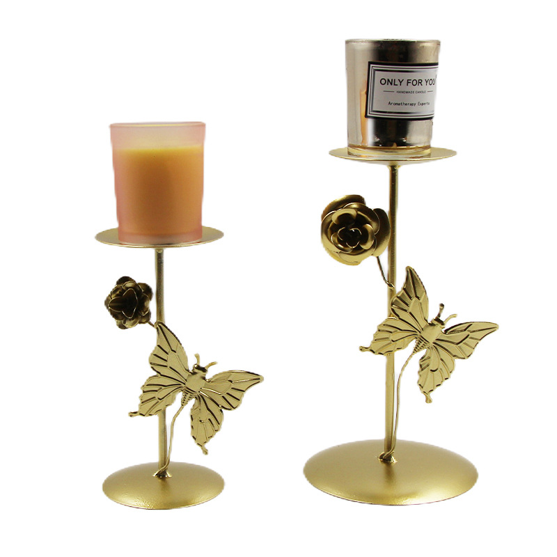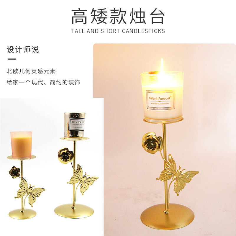 批发铁艺金色精致烛台摆件蝴蝶花朵桌面装饰香薰台浪漫晚餐婚庆道