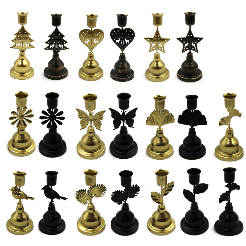 欧式复古铁艺烛台摆件圣诞桌面装饰浪漫婚礼蜡烛杯直播道具