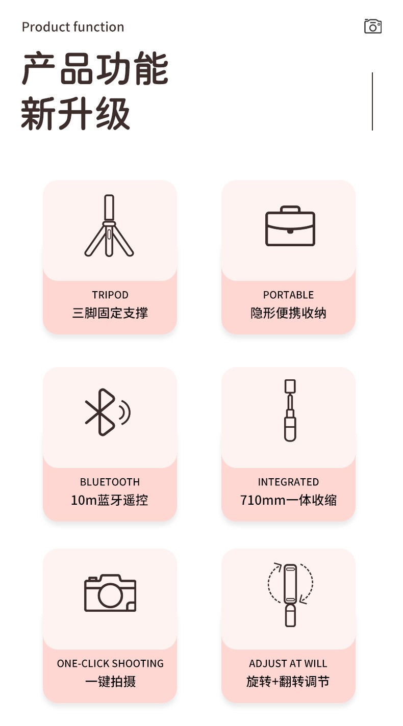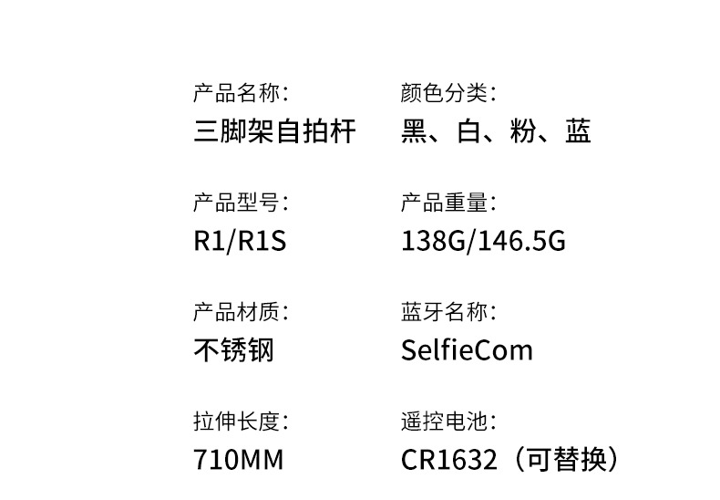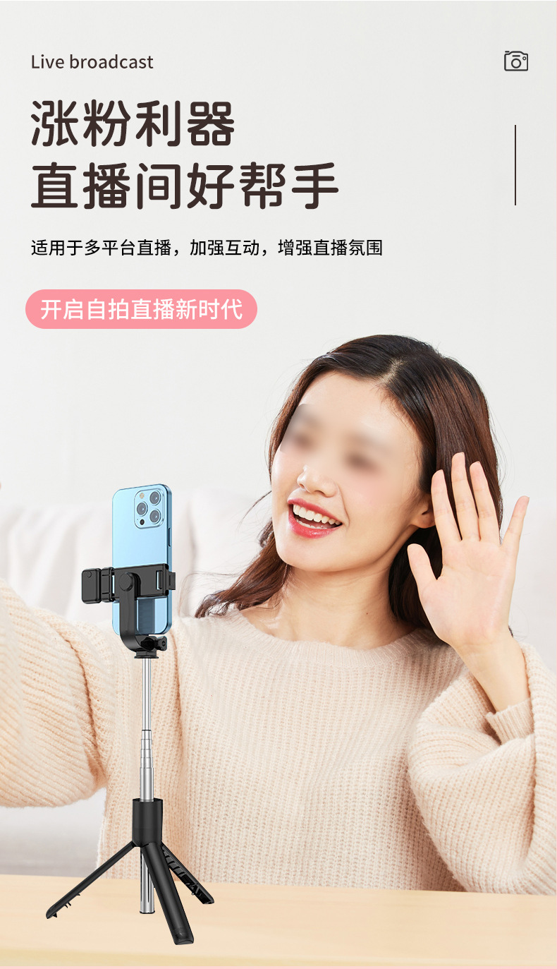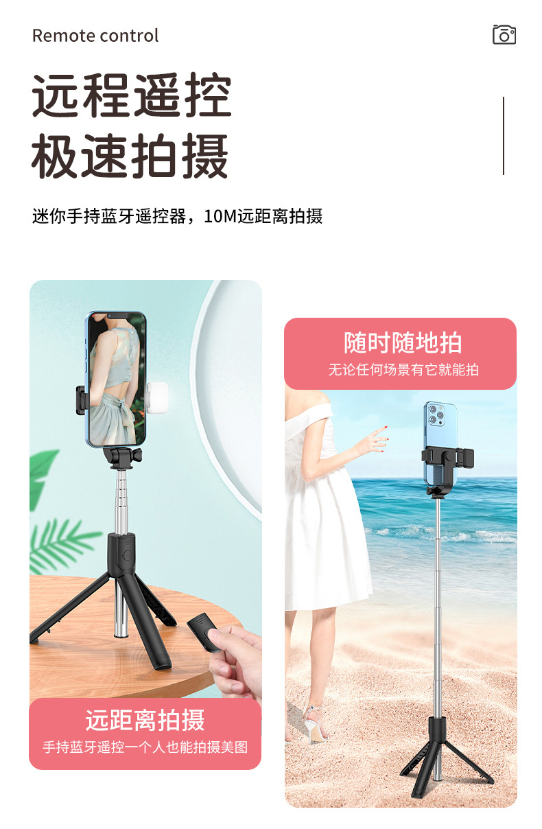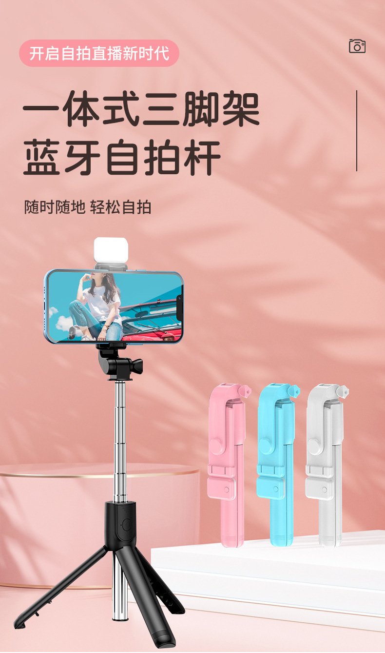 R1s手机自拍杆蓝牙补光灯直播摄影便携一体式伸缩三脚支架自拍杆