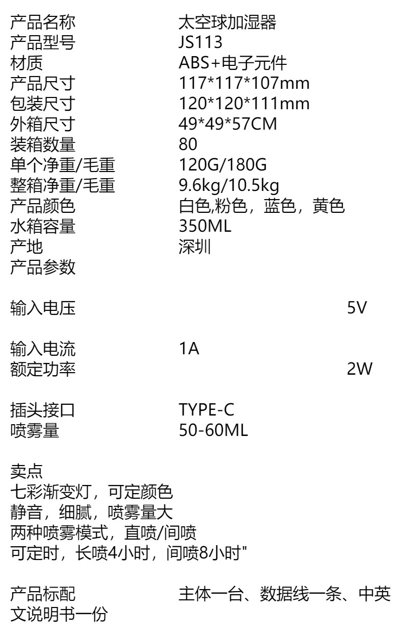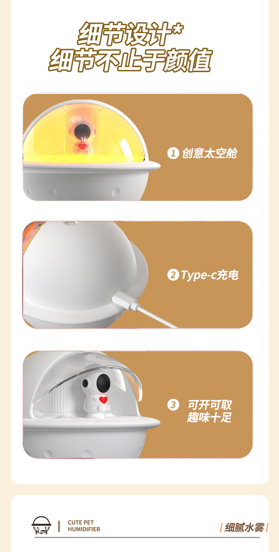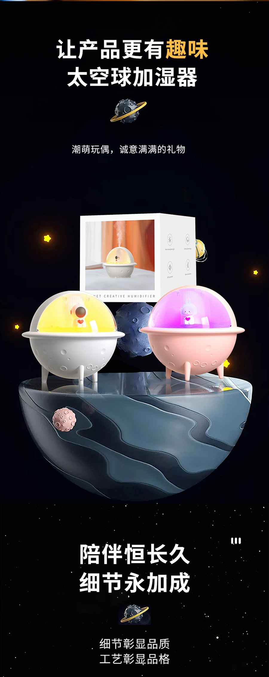 JS113宇航员加湿器太空球补水喷雾大雾量静音加湿雾化器