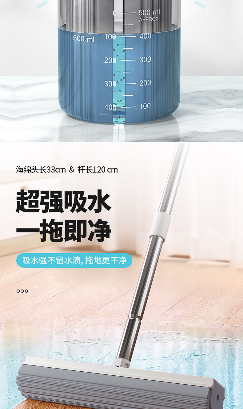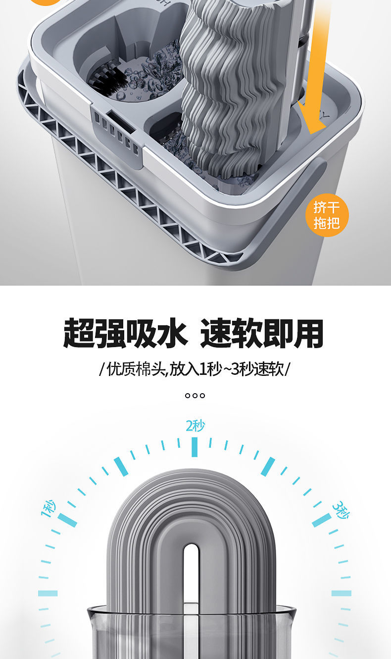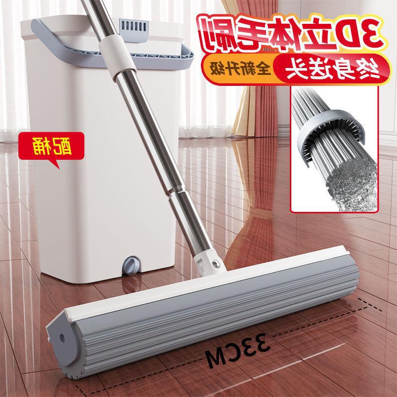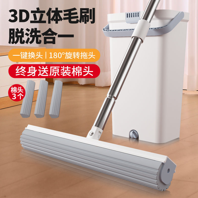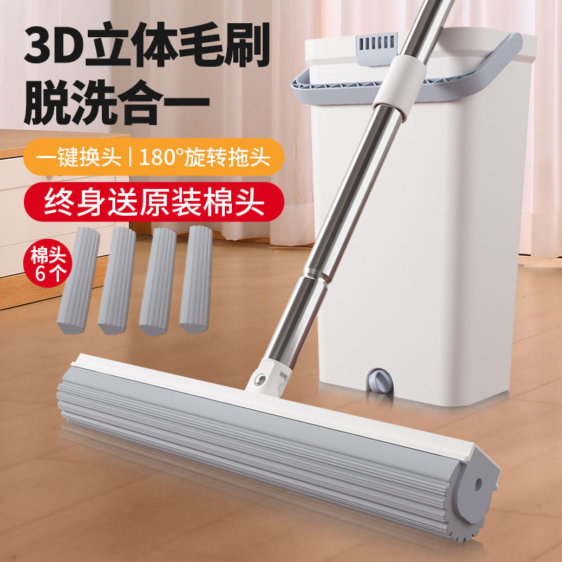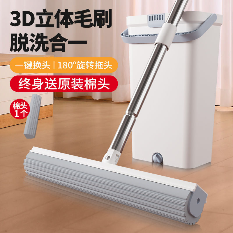 家用免手洗海绵拖把胶棉拖把超吸水拖布桶套装懒人海绵拖平板拖把