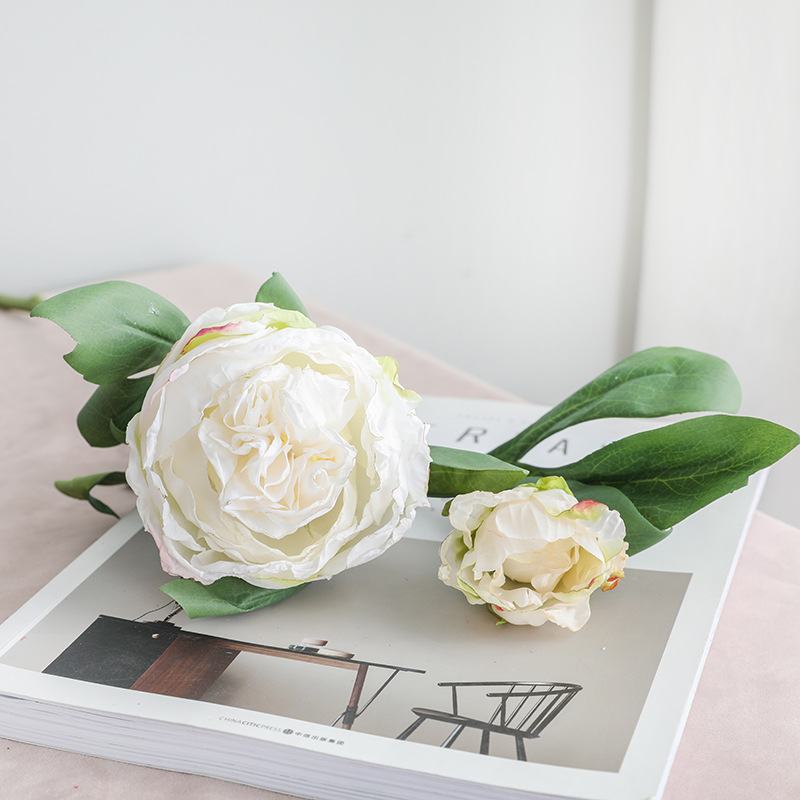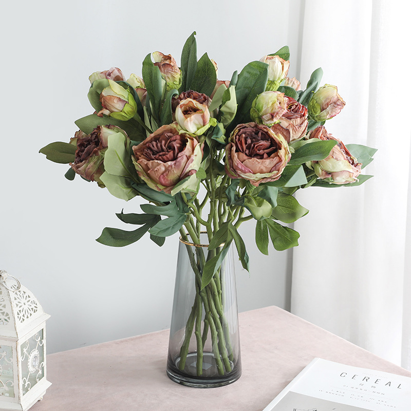 亚马逊货源客厅家居装饰仿真假花花束 新娘手捧仿真花2头复古牡丹