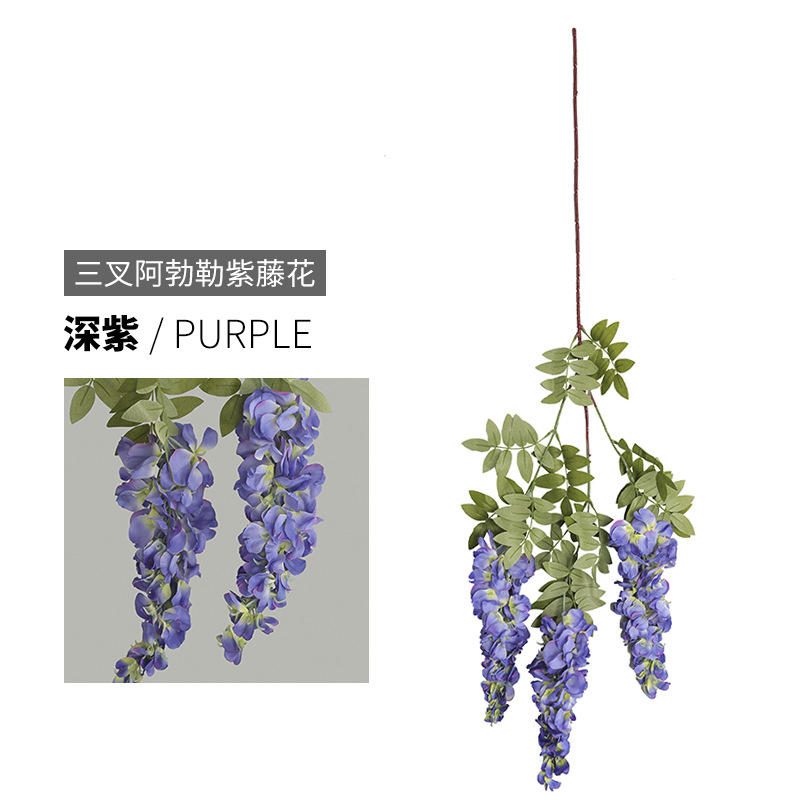 婚礼吊顶布置仿真三叉阿勃勒紫藤花 网红花墙装饰仿真假花花藤