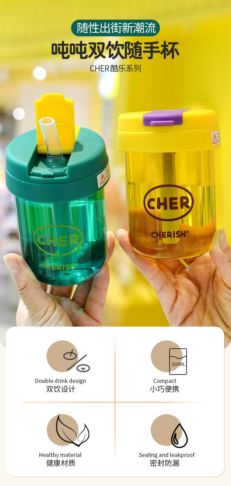 儿童迷你水杯学生男女塑料吸管杯便携吸管杯双饮随手杯吨吨杯