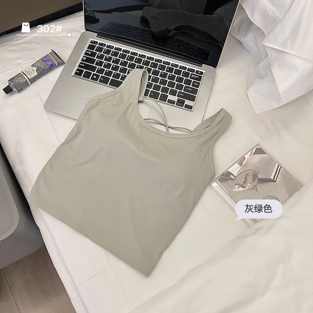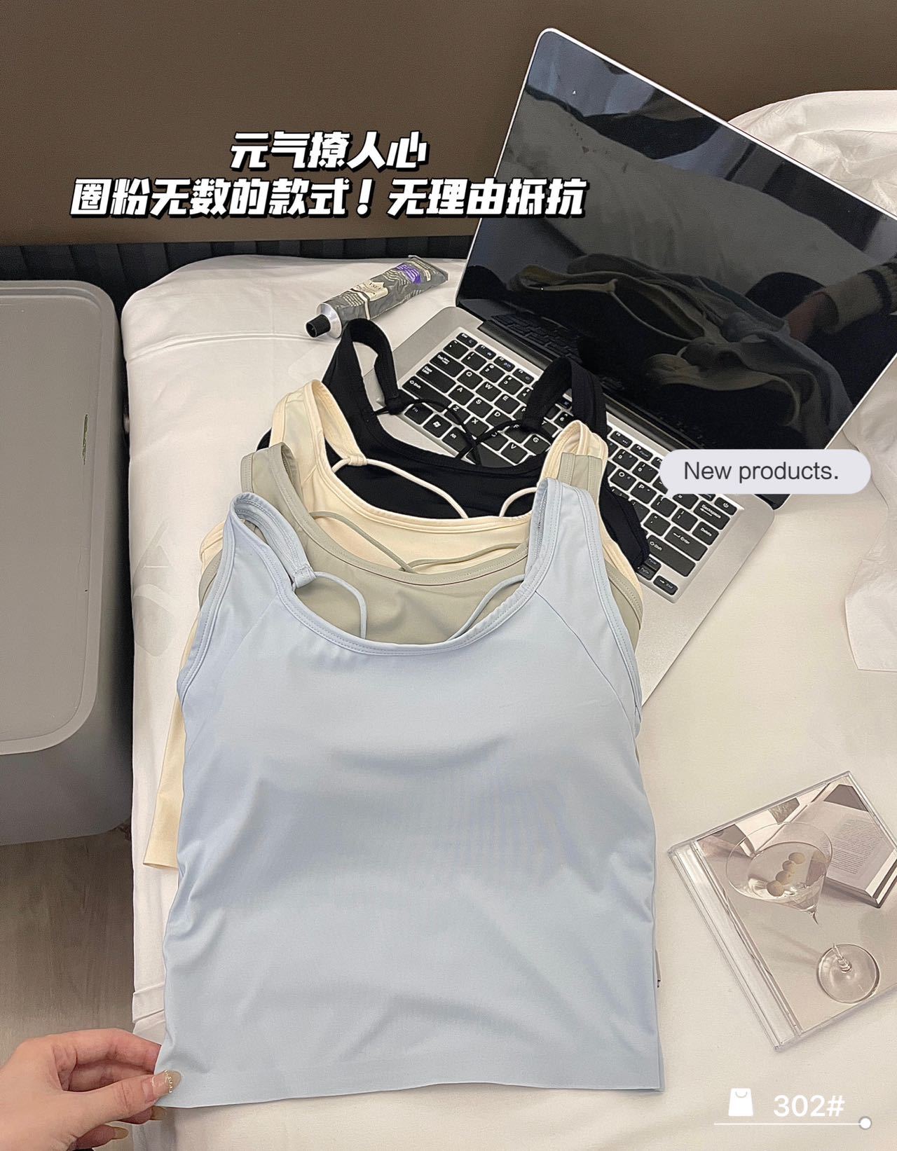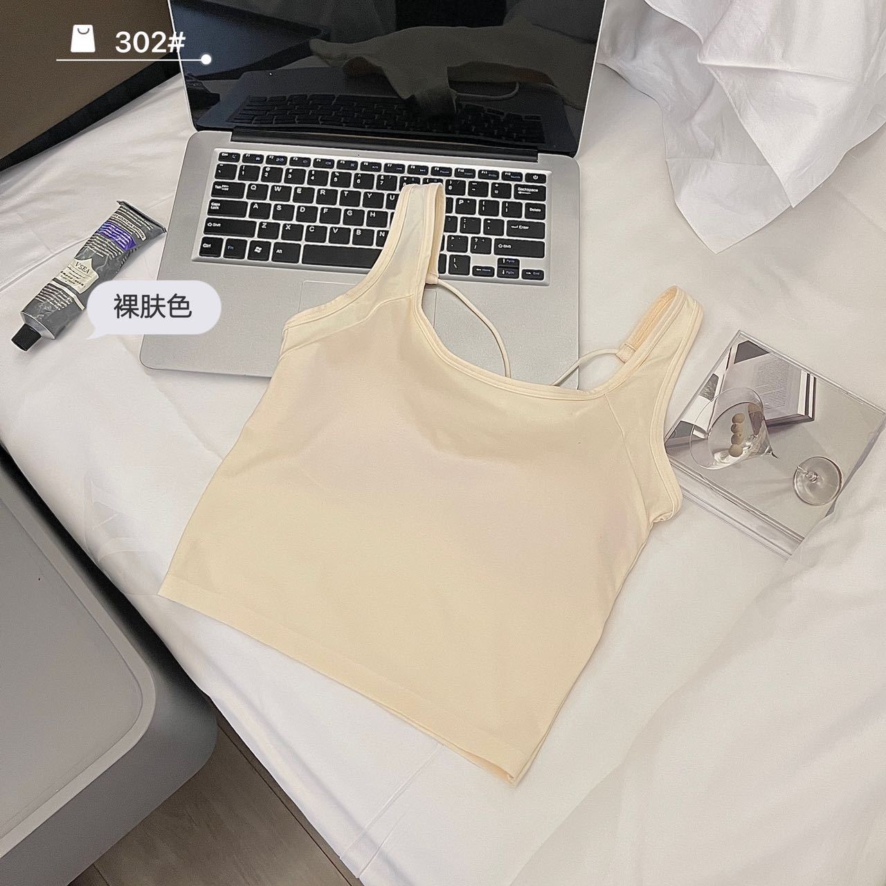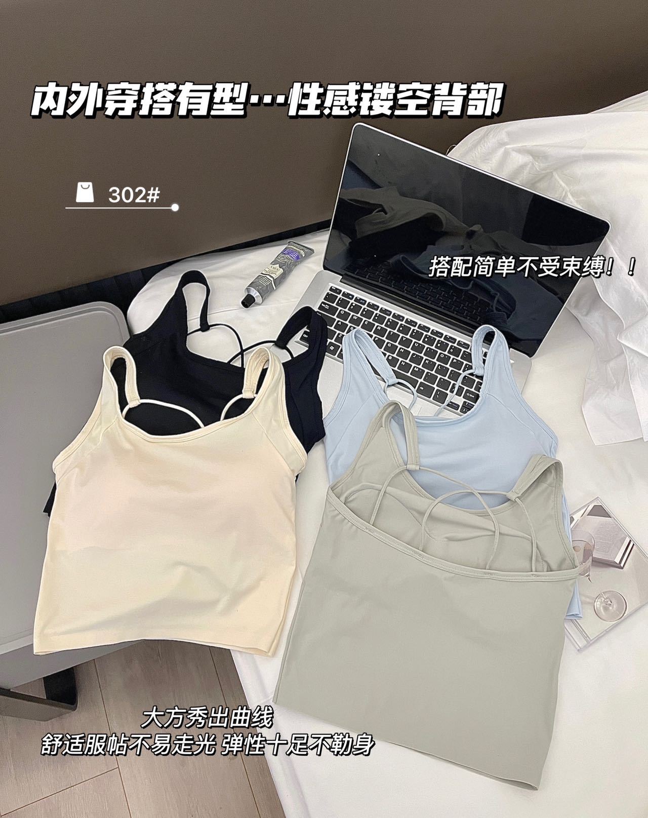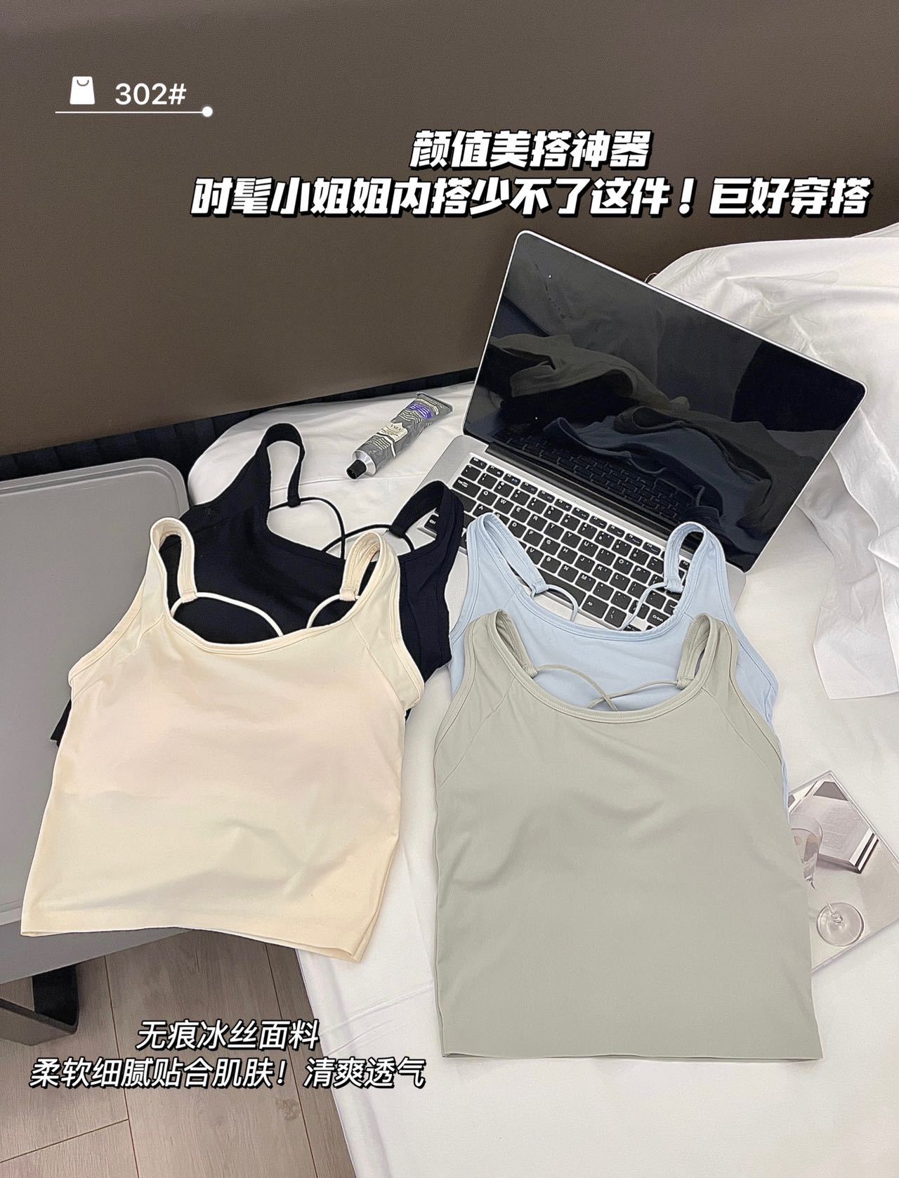 夏季冰丝纯色吊带女内搭薄款圆领交叉美背背心带胸垫一体固定杯