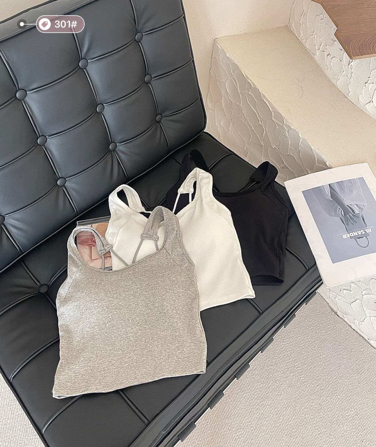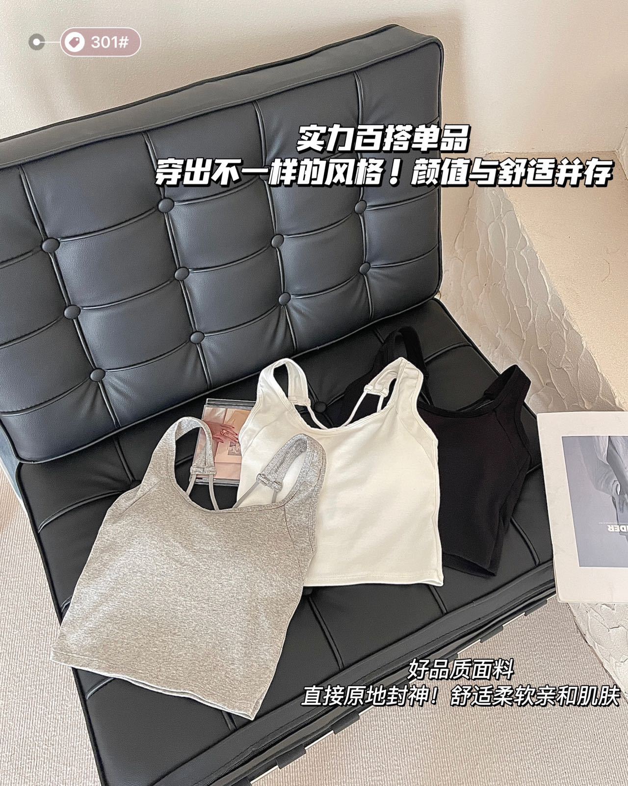 夏季纯棉吊带背心女内搭带胸垫一体性感美背后背交叉肩带运动内衣