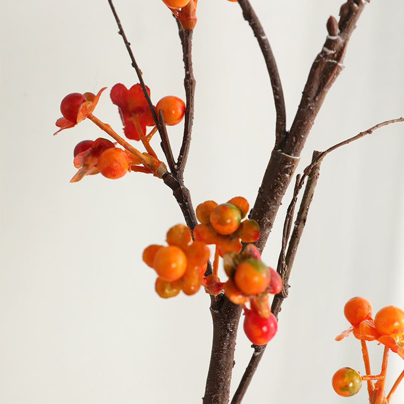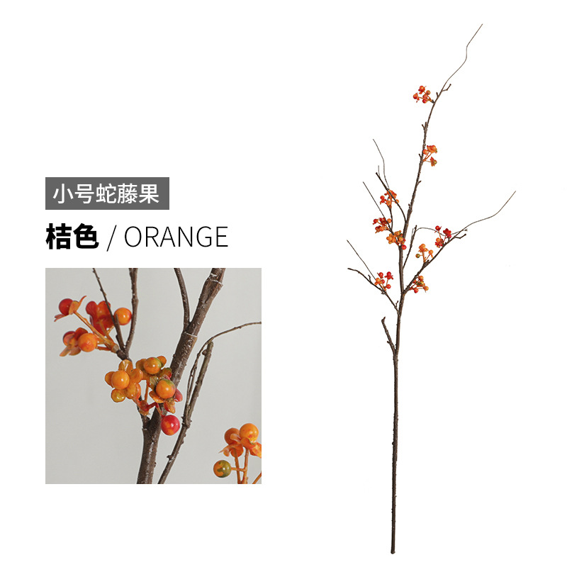 禅意茶室线条插花蛇藤果 室内家居摆件假花发财果南蛇藤