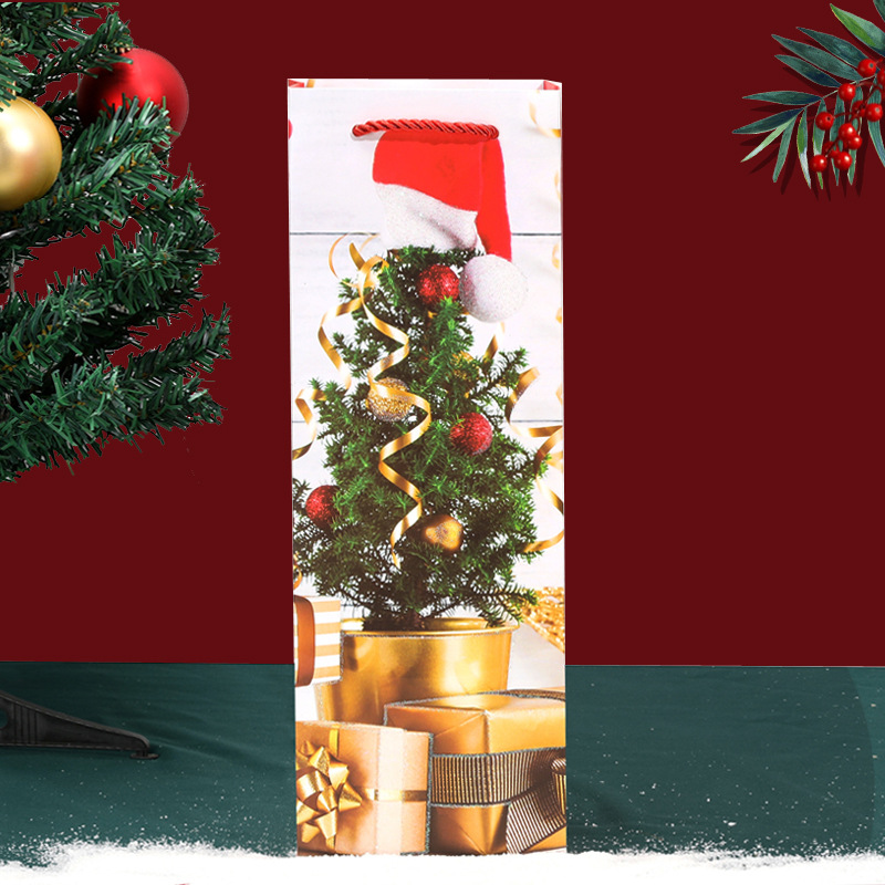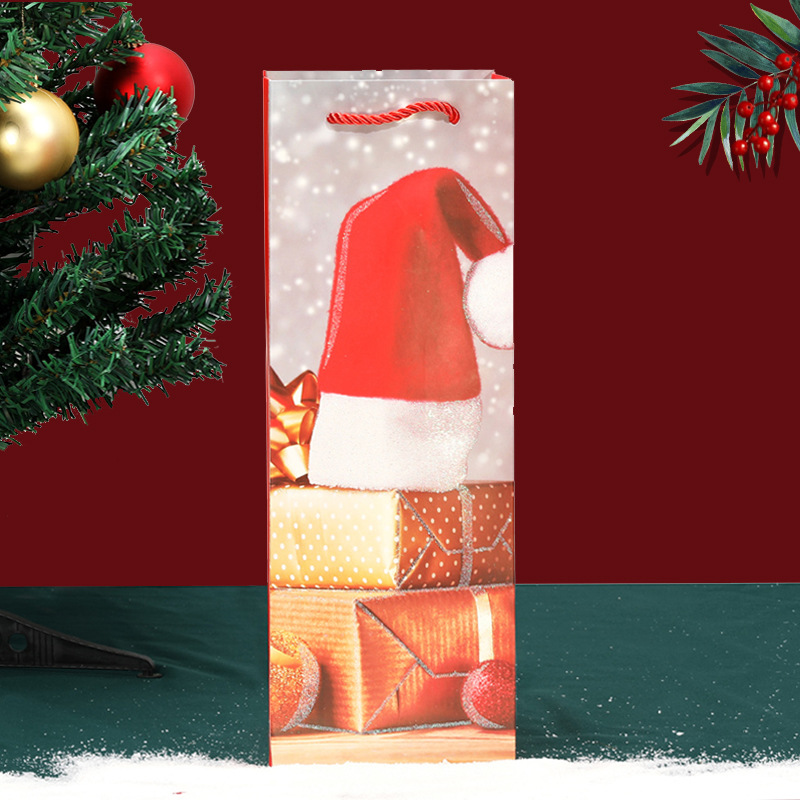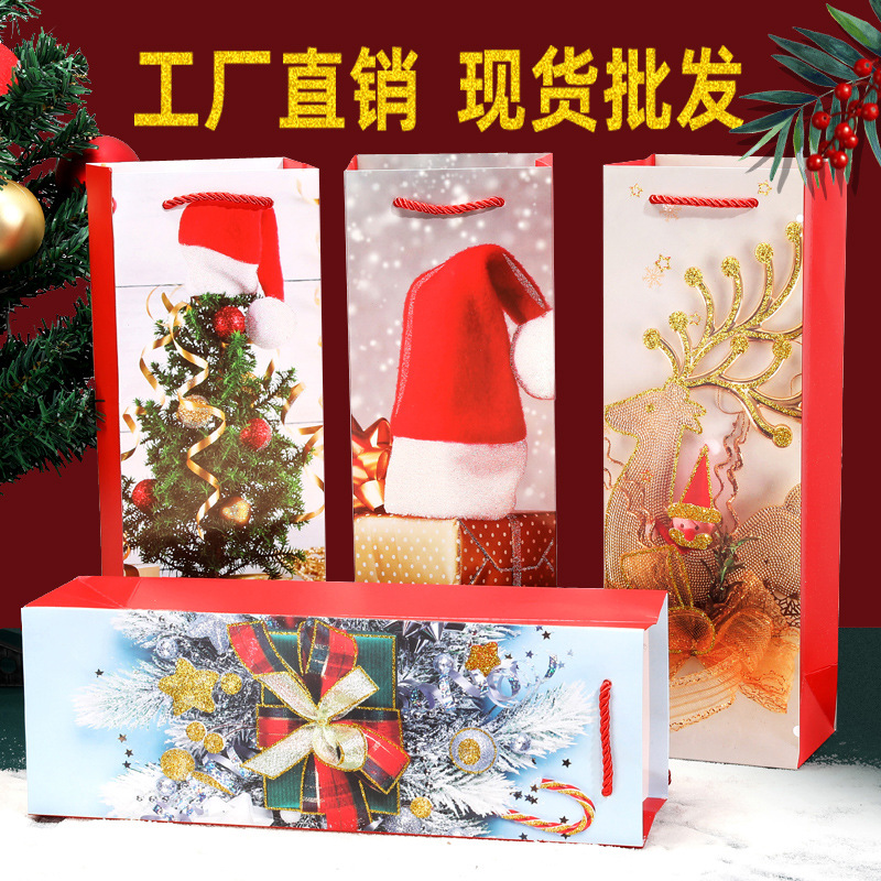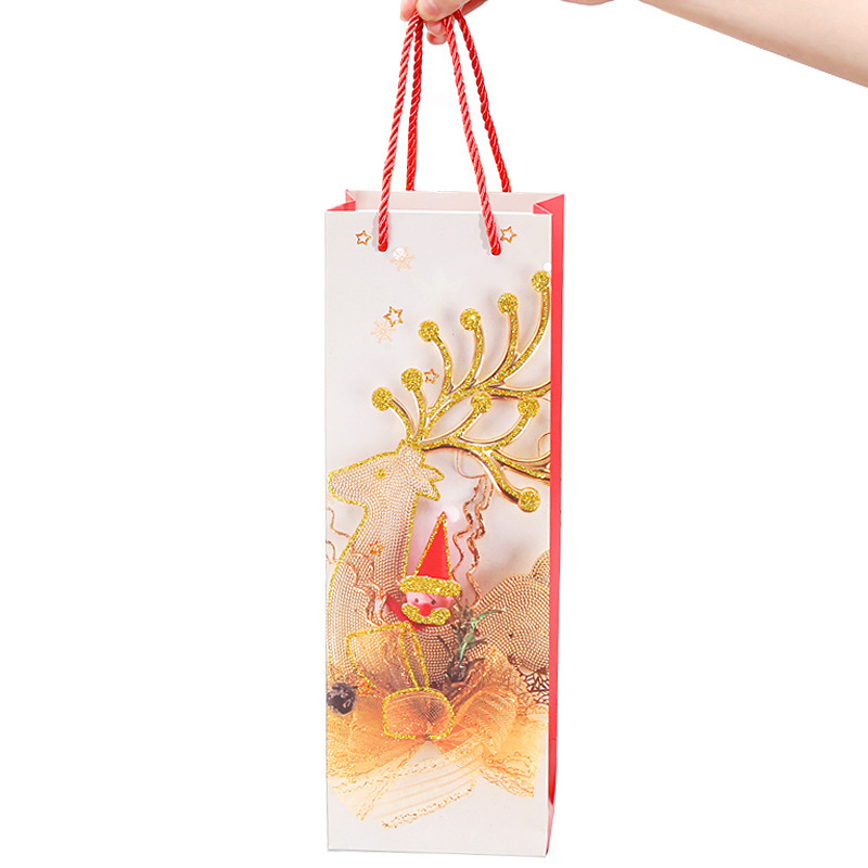 现货圣诞节新款红酒纸袋手提袋白卡纸包装袋烫金葡萄酒礼品袋批发