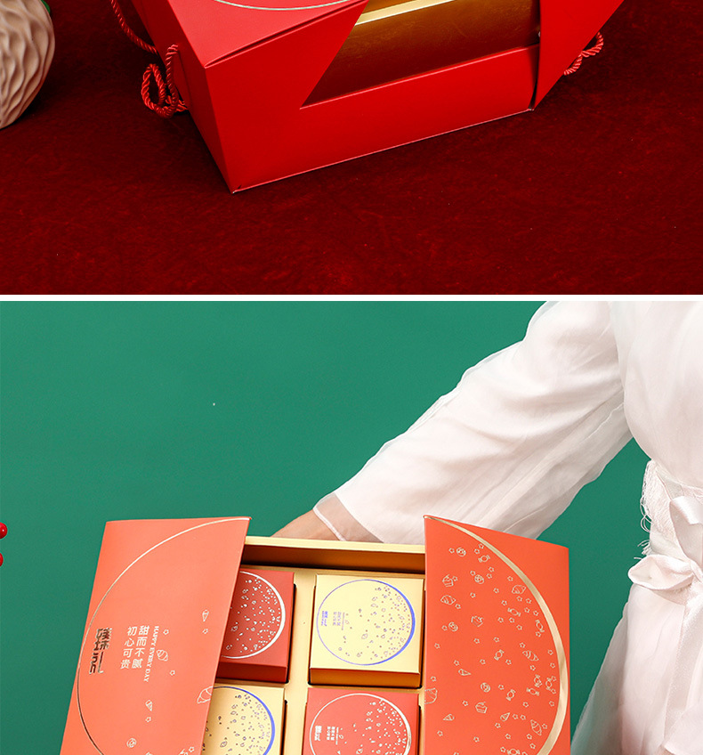 2023中秋冰皮月饼盒高档双层手提8粒高级礼品包装盒现货批发