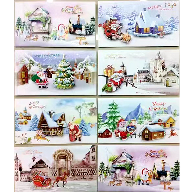 厂家现货圣诞贺卡跨境商务简约立体欧美外贸折叠新年祝福贺卡
