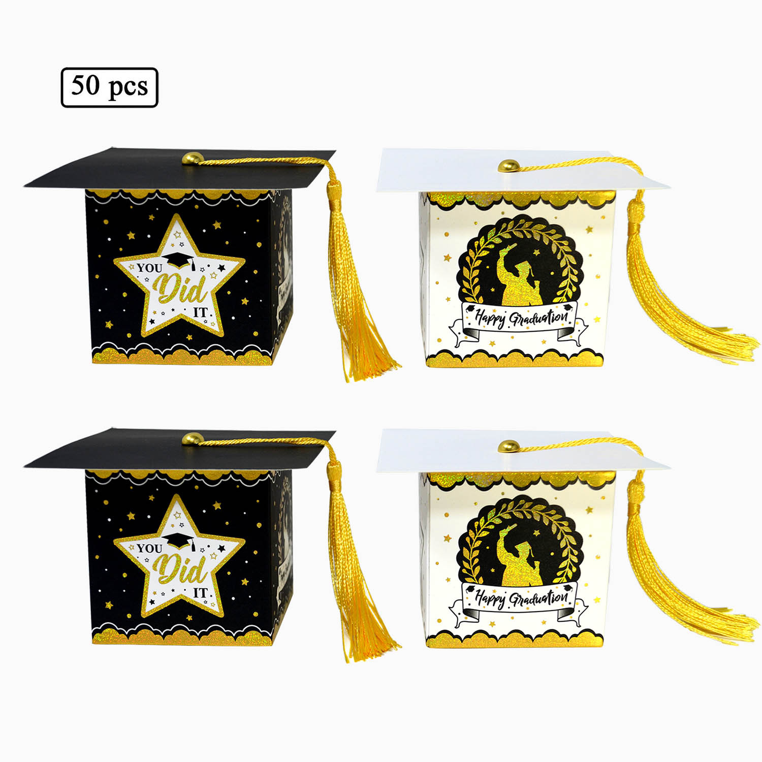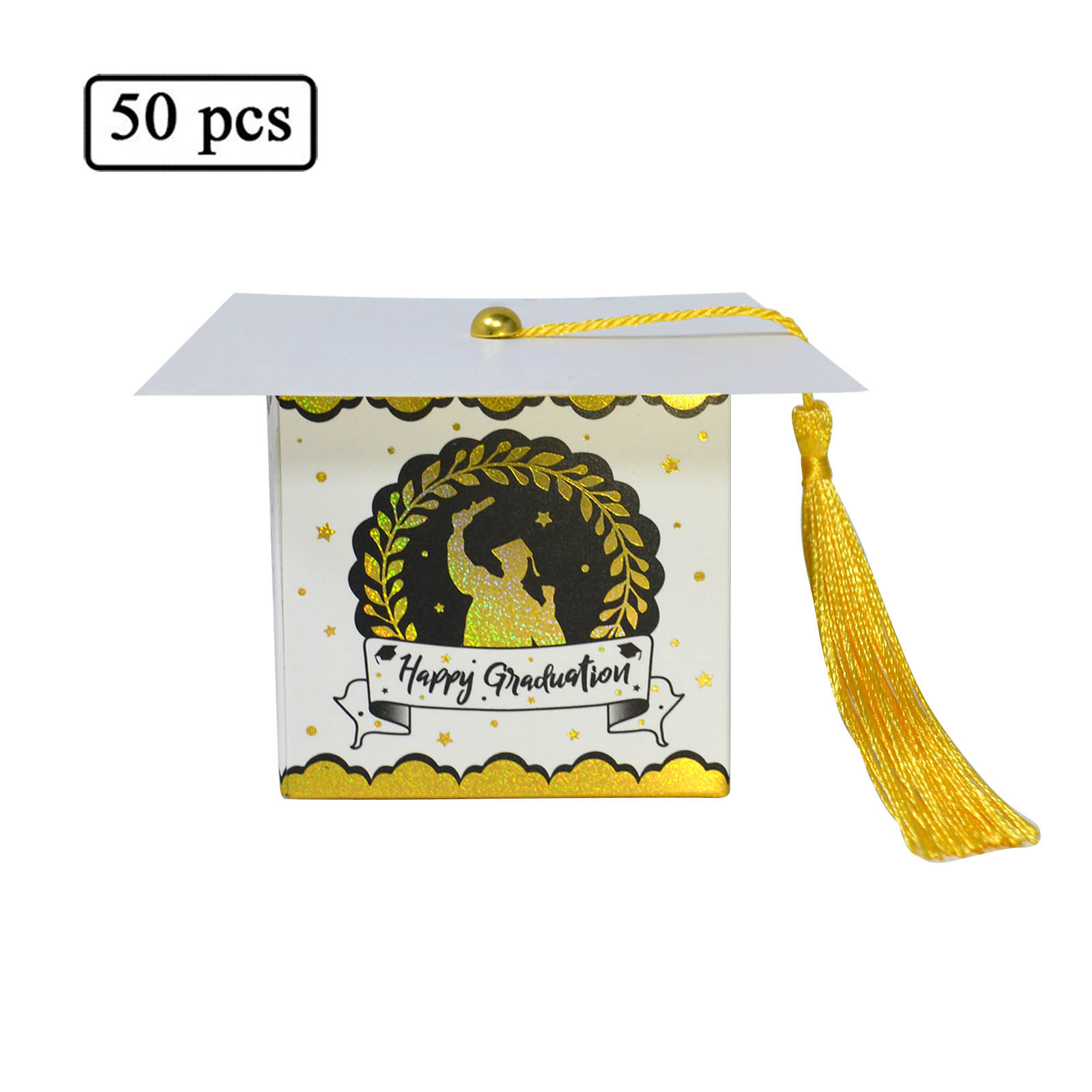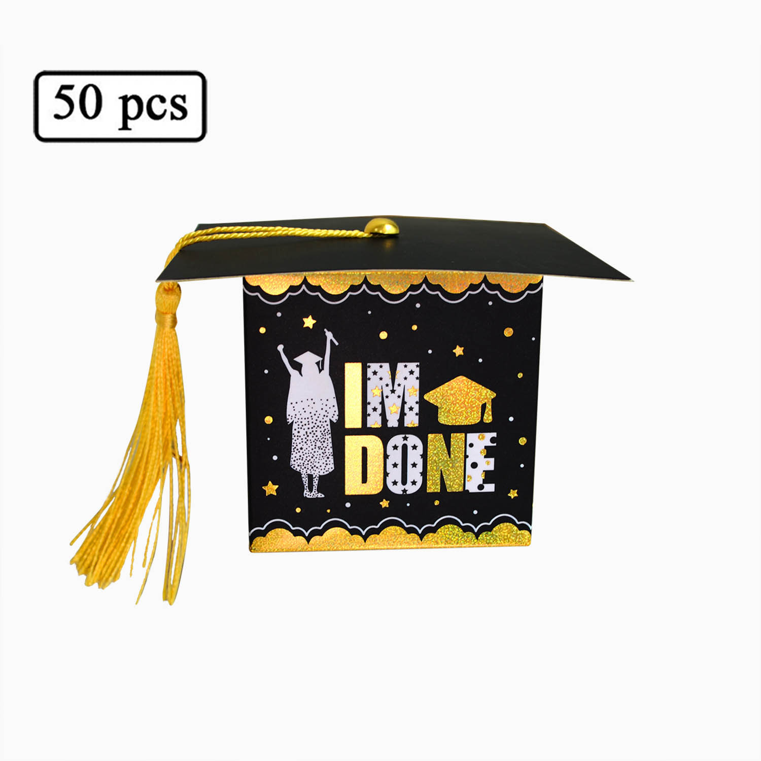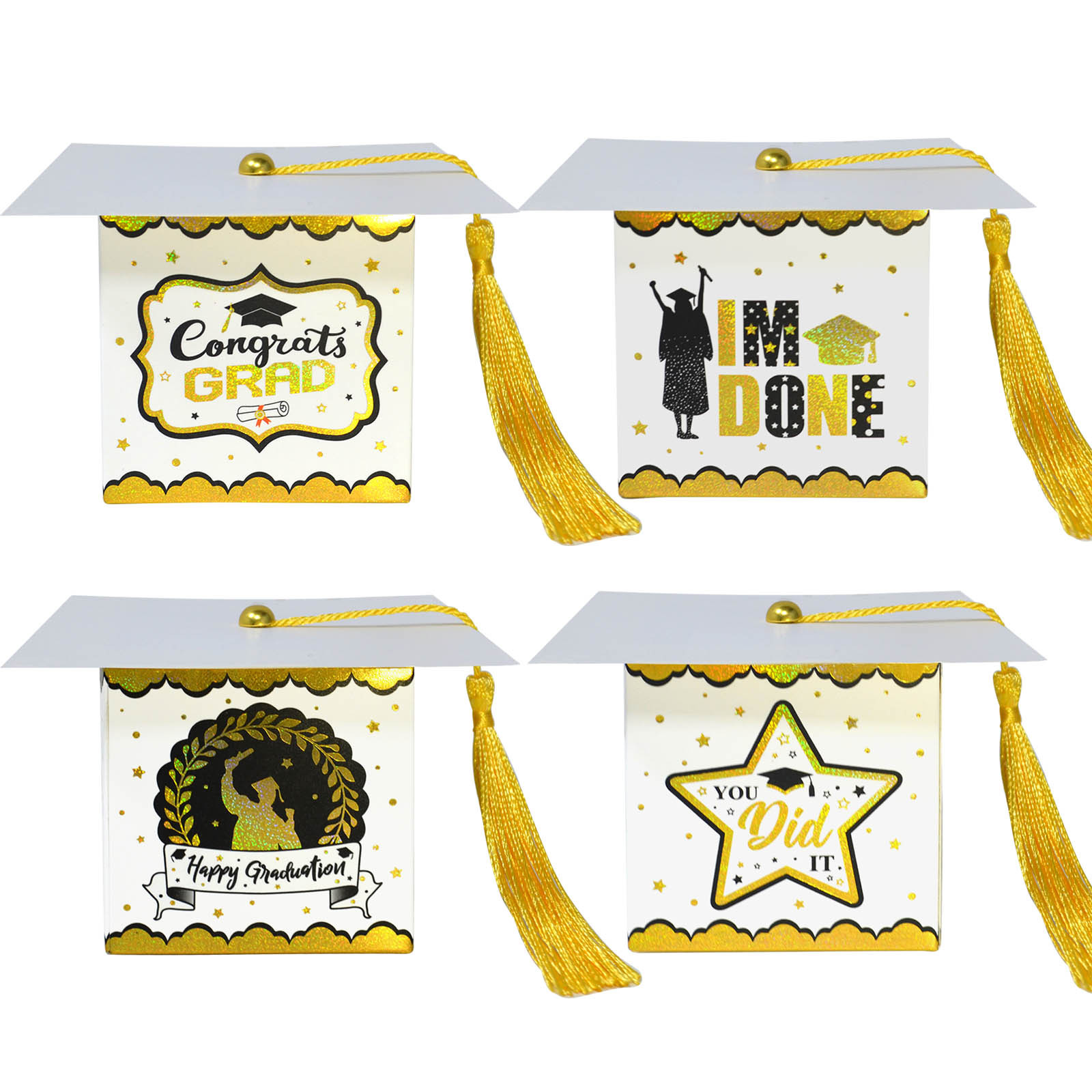 新款毕业帽纸盒 毕业庆典派对包装礼盒 烫金学士帽 博士帽糖果盒