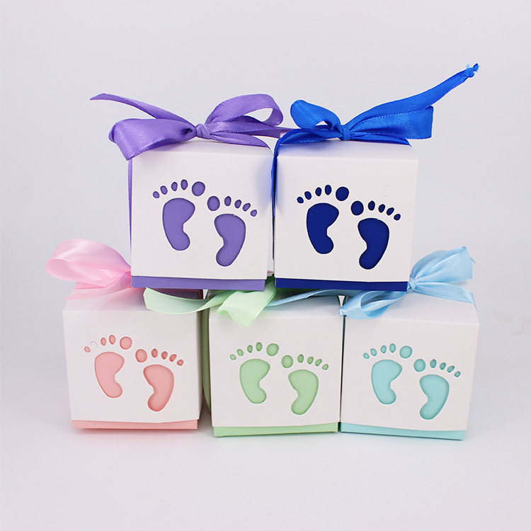 创意喜糖盒欧式婴儿脚印喜糖包装镂空糖果盒派对喜糖礼盒脚丫糖盒