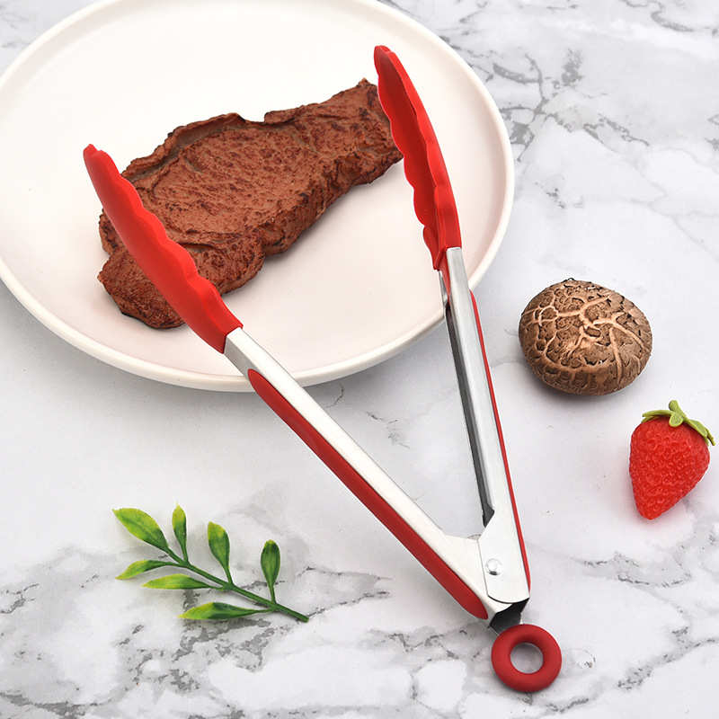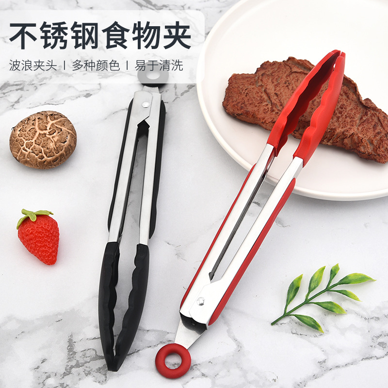 硅胶食物夹不锈钢食品夹子耐高温烧烤夹面包夹多功能厨房工具批发
