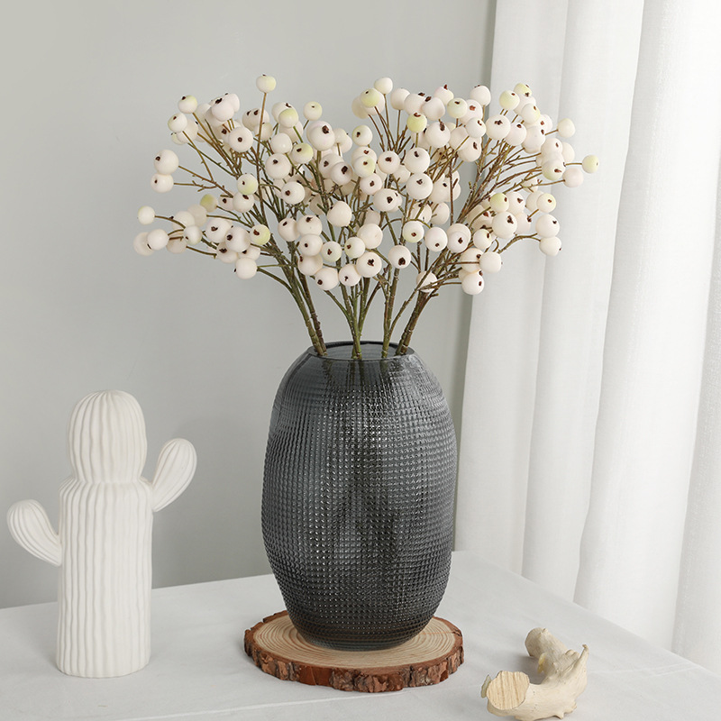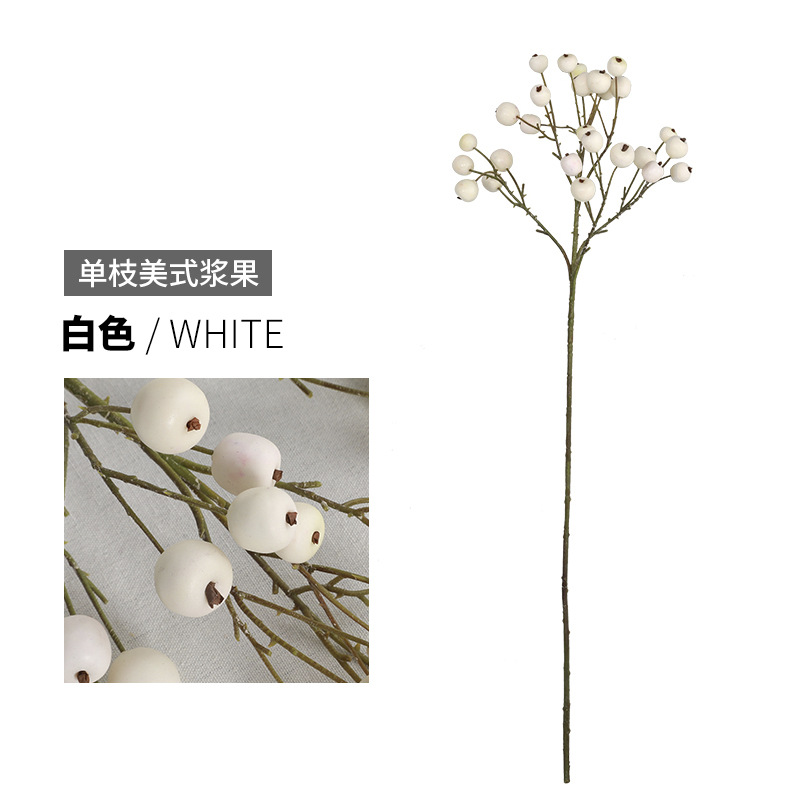 禅意民宿假花仿真手感复古小白果 家居布置仿真简约单枝美式浆果