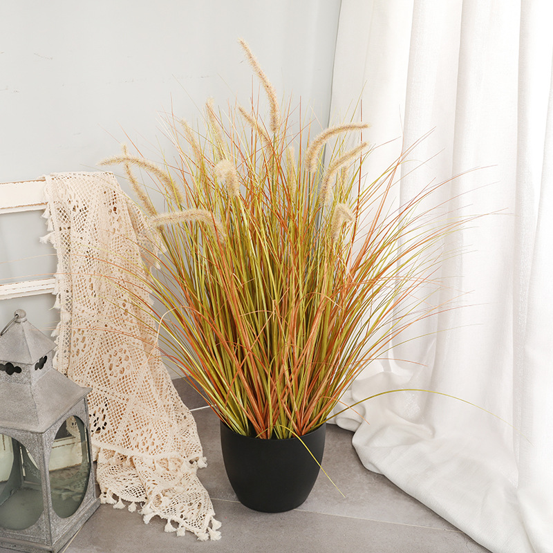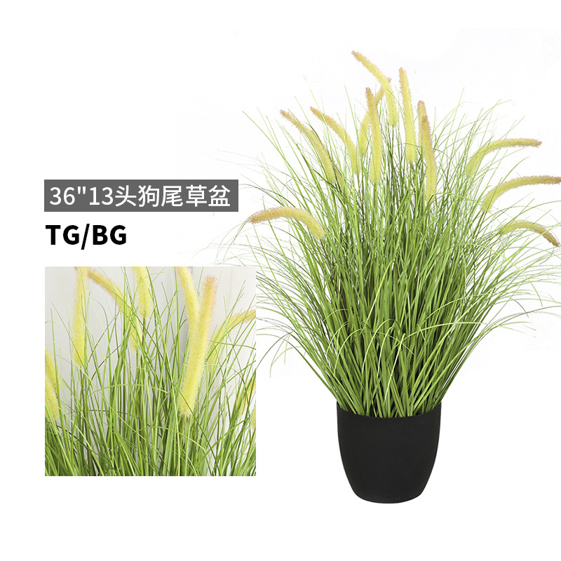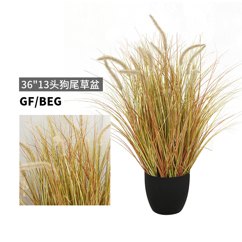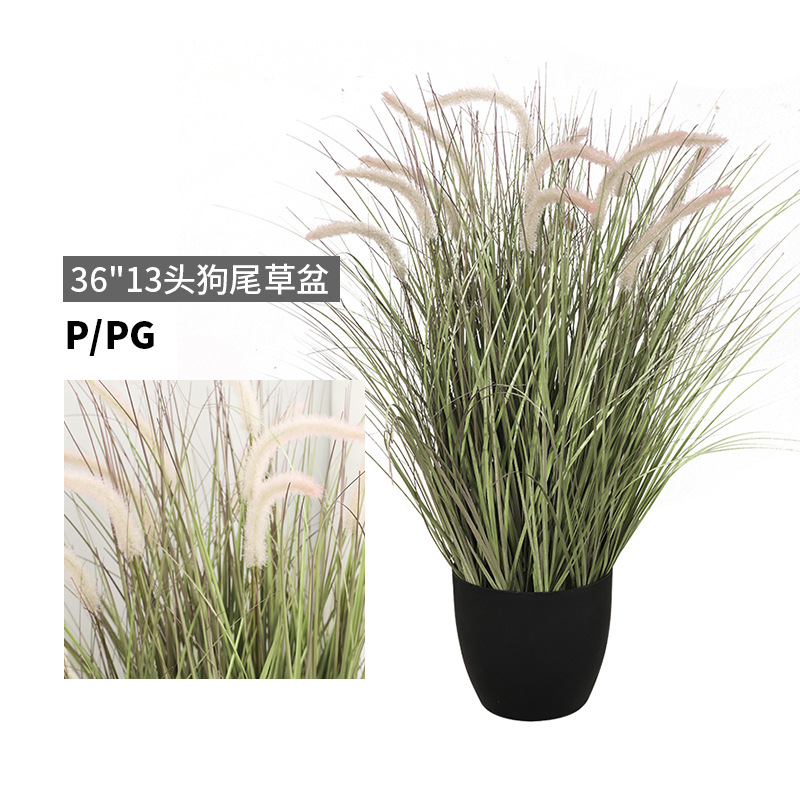 商场橱窗装饰仿真洋葱草蒲草盆栽 软装布置仿真花13头狗尾草盆景