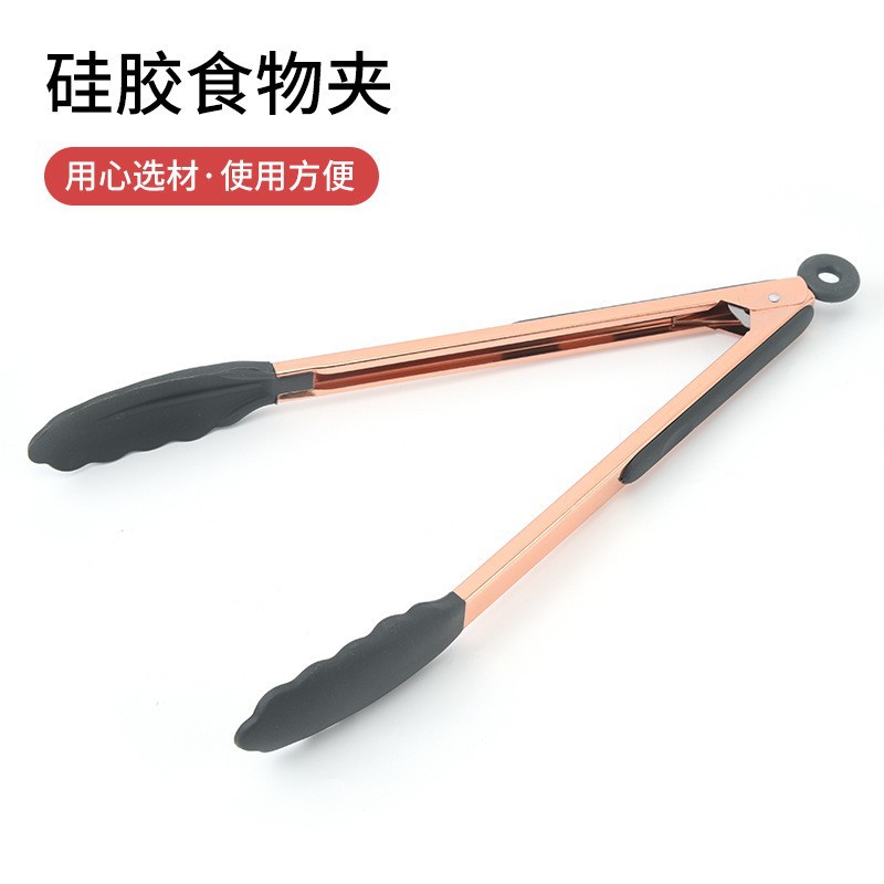 厂家批发 9寸镀金硅胶食品夹食物夹 烧烤夹面包夹牛排夹 现货