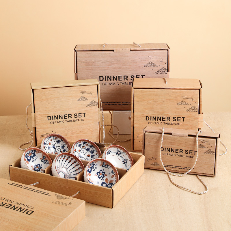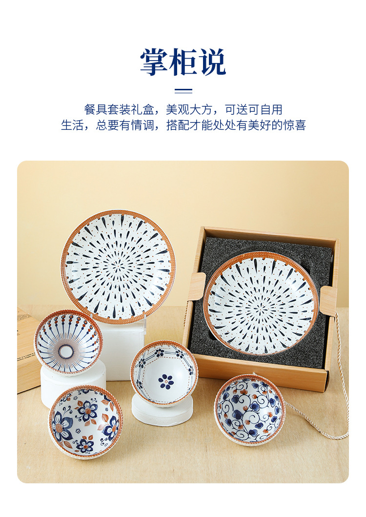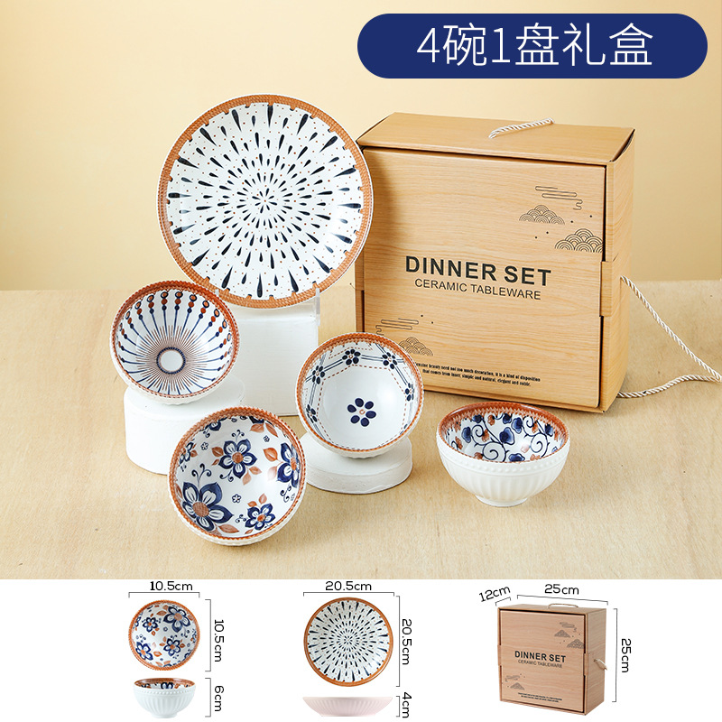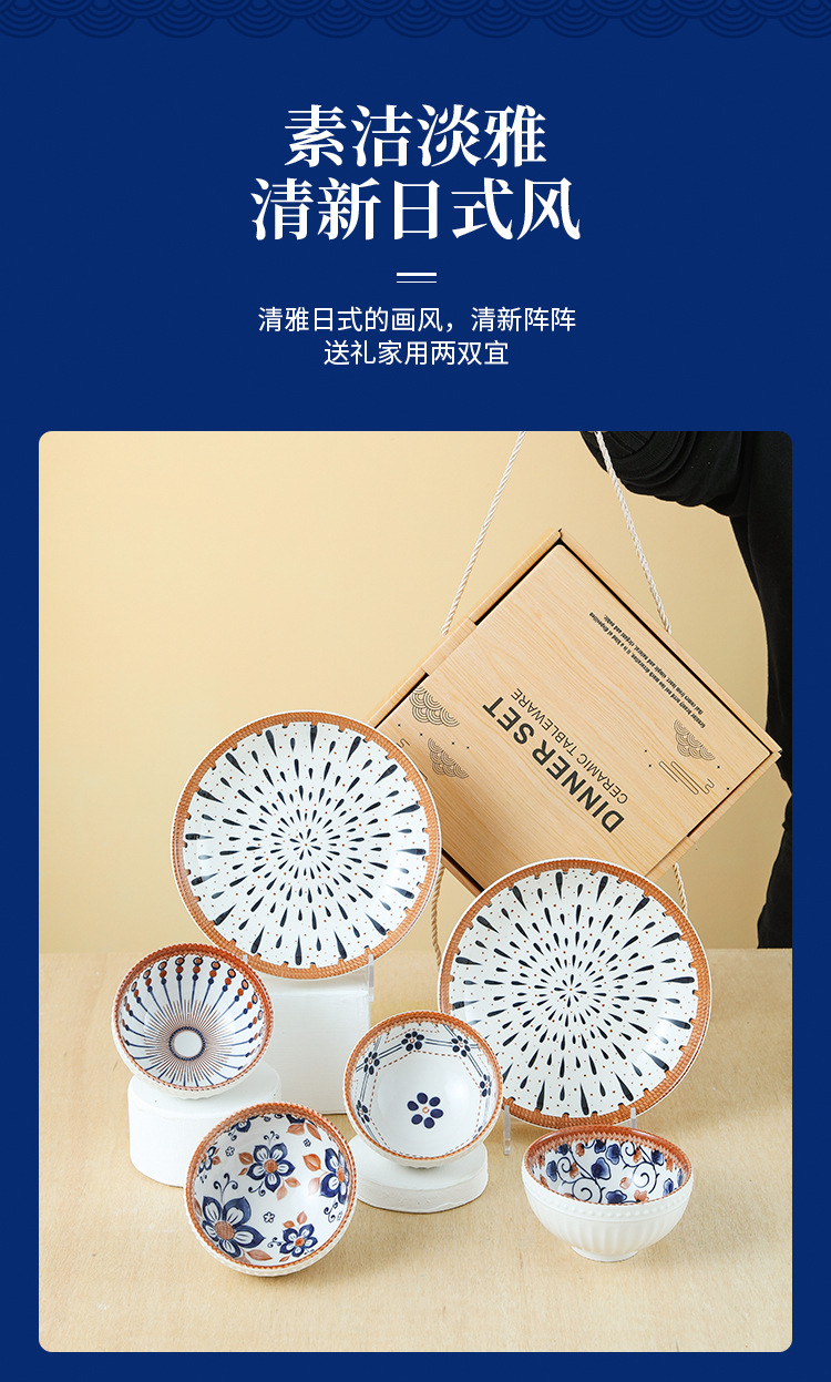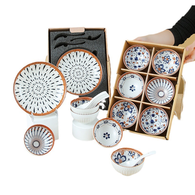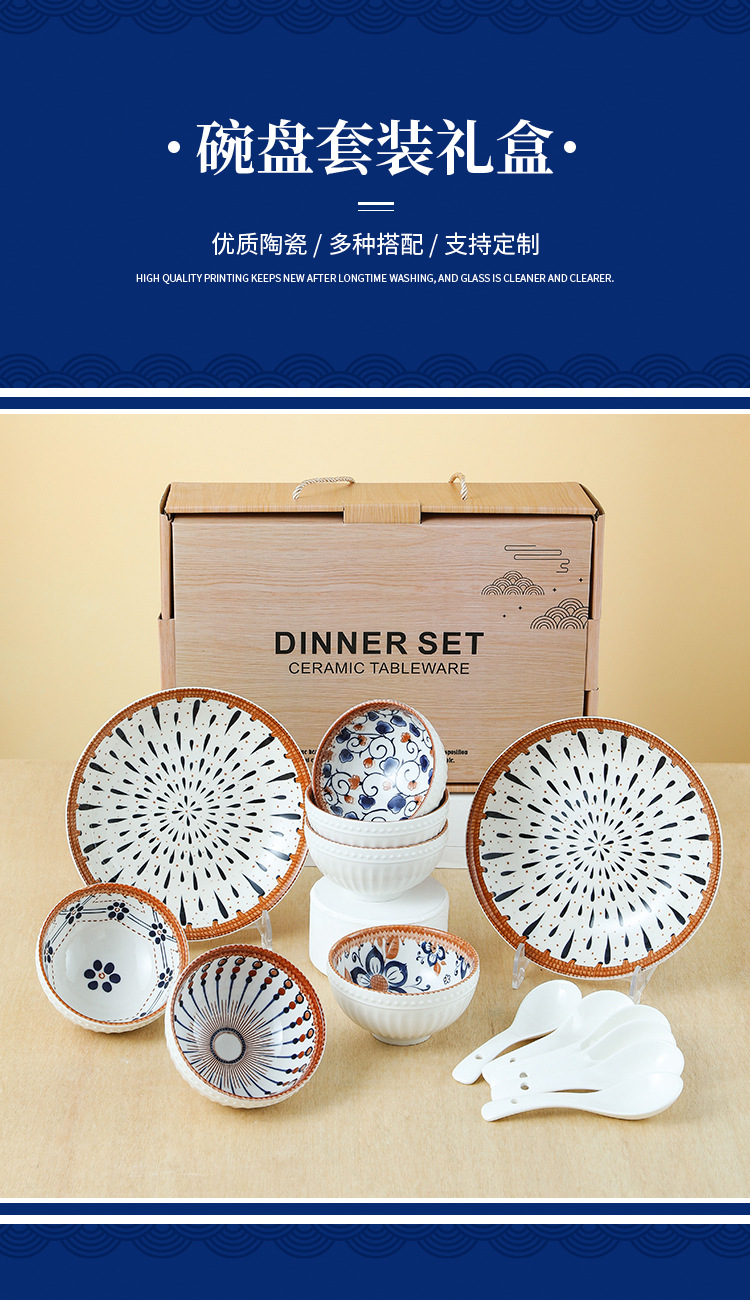 Japanese Ceramic Tableware Set of Dishes and Bowls Gift Box Real Estate Company Souvenirs Opening Gift Tableware